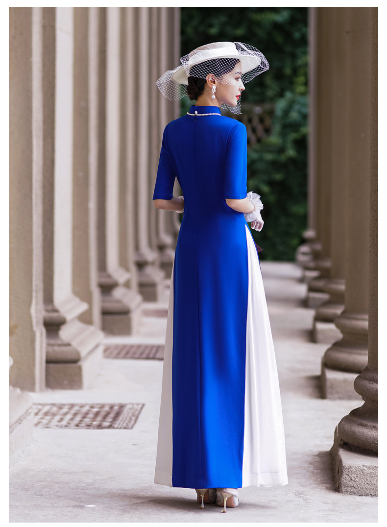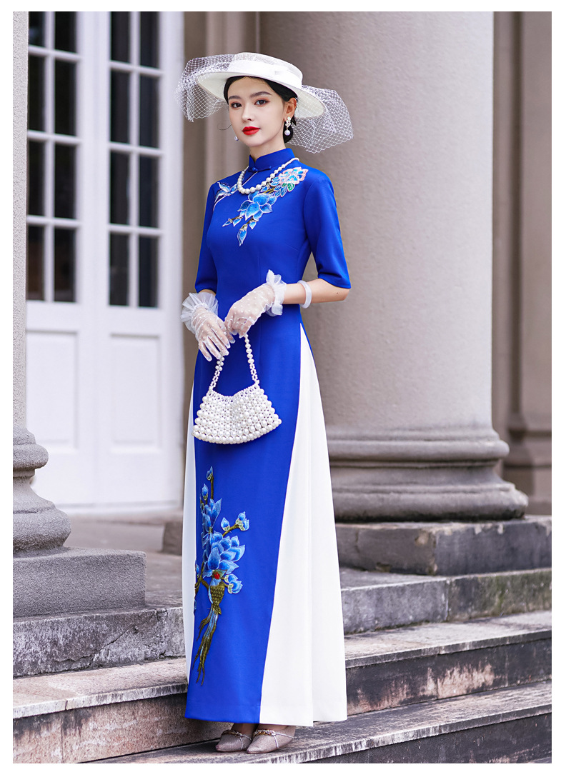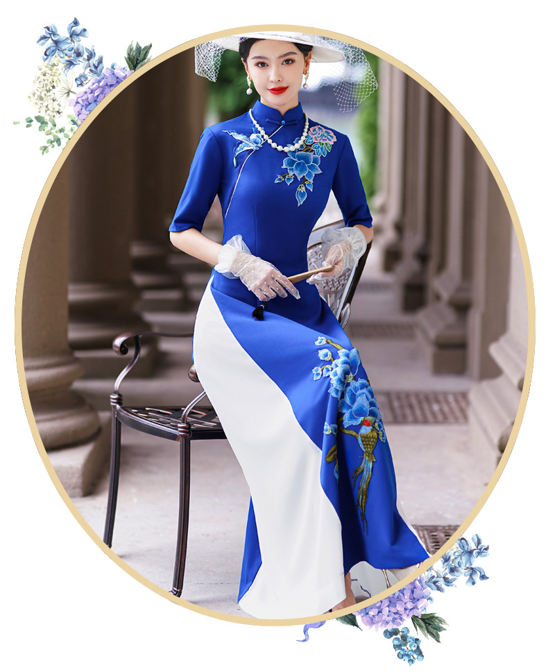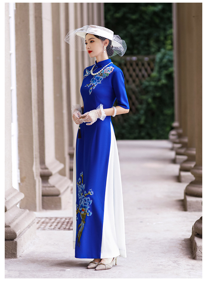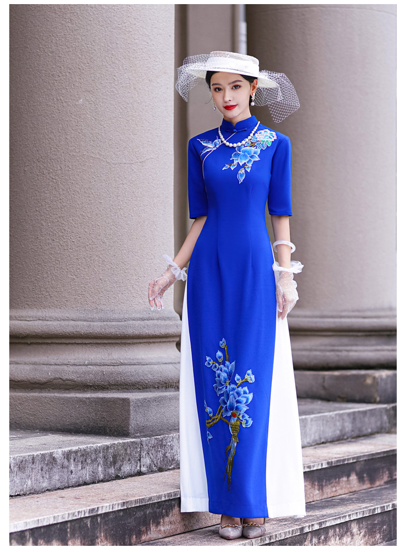 NL-2023新款越南奥黛旗袍中国风舞台走秀改良长款演出服高端复古旗袍