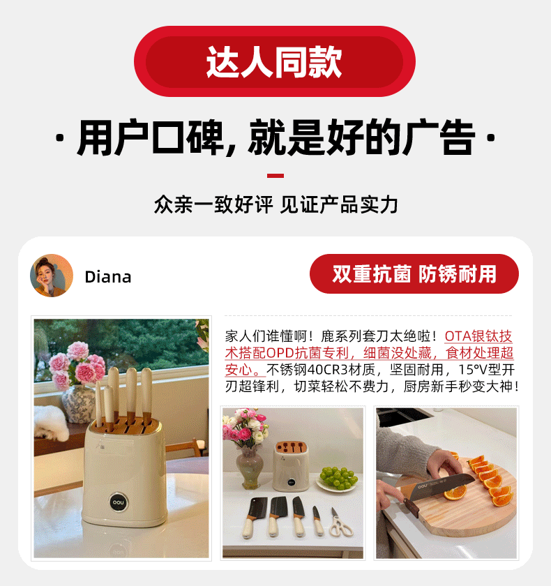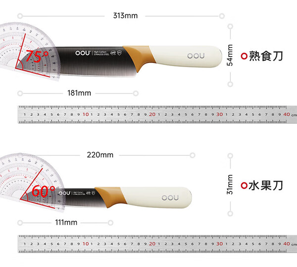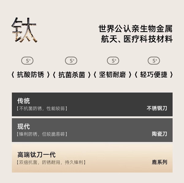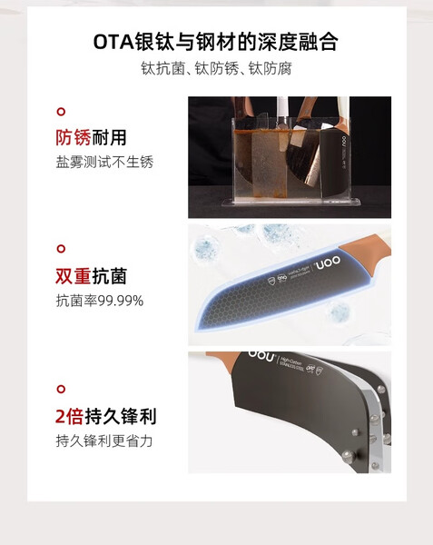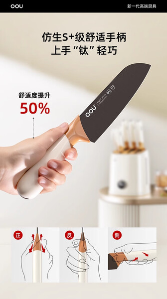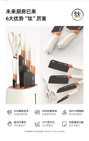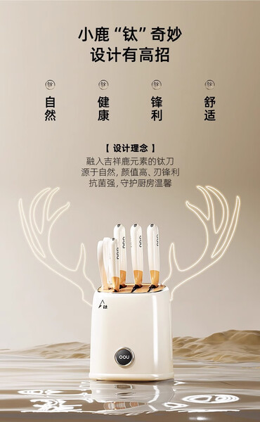 OOU刀具套装6件全套切片刀砍骨刀水果刀菜刀不锈钢套装组合女士鹿钛 OPD抗菌+银钛防锈 鹿系列6件套