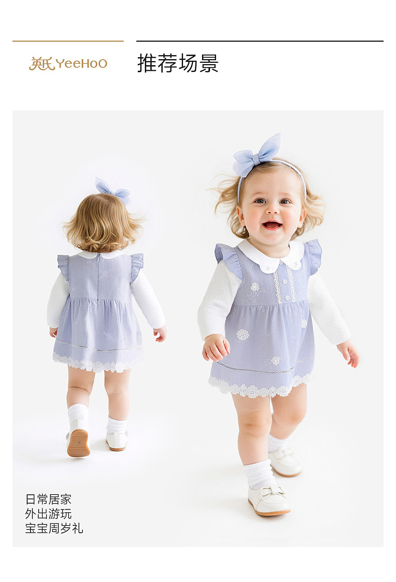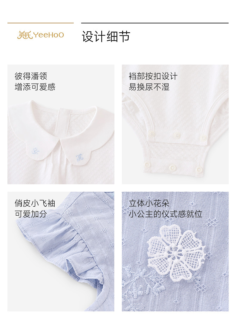 【商场同款】英氏哈衣套装女宝宝春夏爬爬服长袖连体衣背心连衣裙
