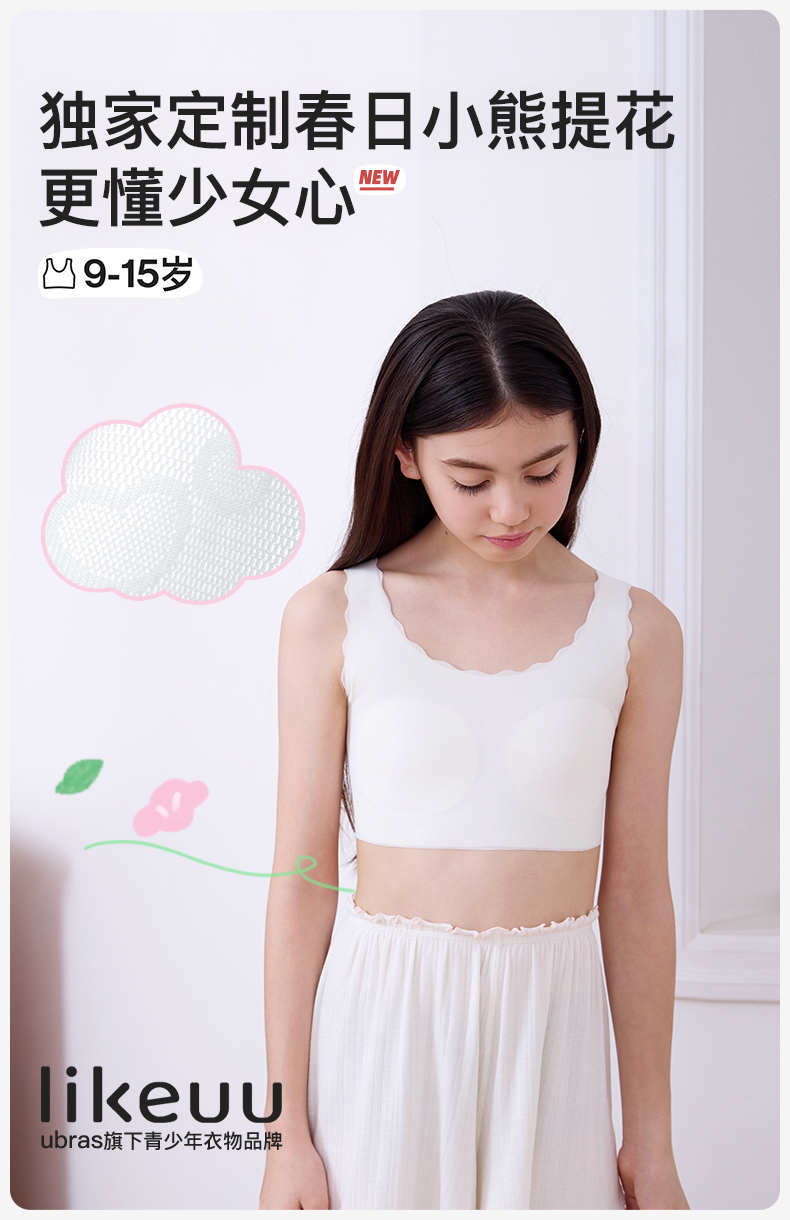 9-15岁 小熊提花透气网孔内衣 | ubras旗下likeuu 少女发育期 小熊提花透气网孔内衣 更懂少女心 透气好打理