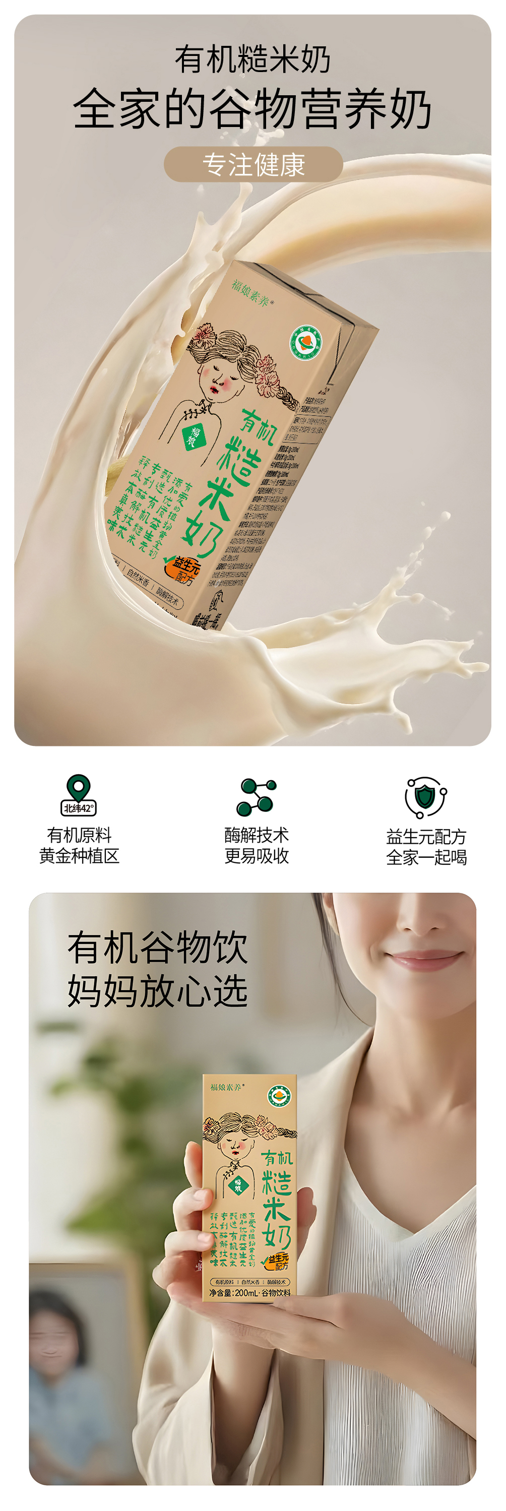 正耕 福娘有机糙米奶200g*10盒