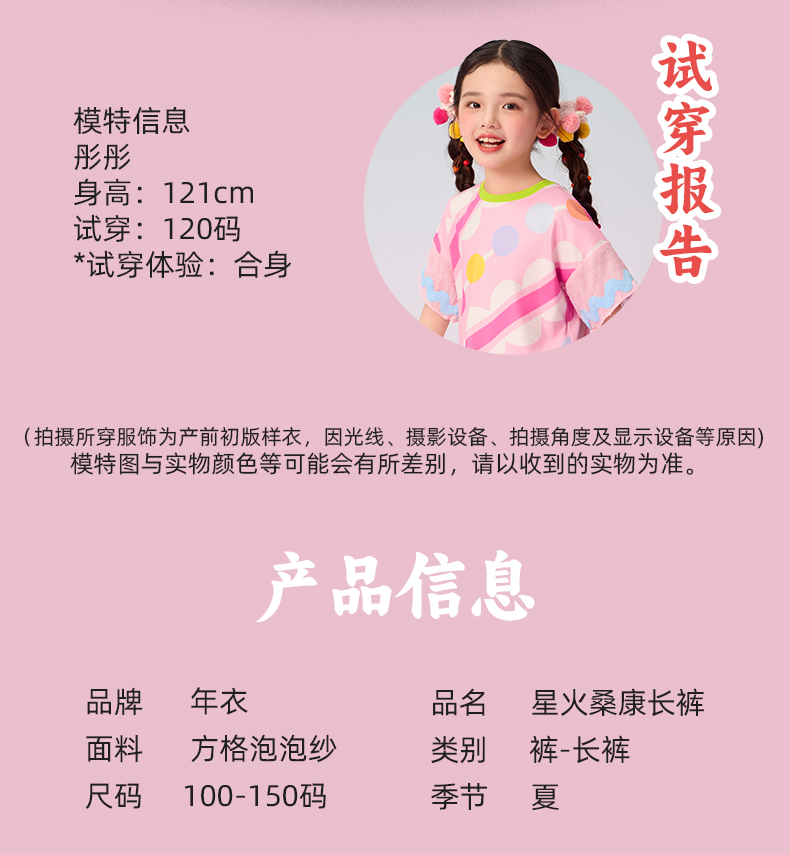 【年衣】童装女童裤子防蚊裤2025夏新款国风凉感宽松女孩休闲星火桑康长裤