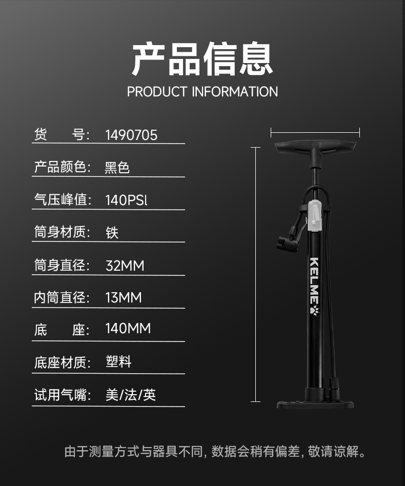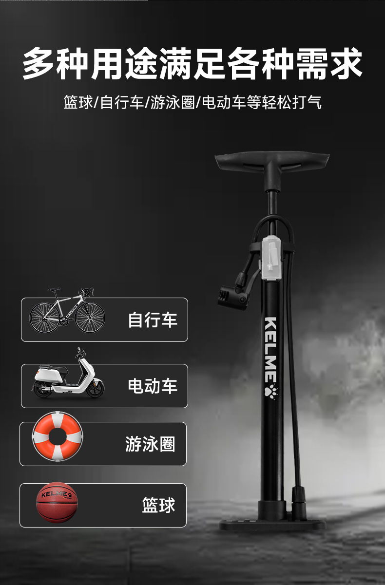卡尔美篮球自行车电动车游泳圈多功能打气筒(双踏式)