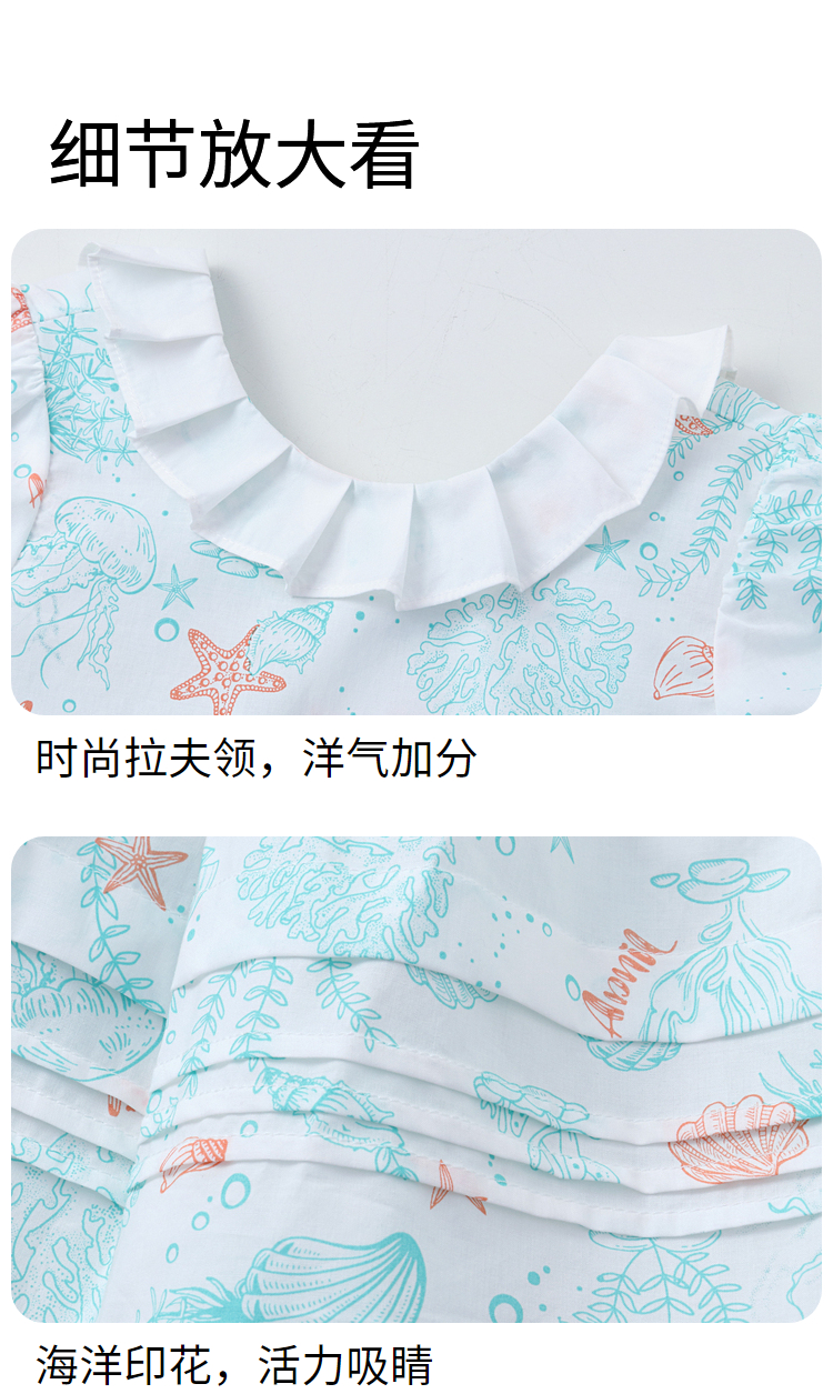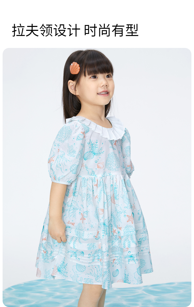 女童海洋风印花连衣裙裙裙子夏季新款安奈儿童装实体店同款XG423726
