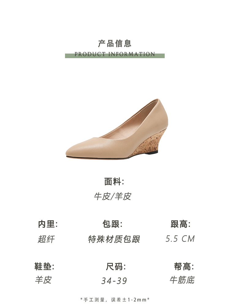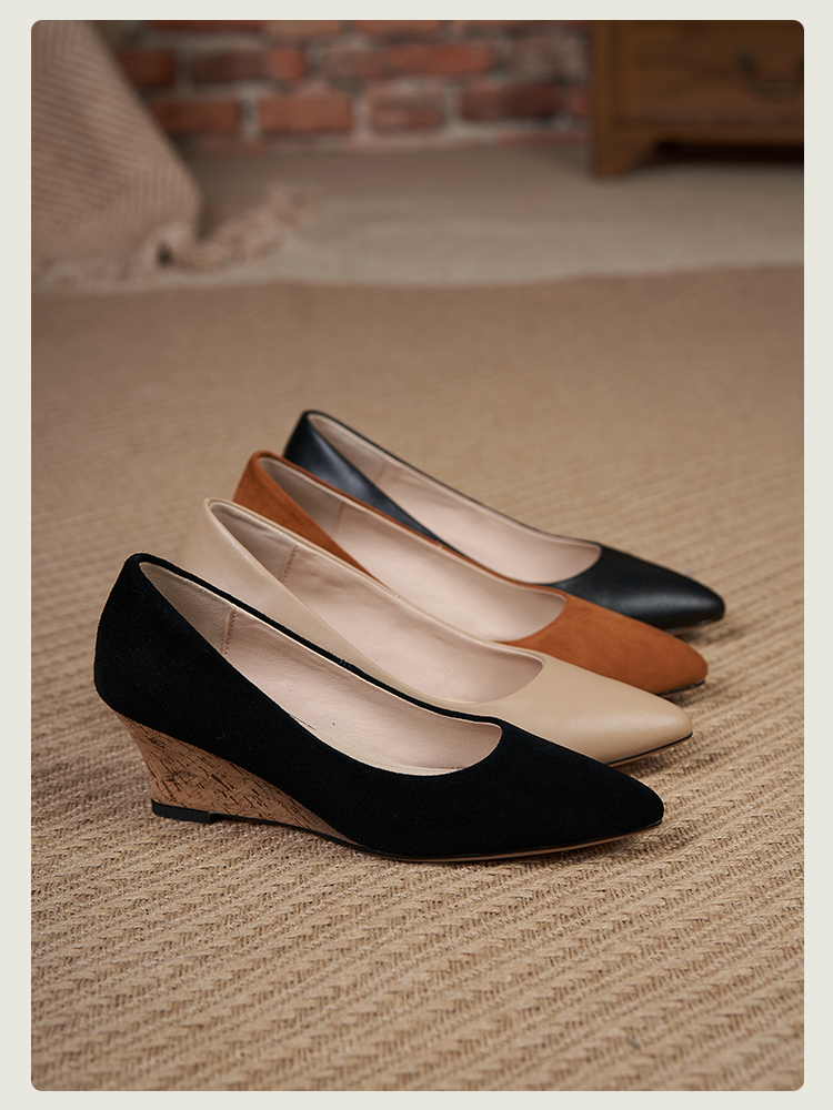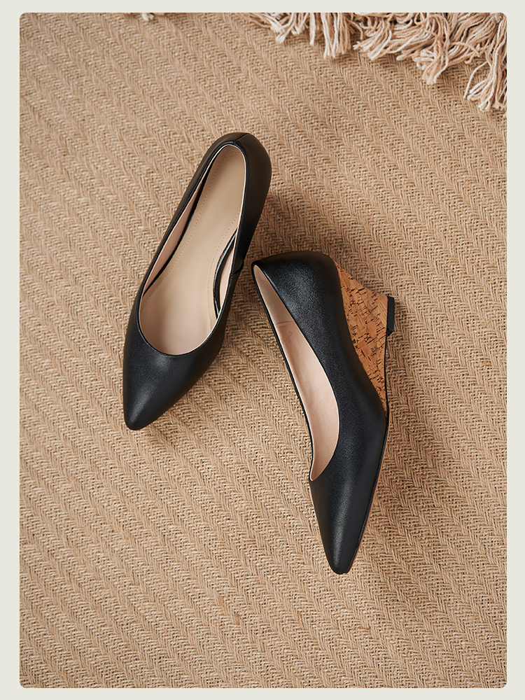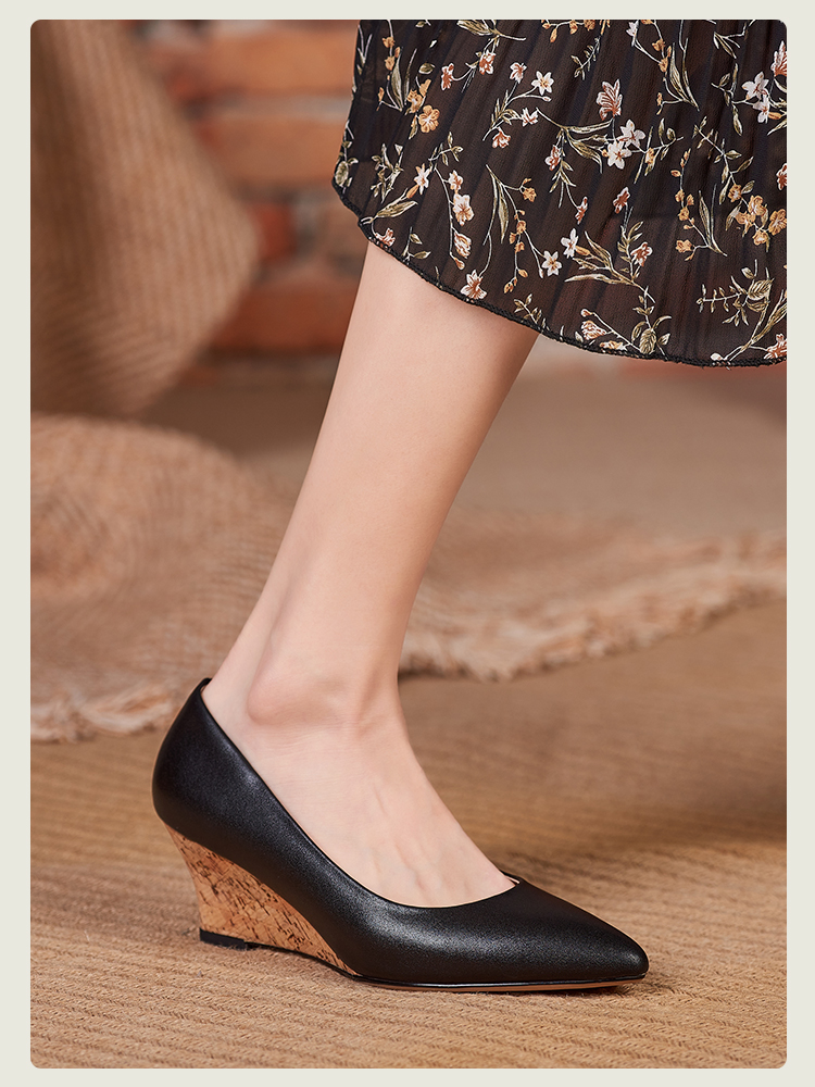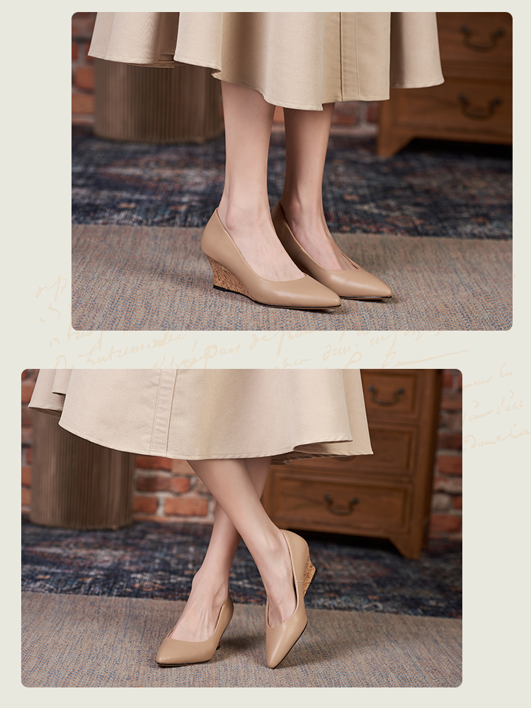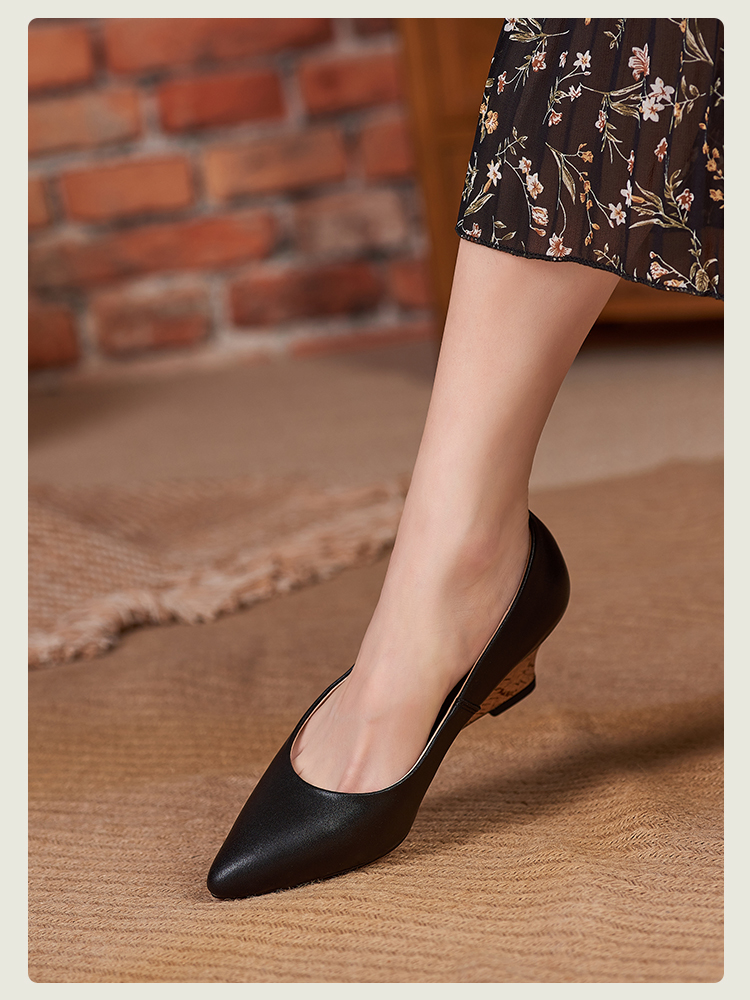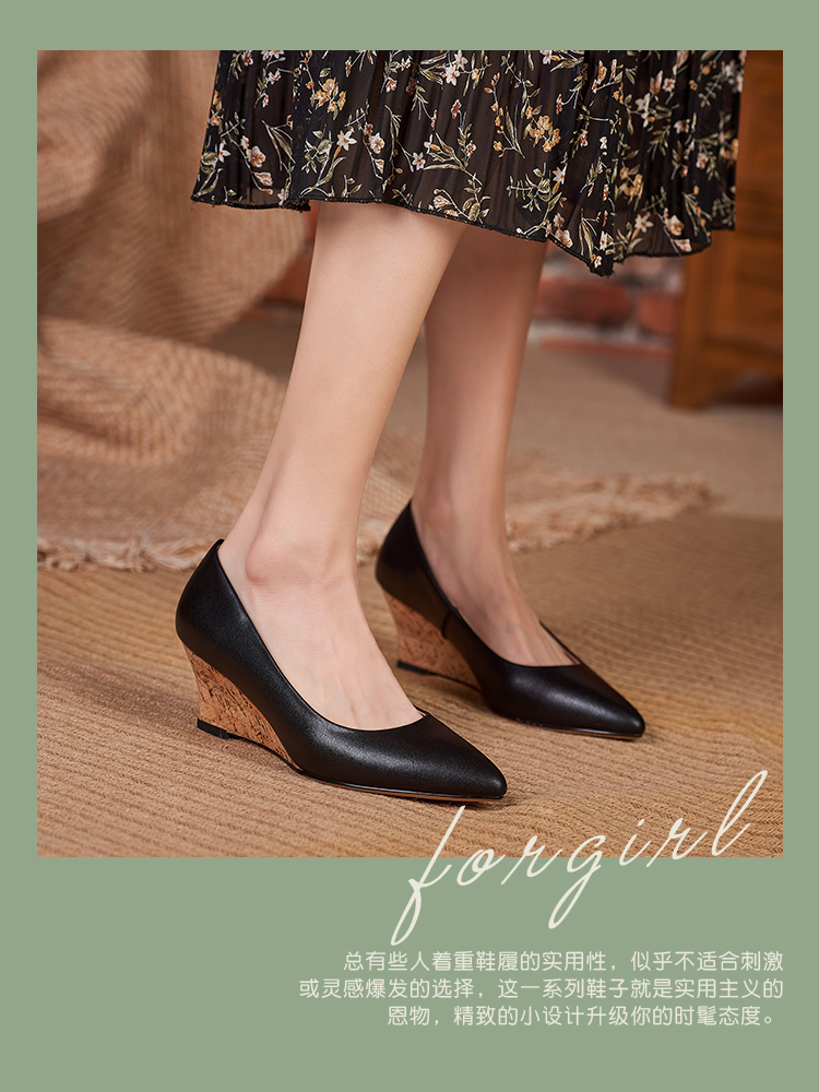 舒适时尚,坡跟尖头真皮单鞋DZM-FF503