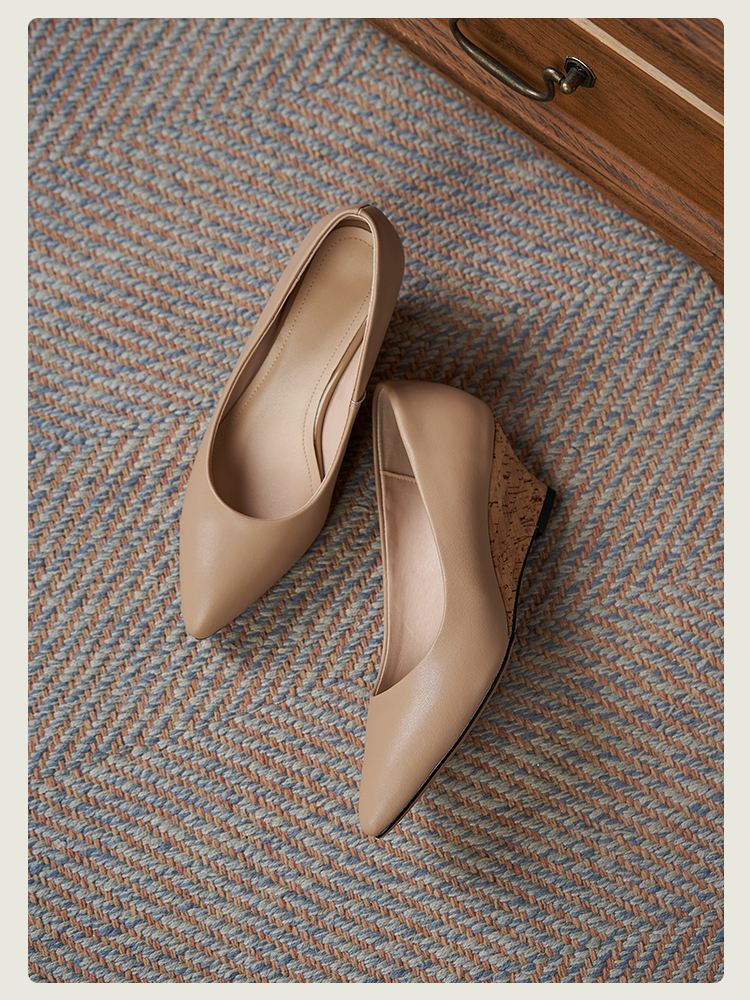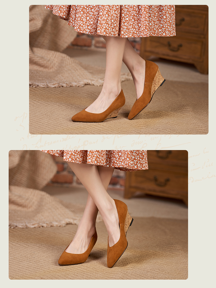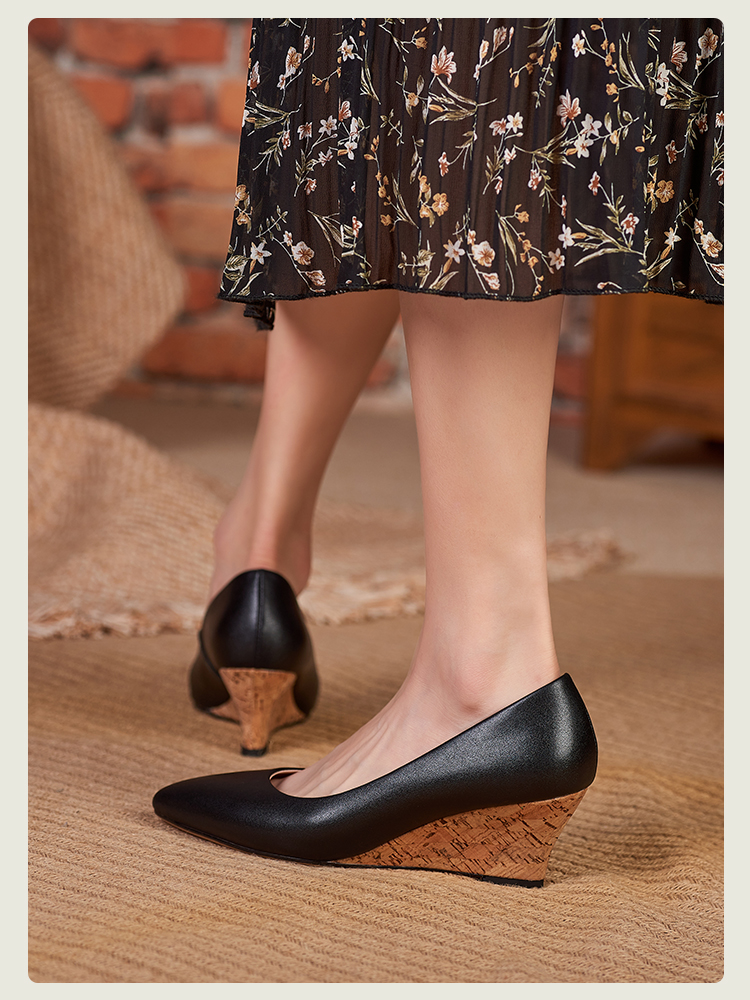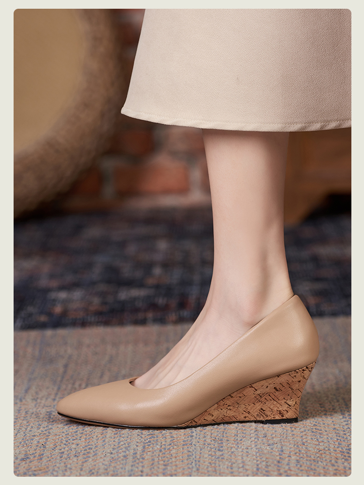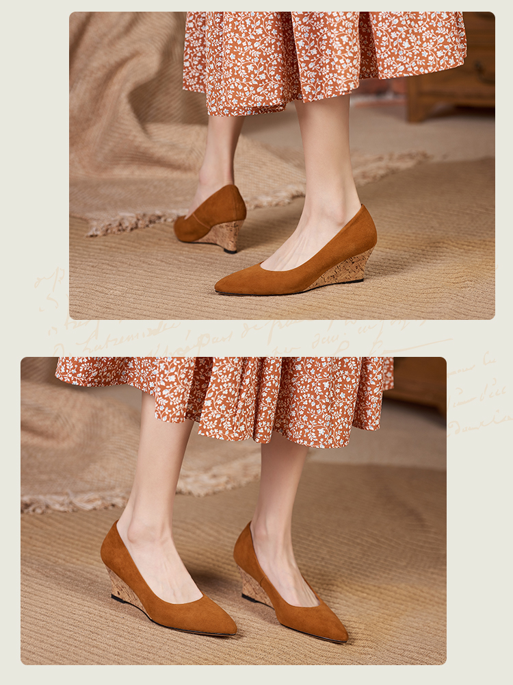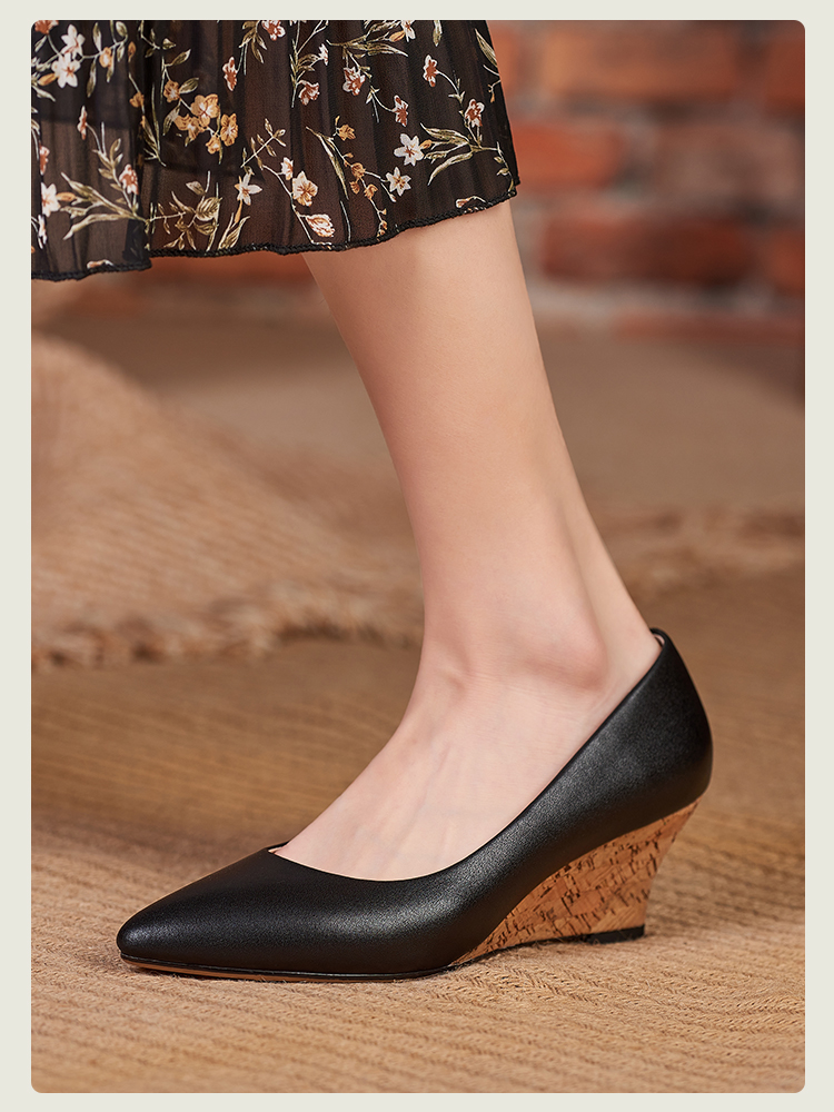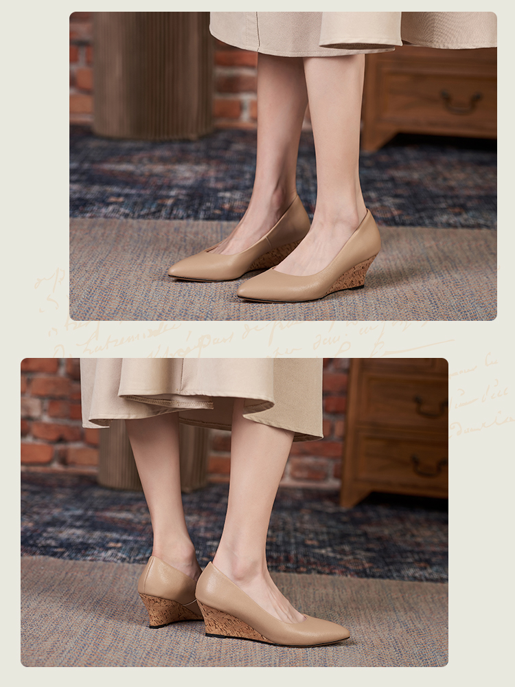 舒适时尚,坡跟尖头真皮单鞋DZM-FF503