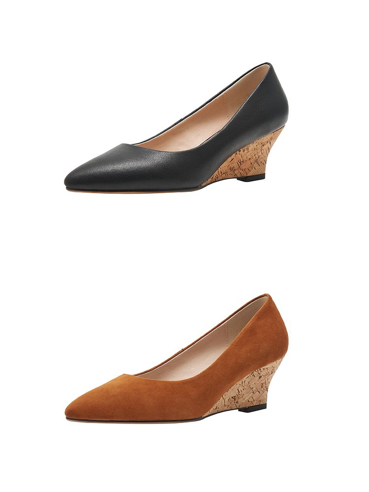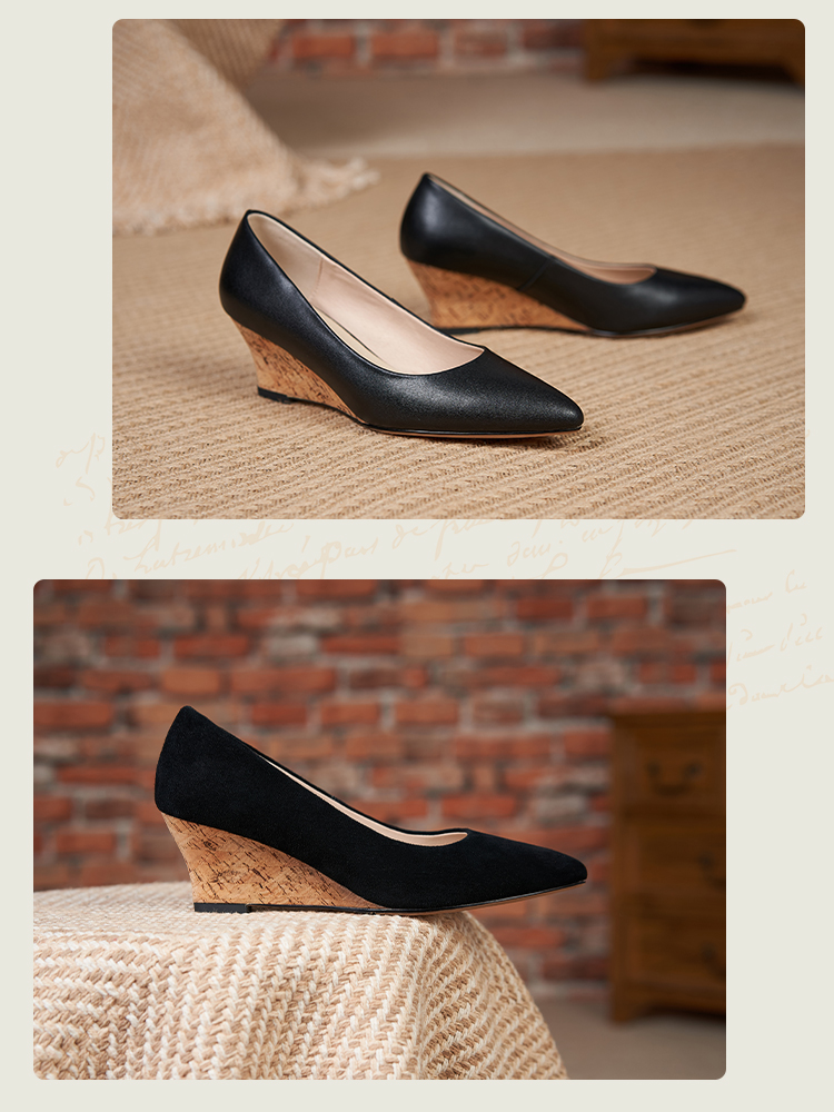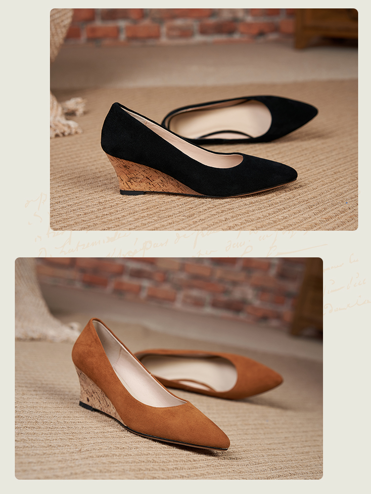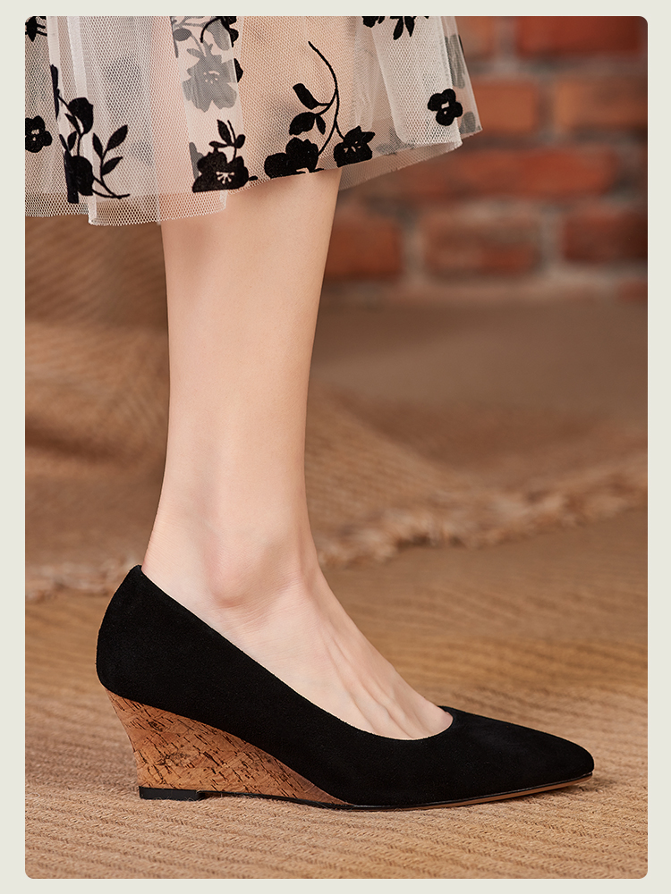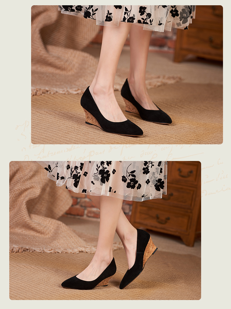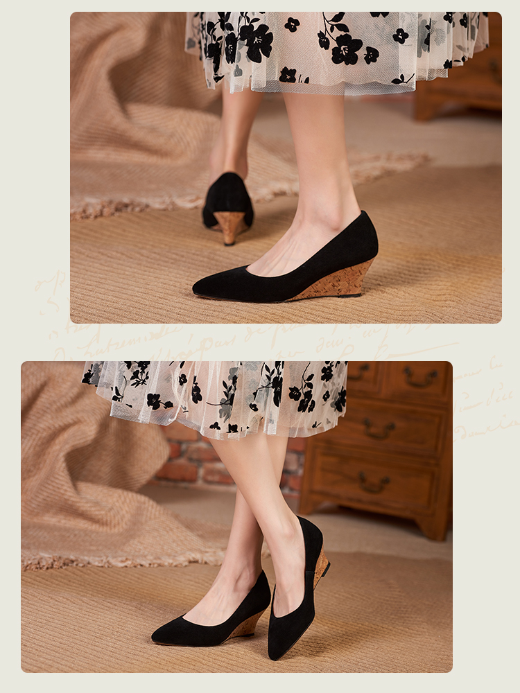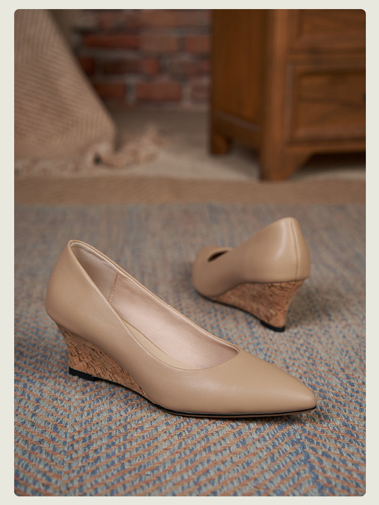 舒适时尚,坡跟尖头真皮单鞋DZM-FF503