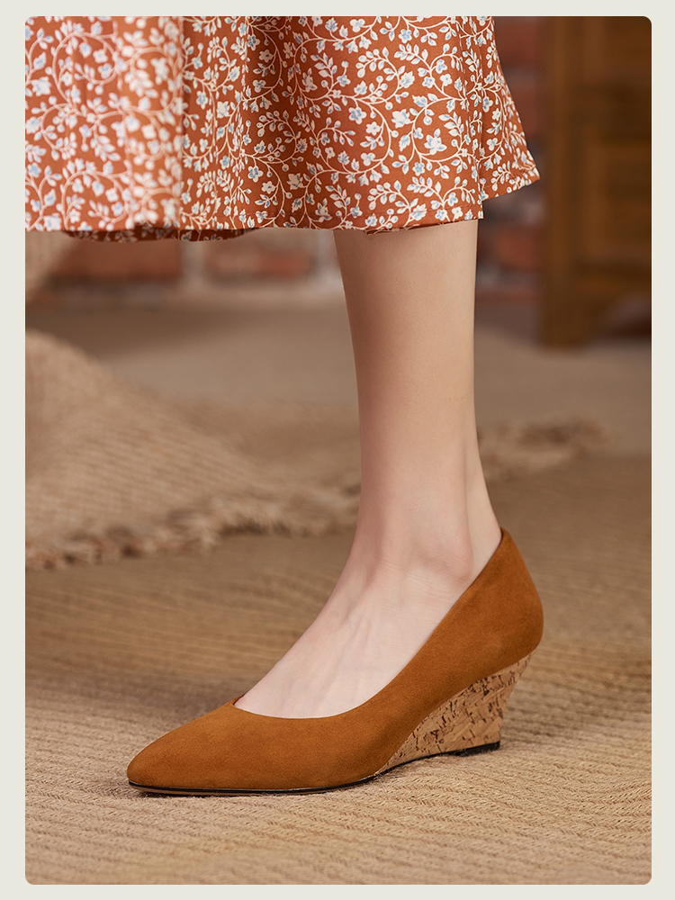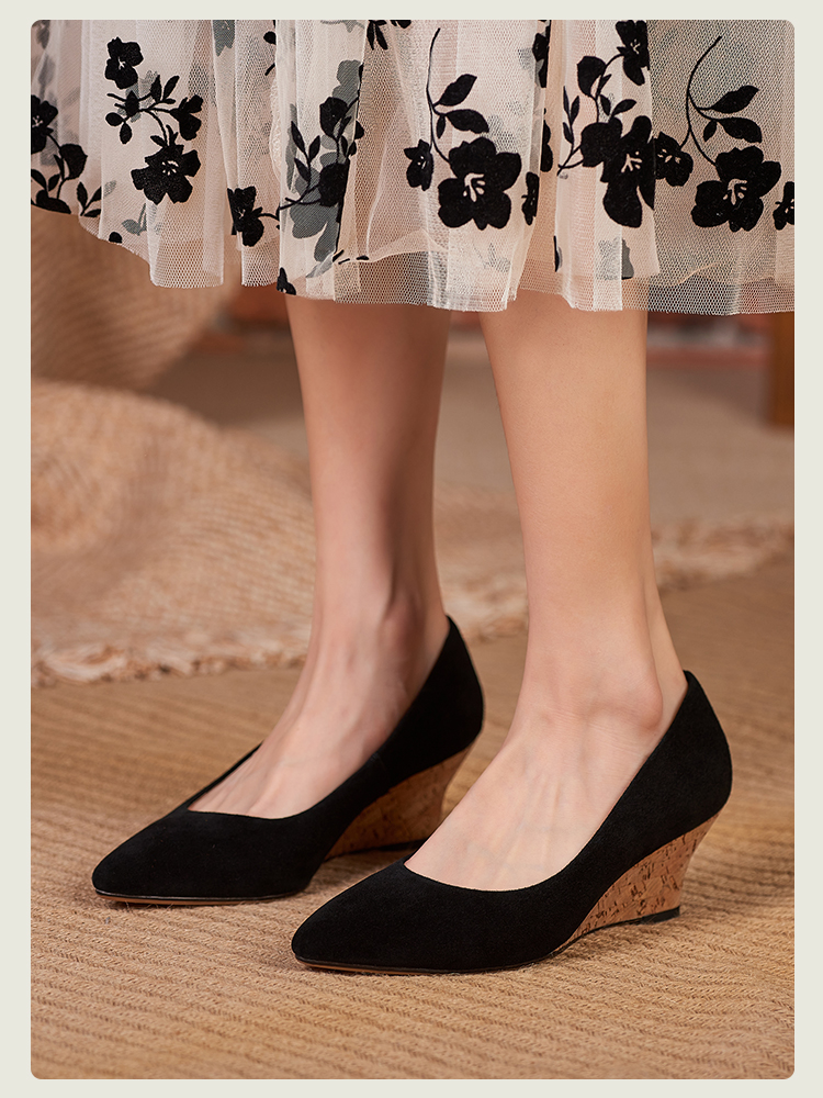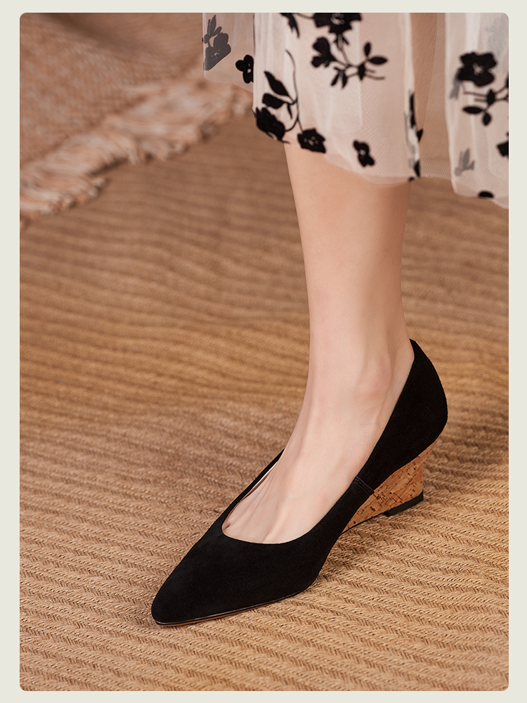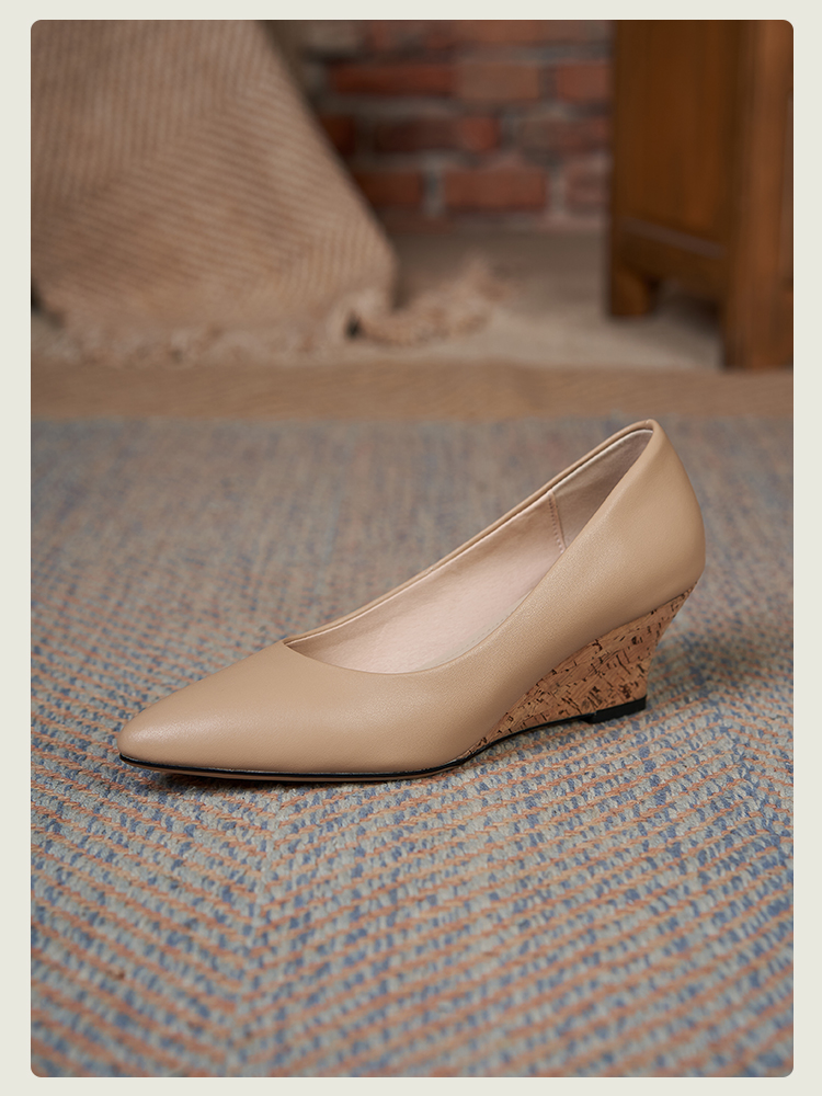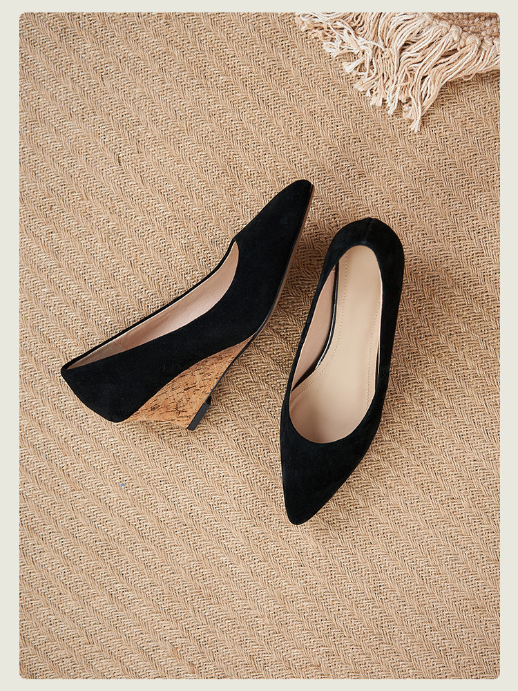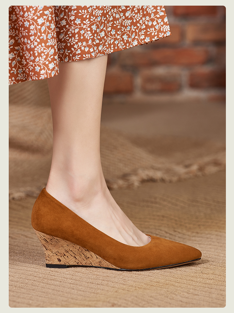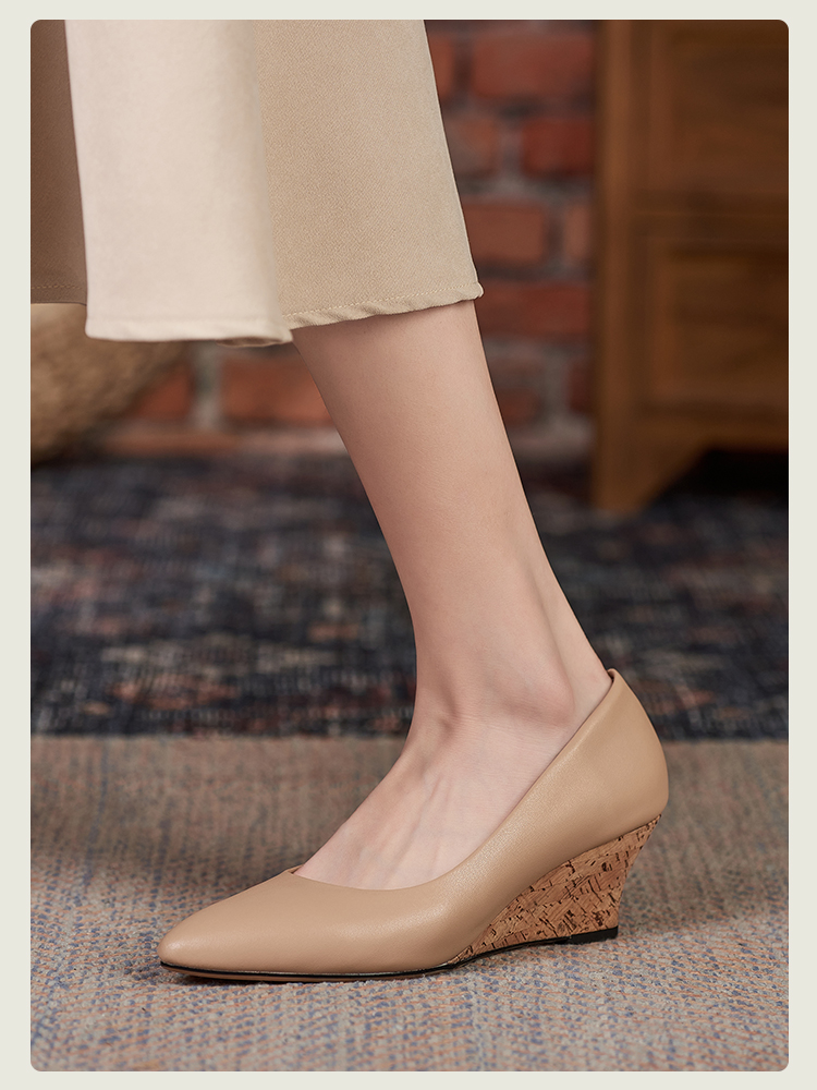 舒适时尚,坡跟尖头真皮单鞋DZM-FF503