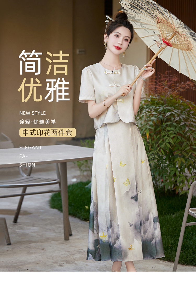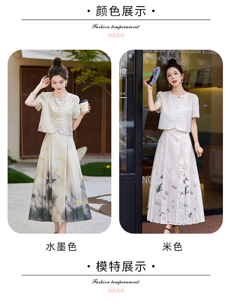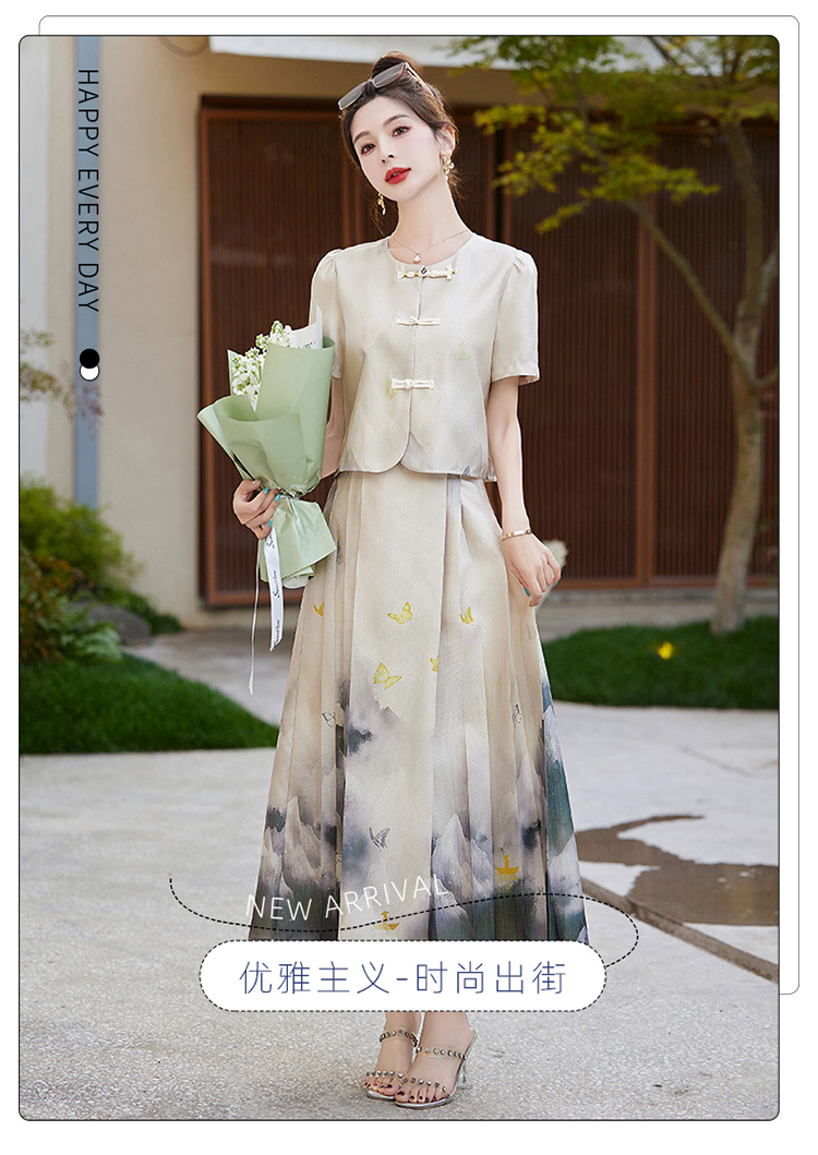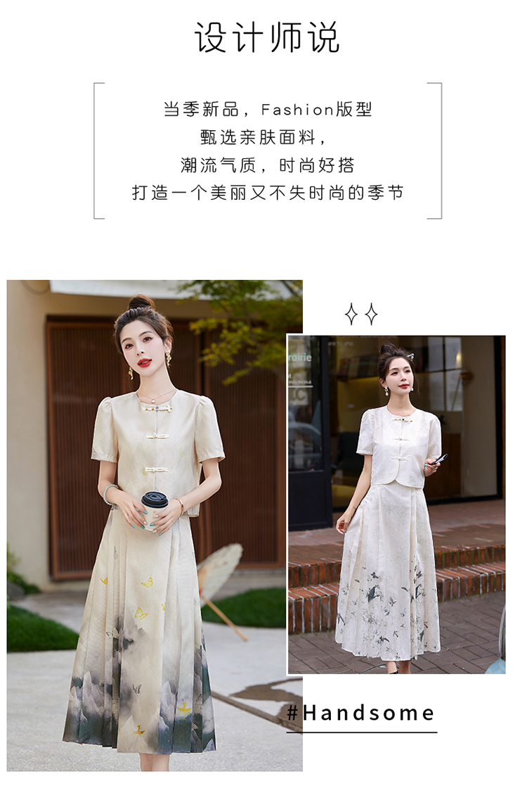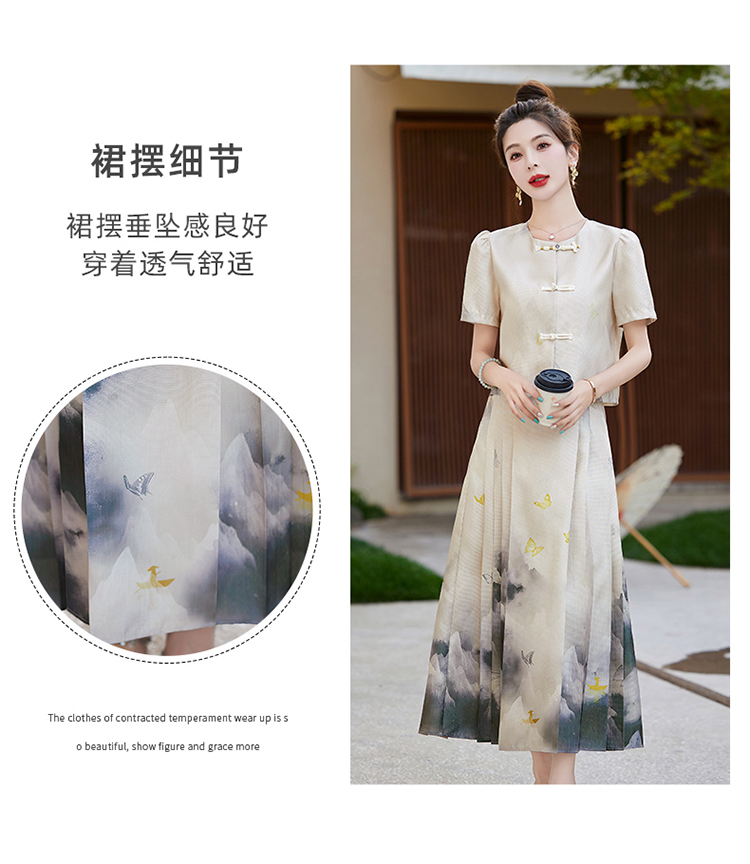 新中式国风套装连衣裙,气质女神范印花马面裙两件套HR-LMJY6681
