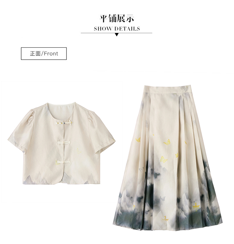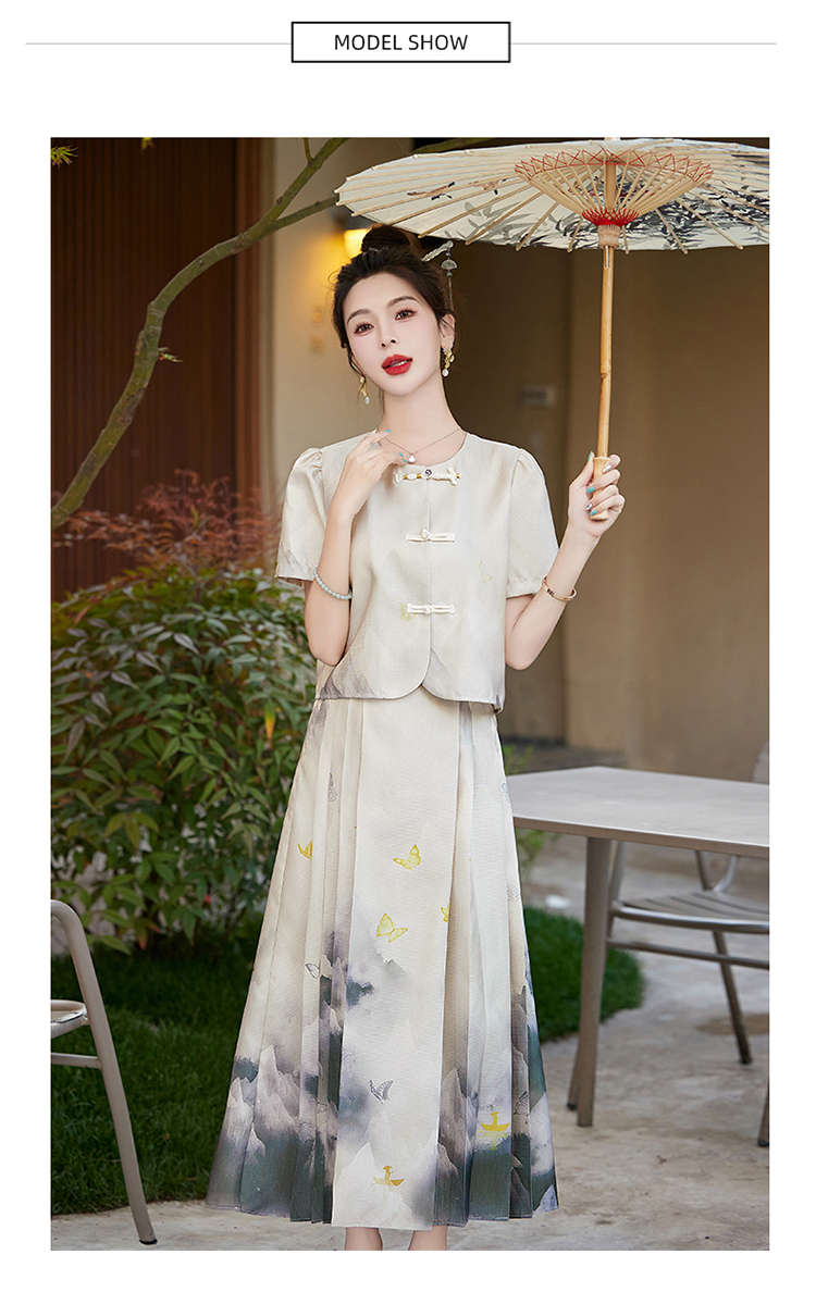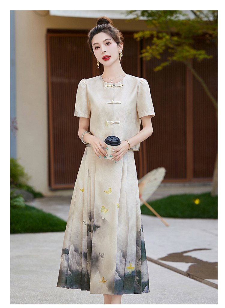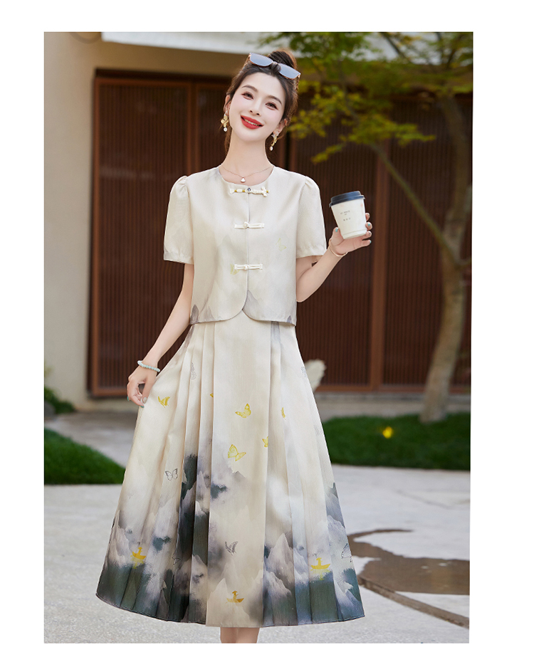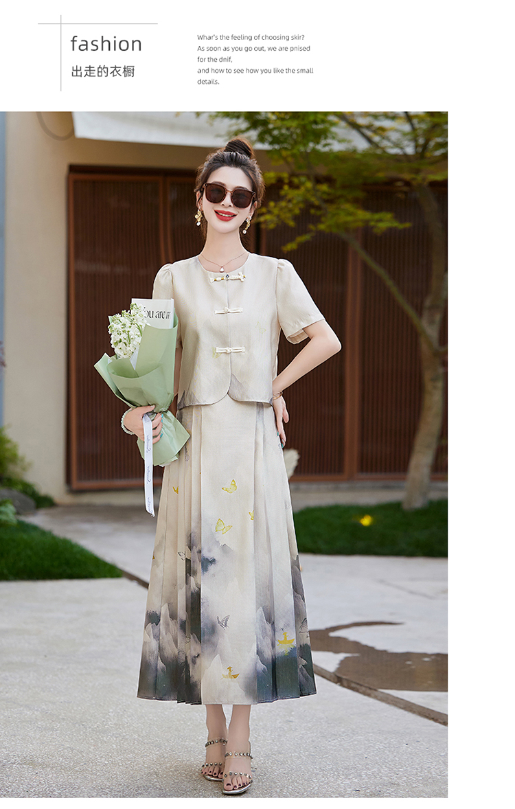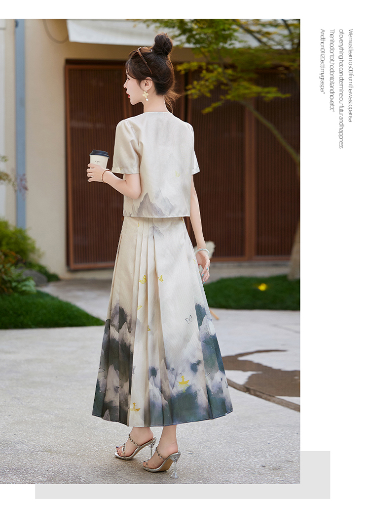 新中式国风套装连衣裙,气质女神范印花马面裙两件套HR-LMJY6681
