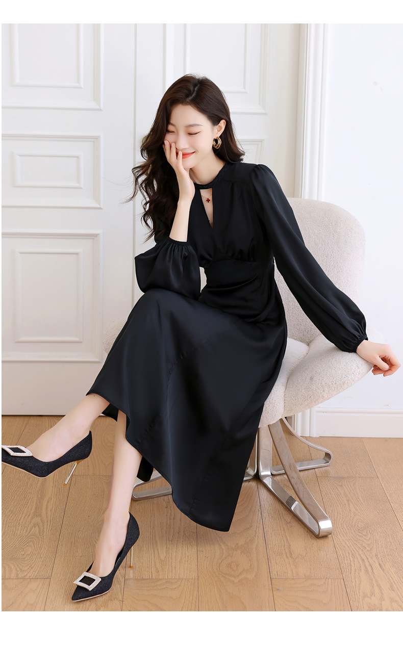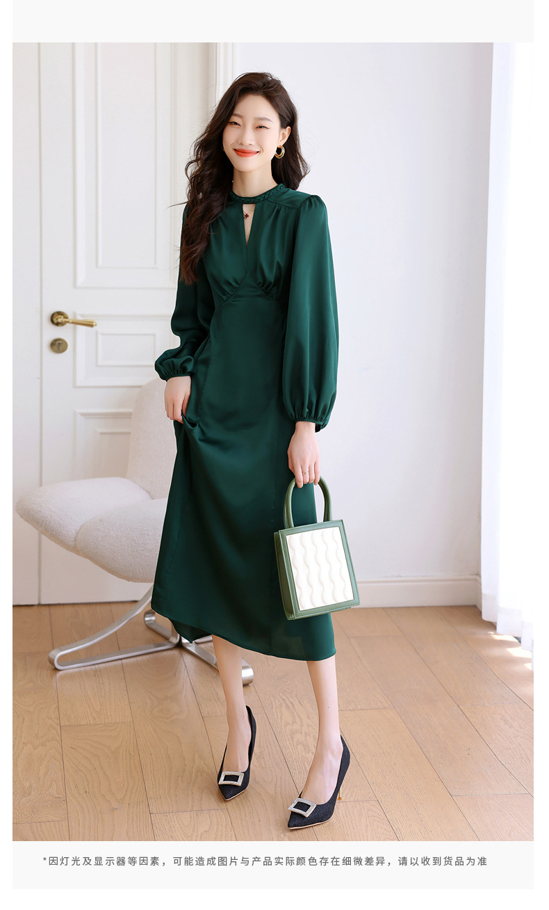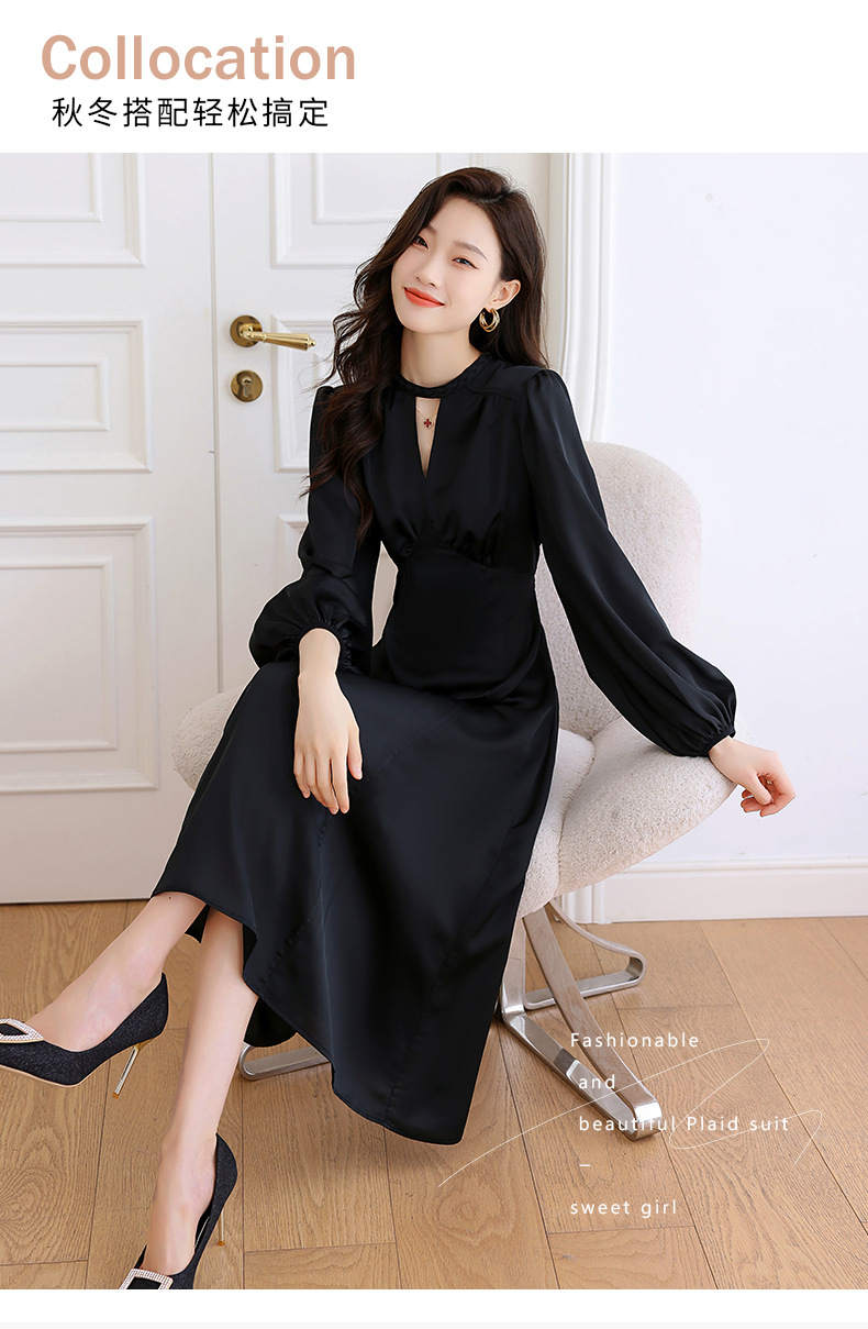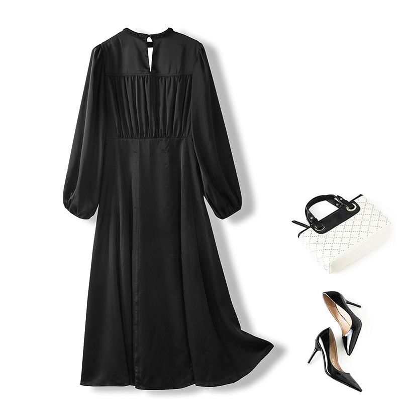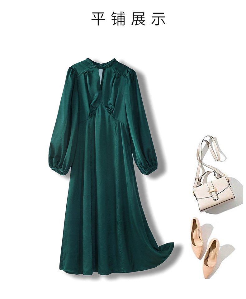 气质女神范,秋季缎面长袖褶皱浪漫收腰连衣裙HR-HAYR72237