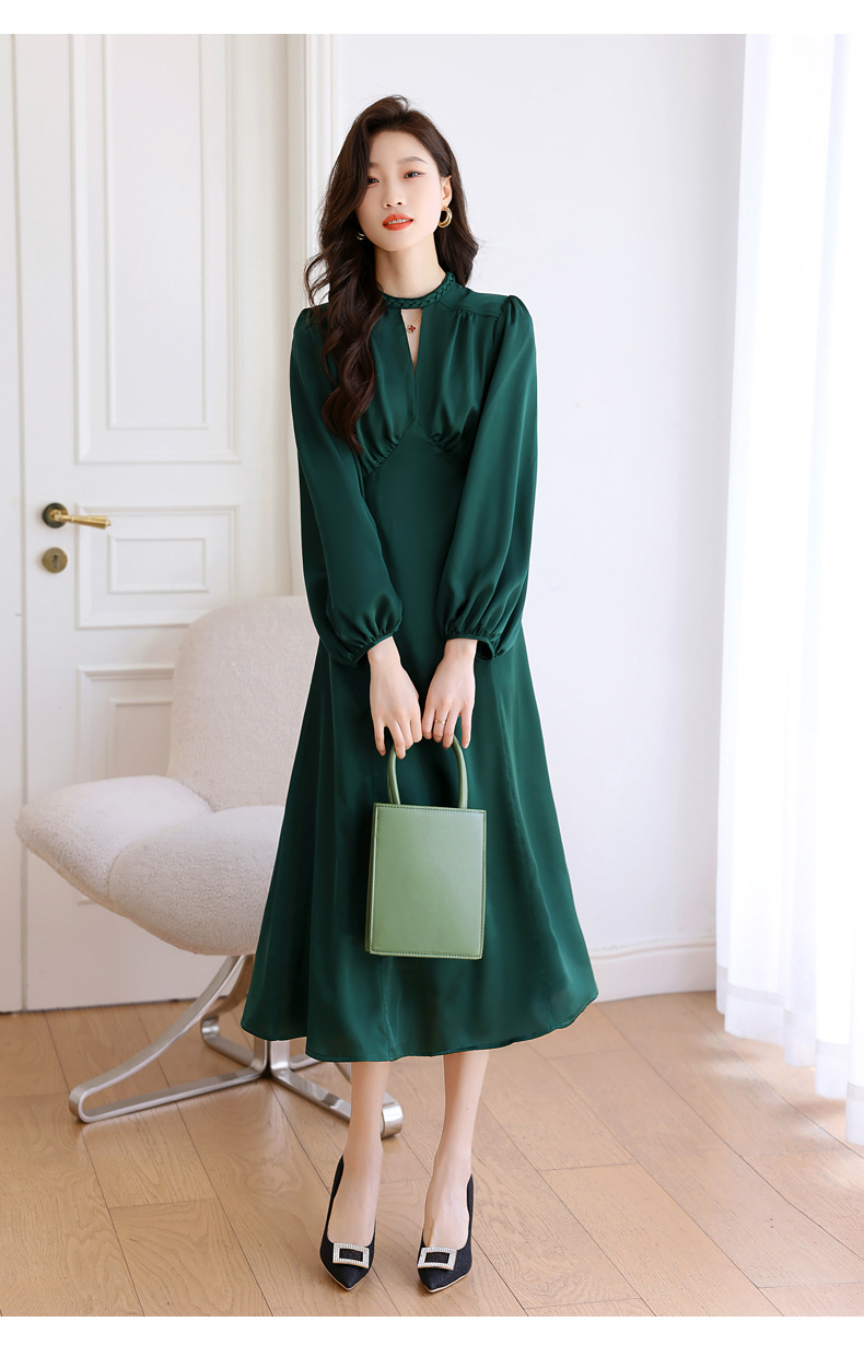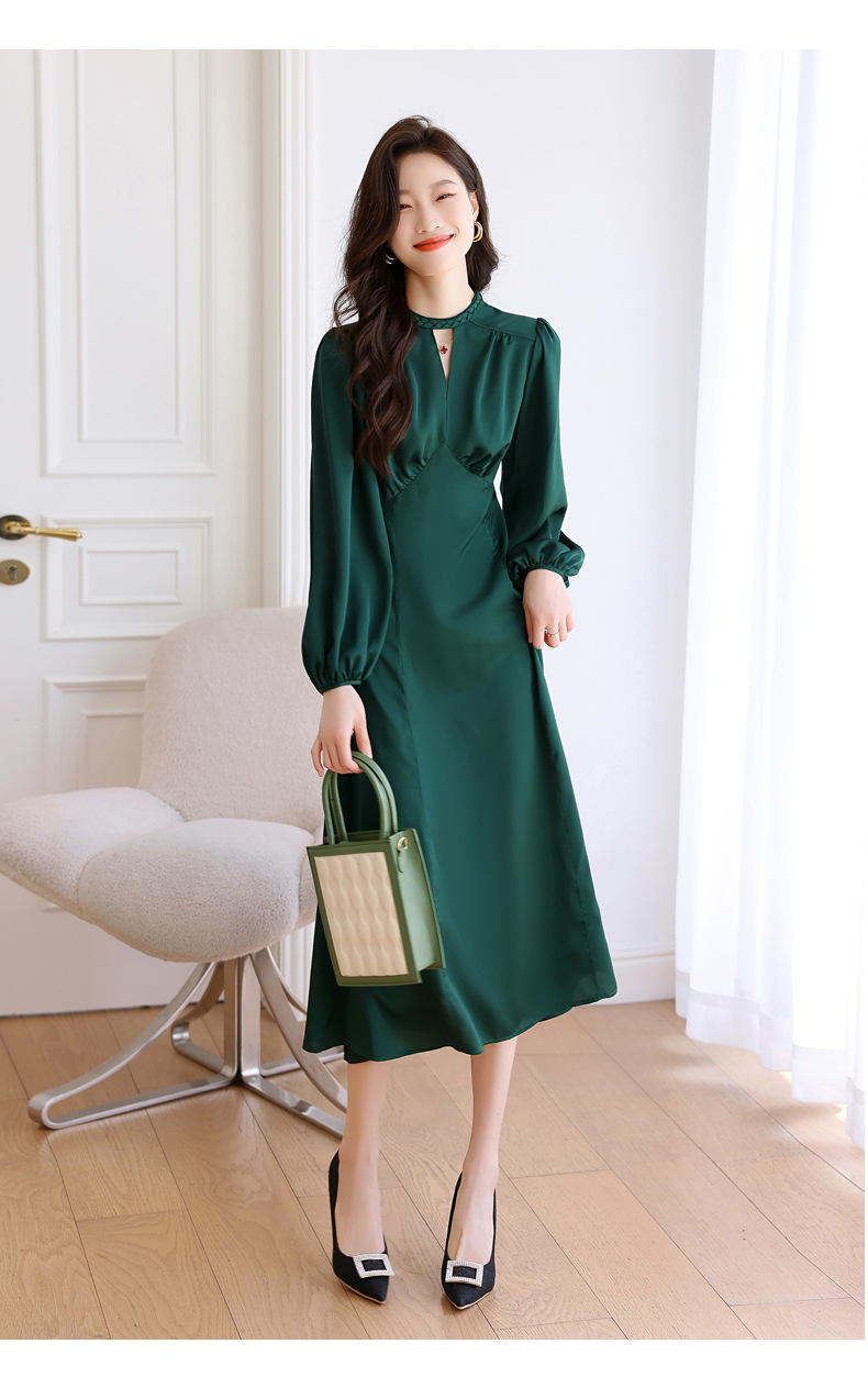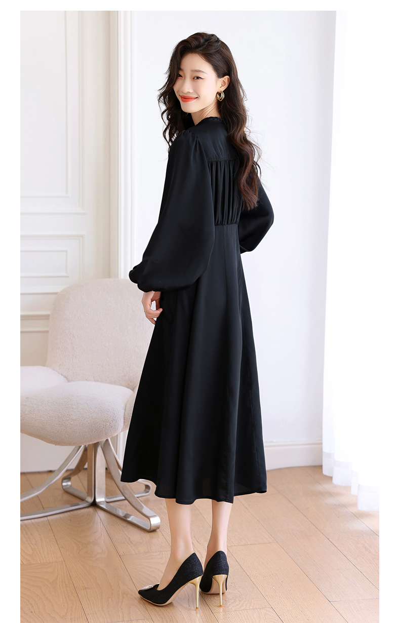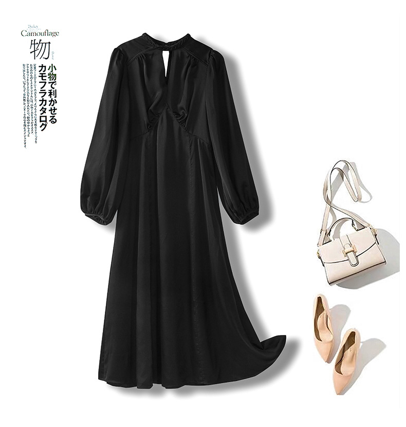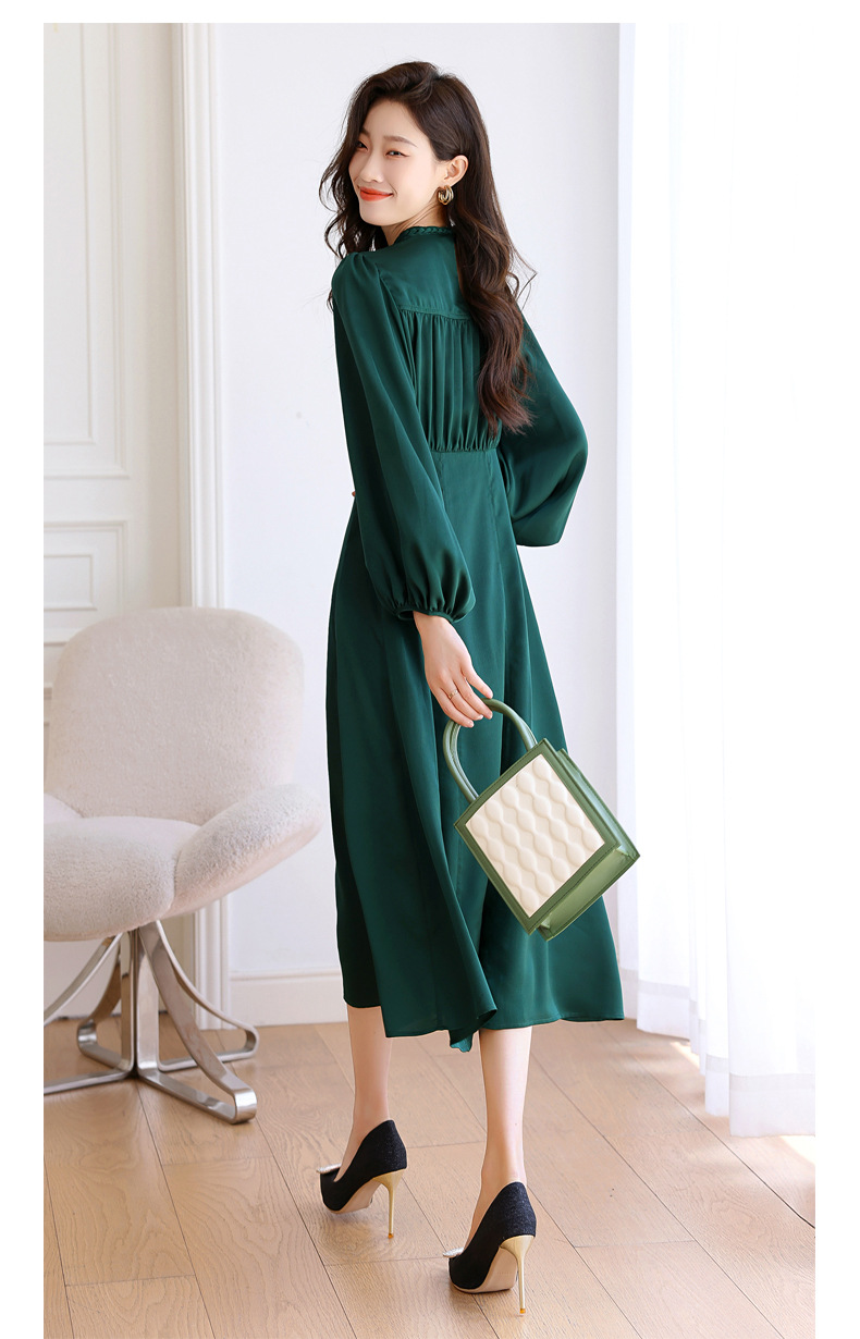 气质女神范,秋季缎面长袖褶皱浪漫收腰连衣裙HR-HAYR72237