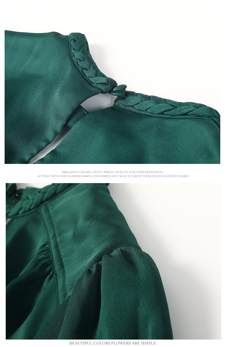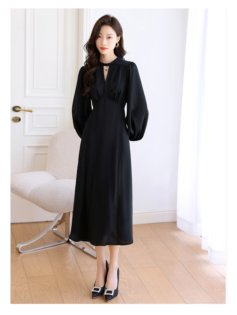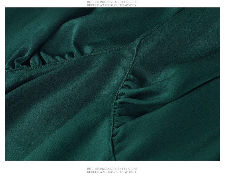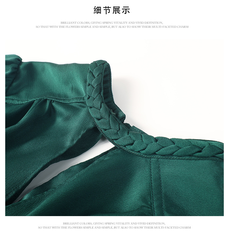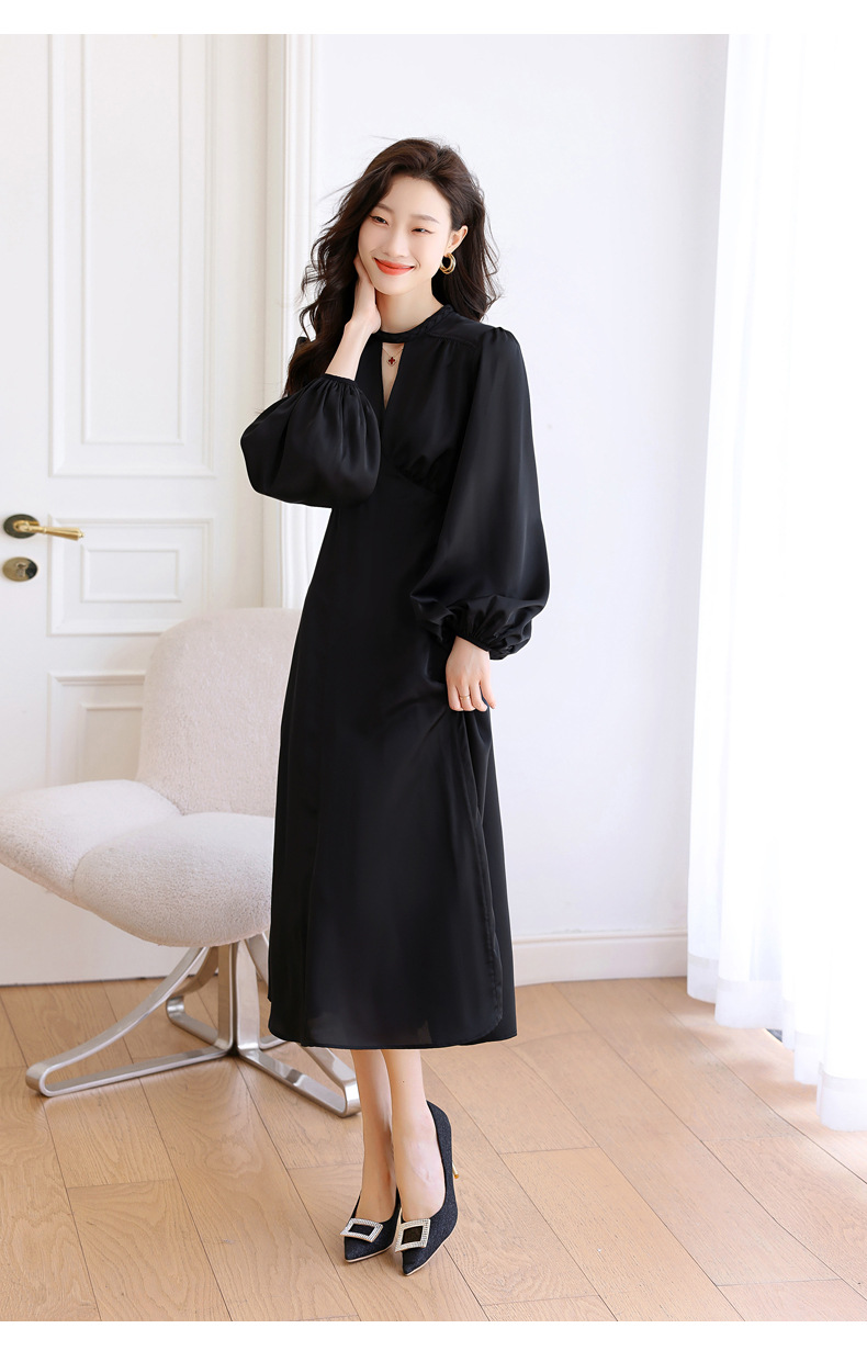 气质女神范,秋季缎面长袖褶皱浪漫收腰连衣裙HR-HAYR72237