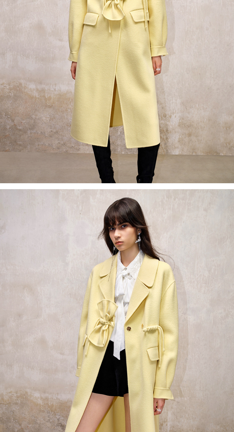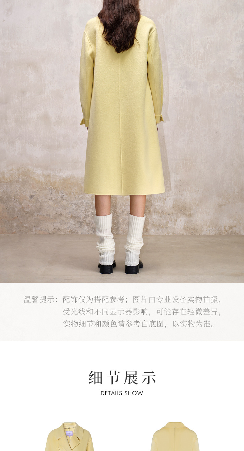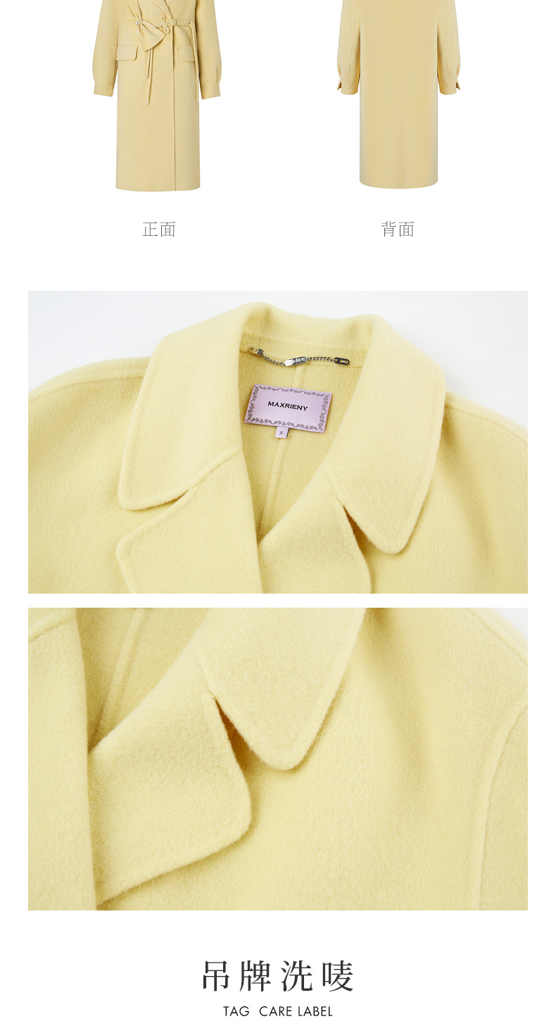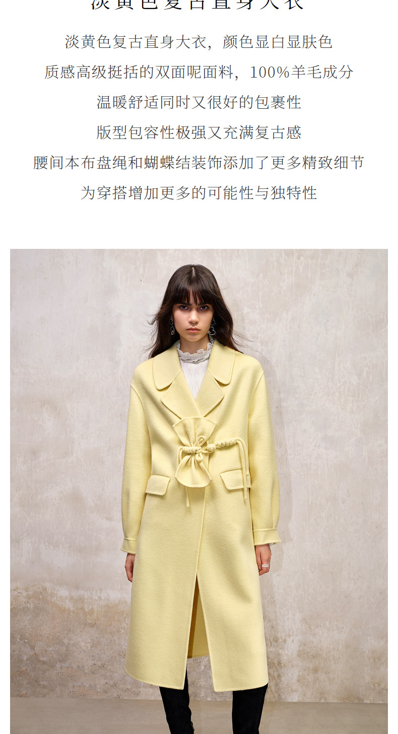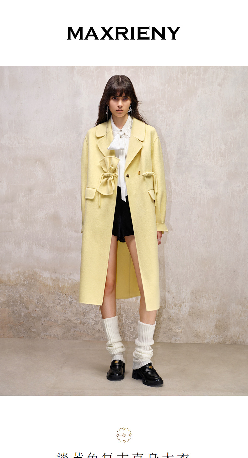 MAXRIENY*复古感淡黄直身羊毛大衣冬季长款外套(货号:MS88CT525)