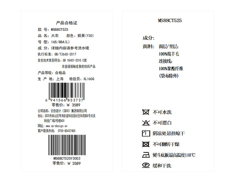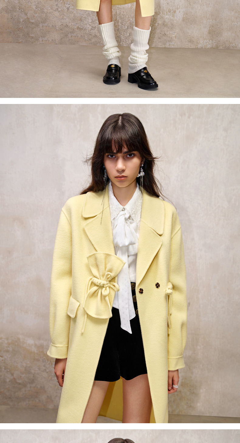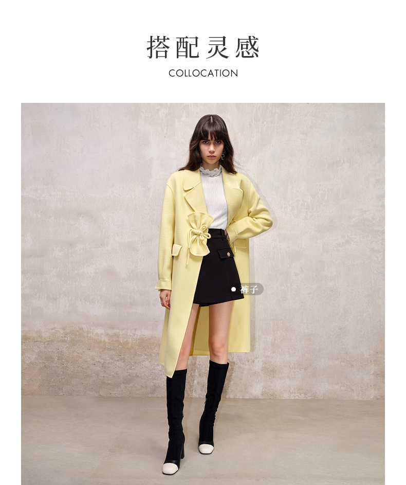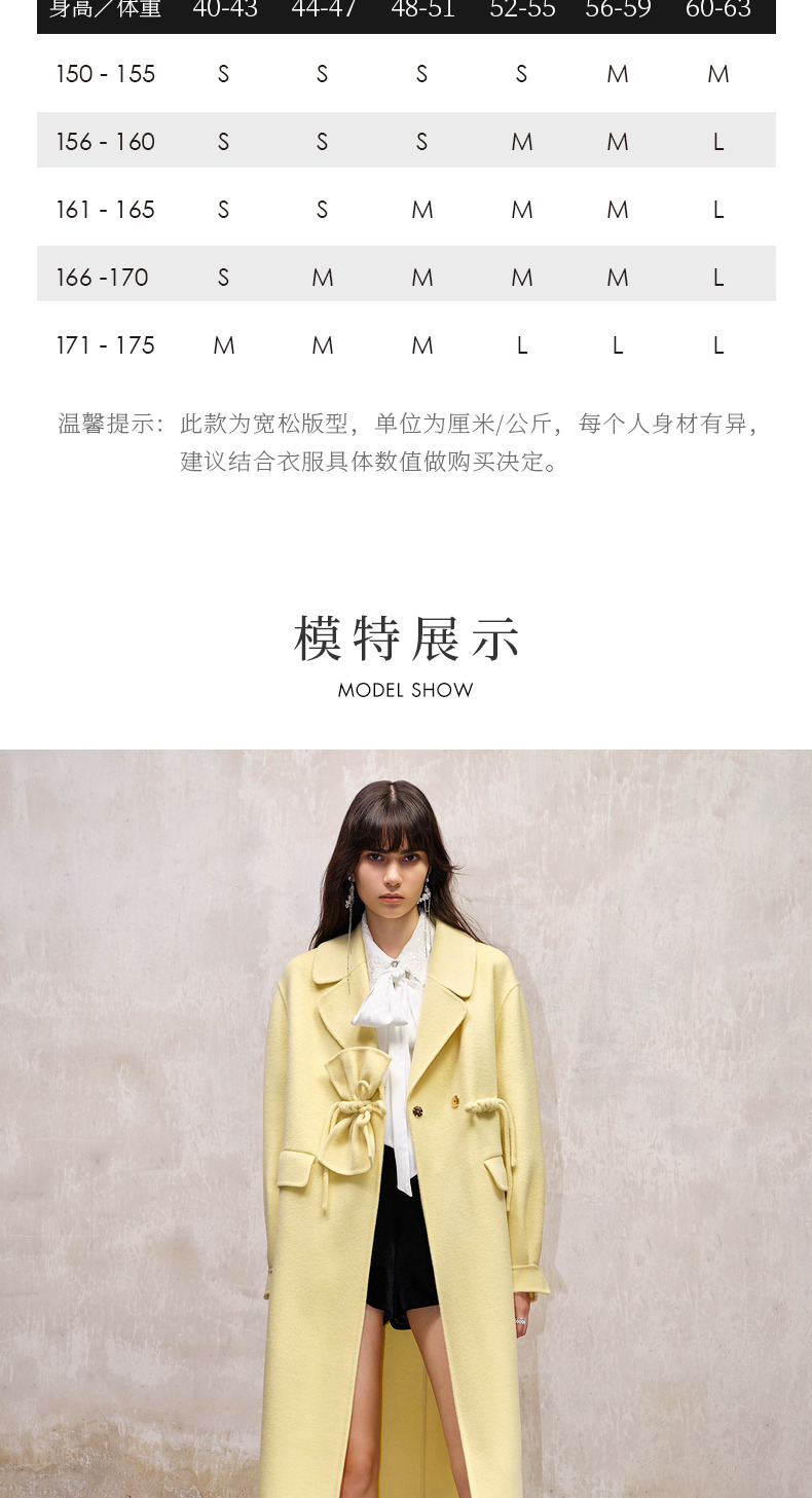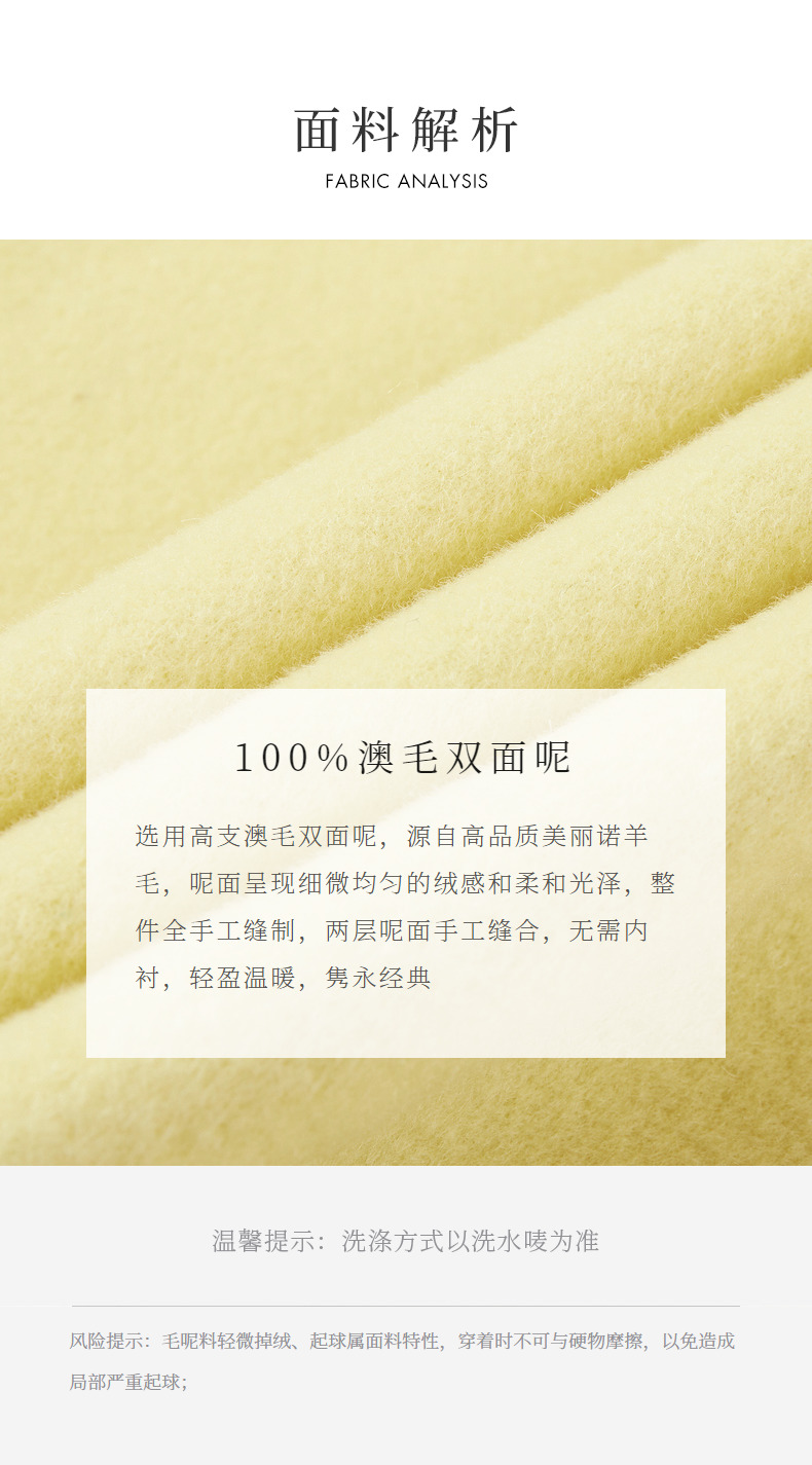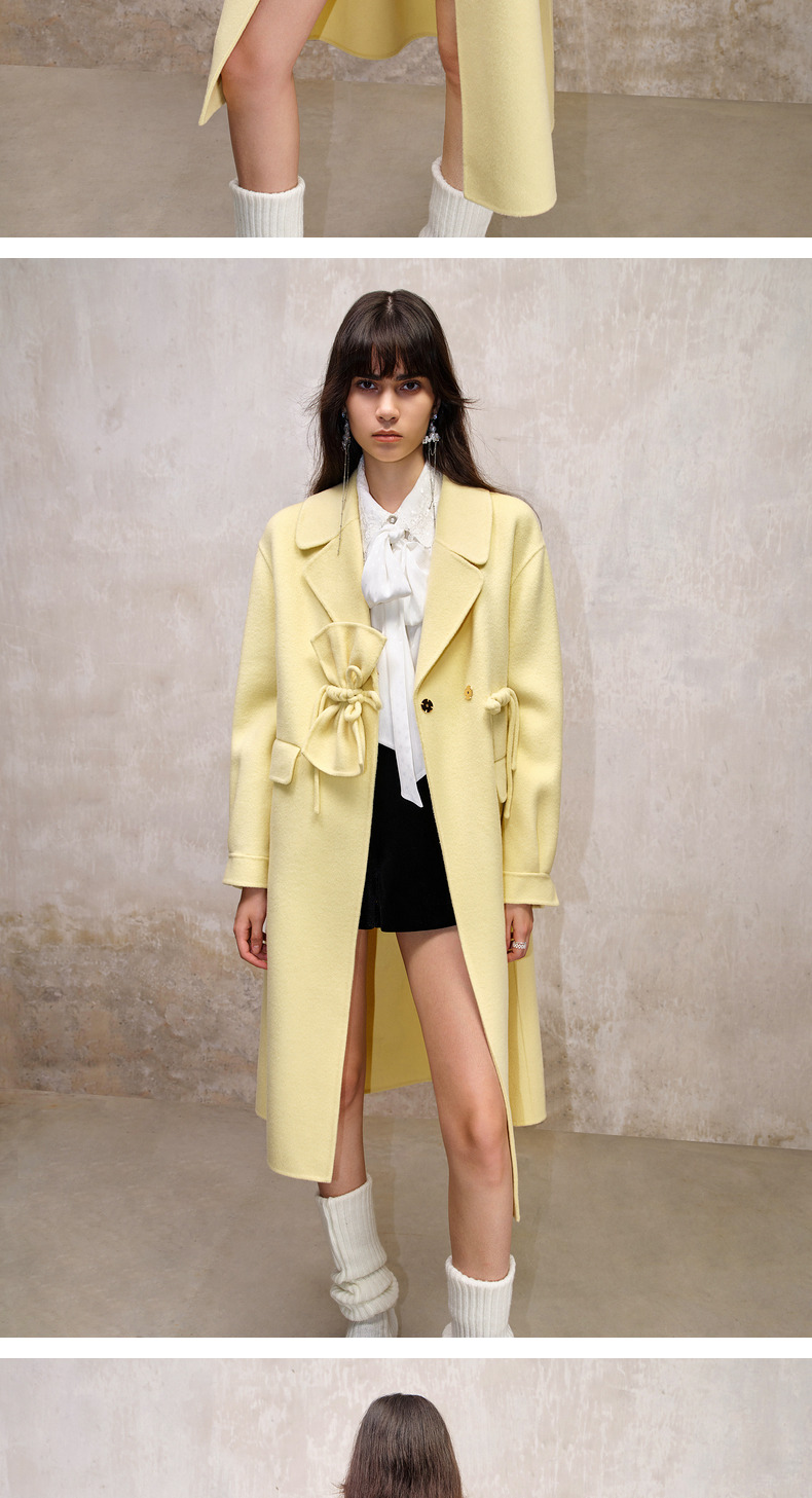 MAXRIENY*复古感淡黄直身羊毛大衣冬季长款外套(货号:MS88CT525)