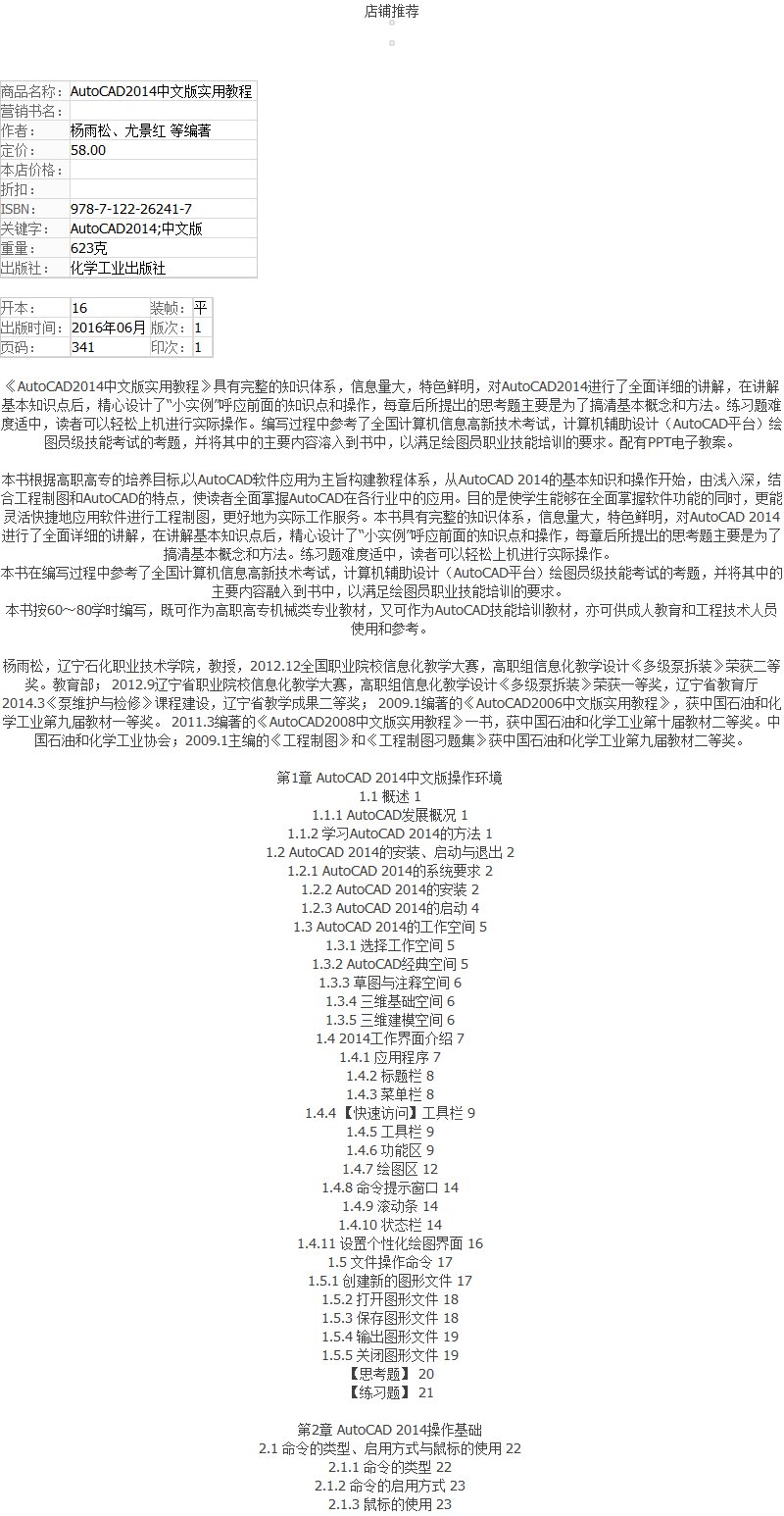 AutoCAD2014中文版实用教程 杨雨松 9787122262417