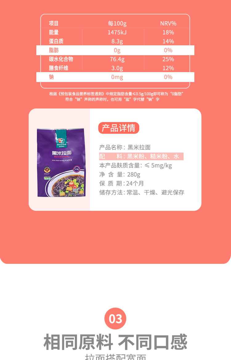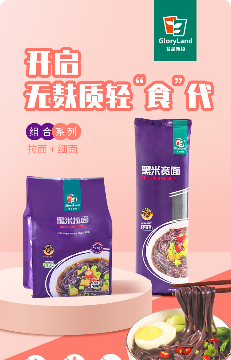谷品新约 无麸质黑米拉面条无小麦无蛋奶早餐饮食品0脂肪0钠盐非油炸黑米