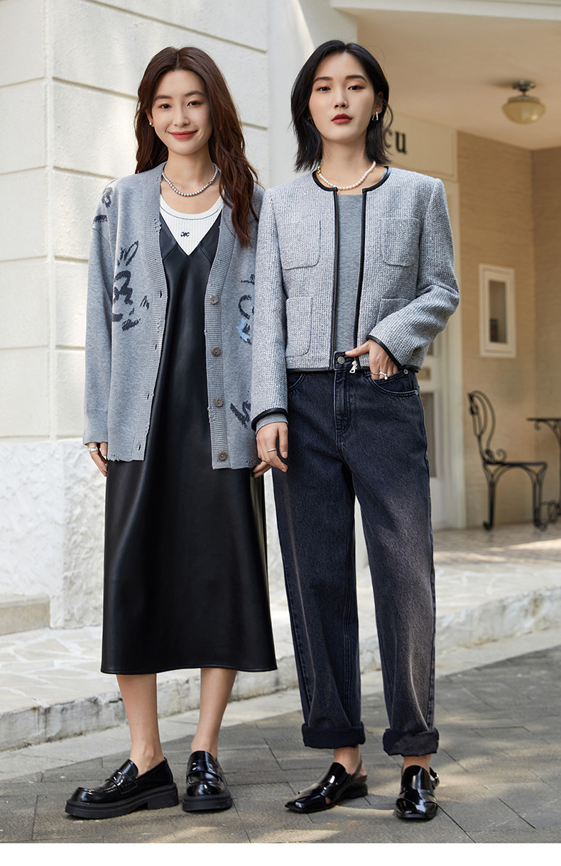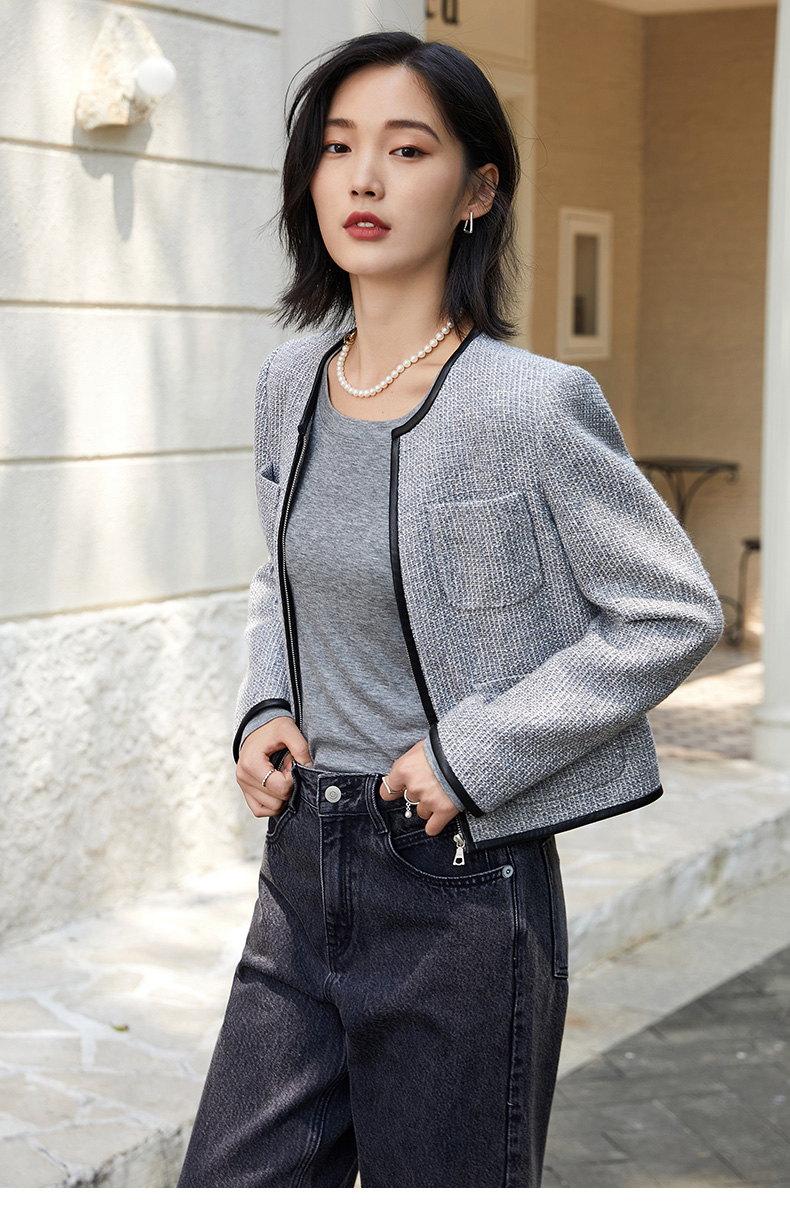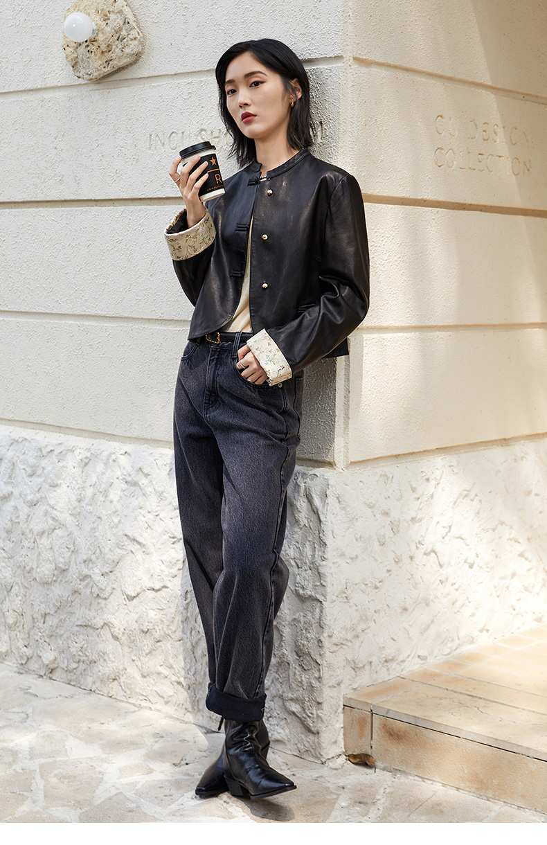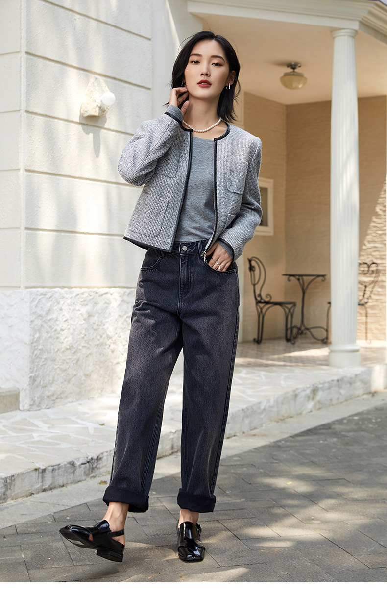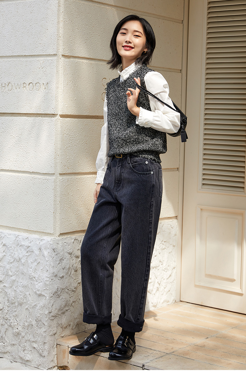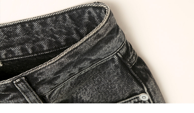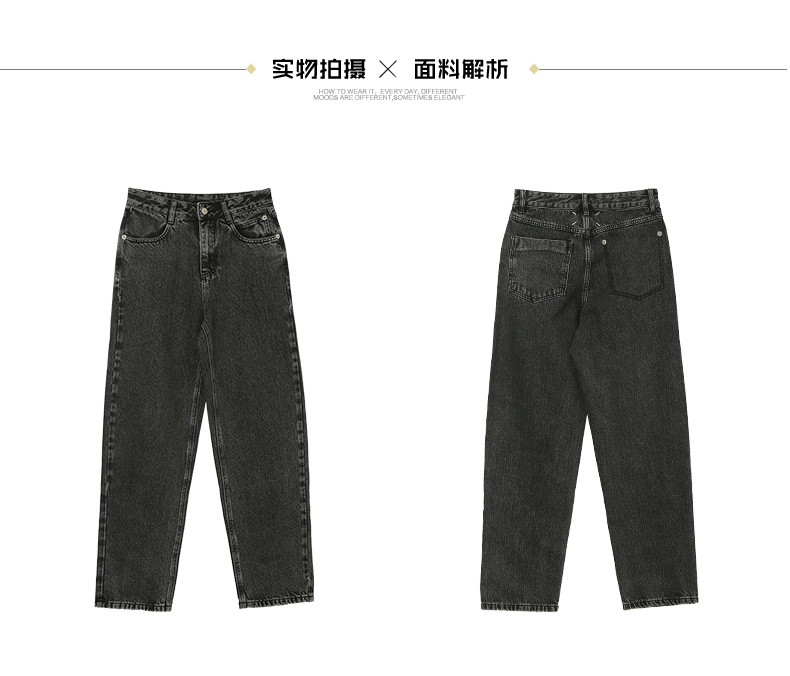 秋季新款高腰直筒牛仔阔腿裤 宽松显瘦卷边休闲长裤