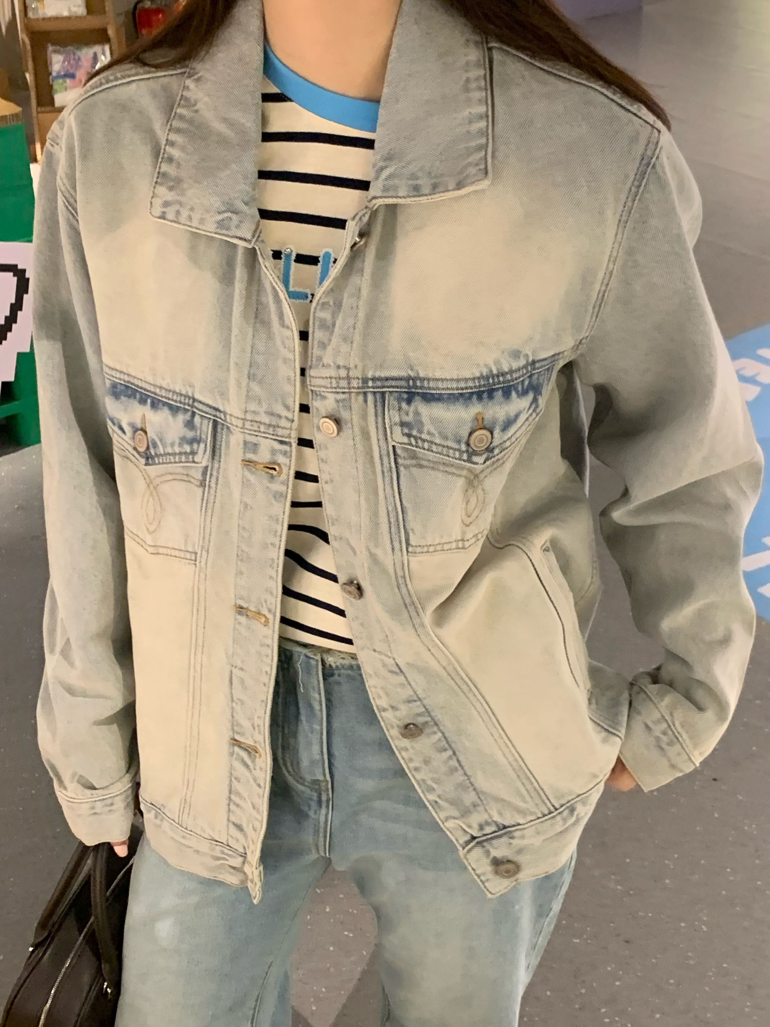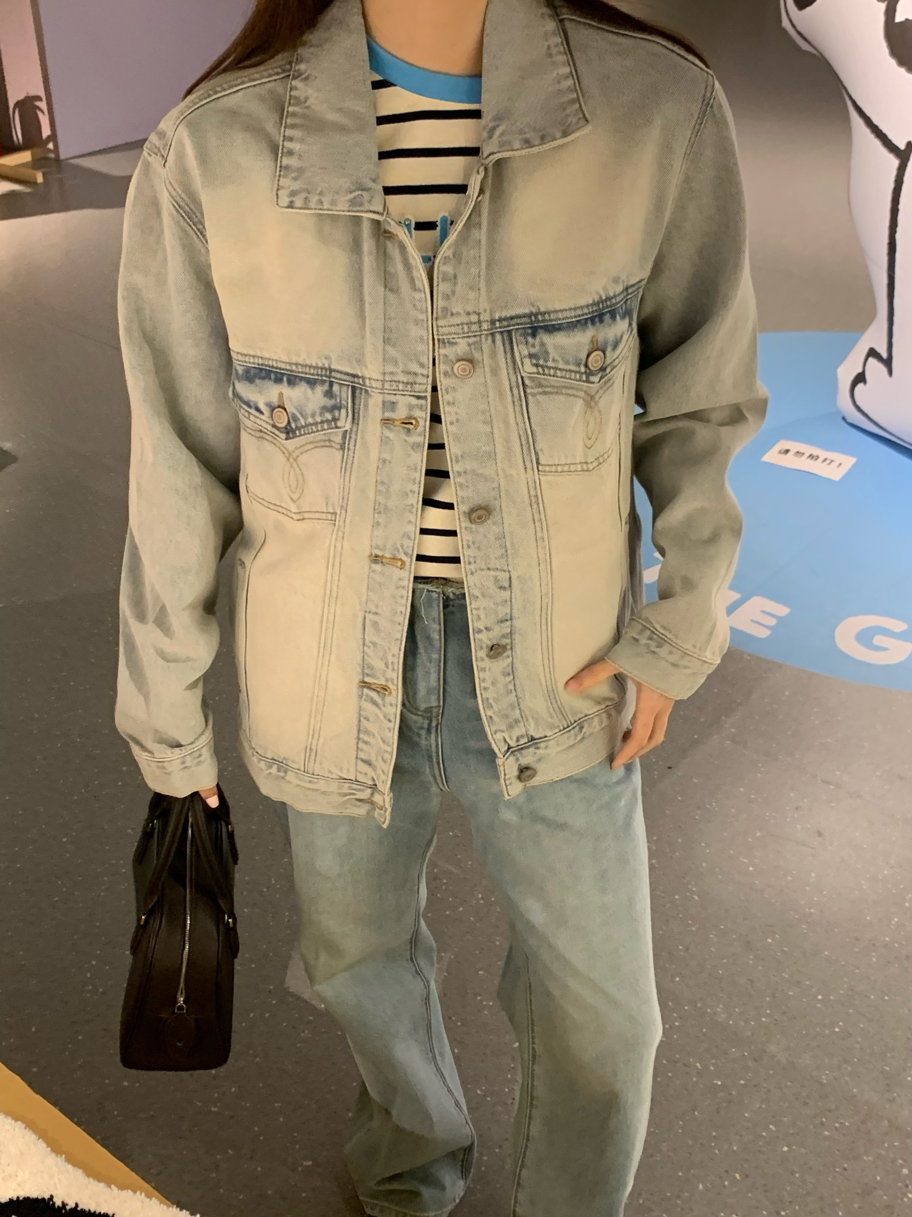 洛诗琳20353复古做旧牛仔外套2025春季新款男女同款宽松外套0113
