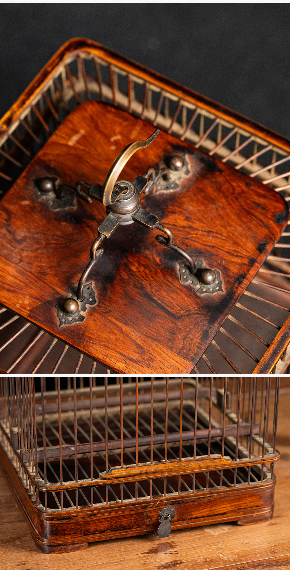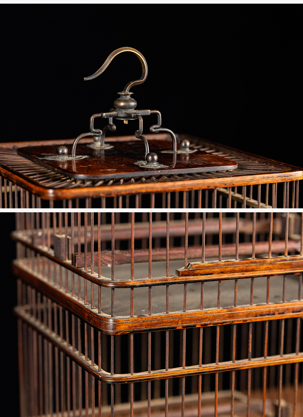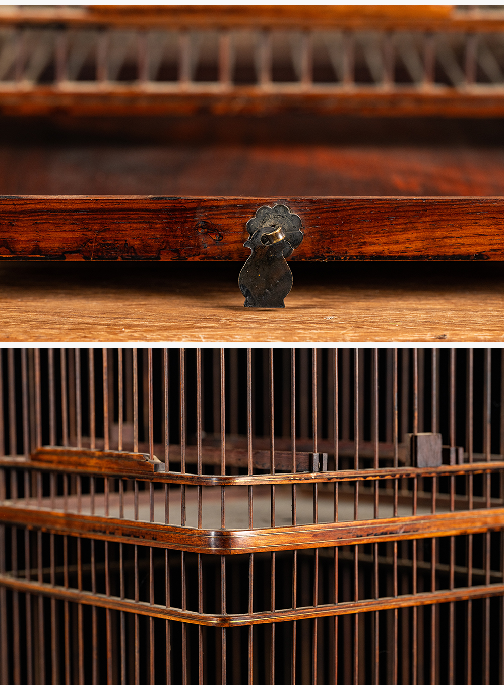清 黄花梨镶竹丝编四抹门亮格柜摆件