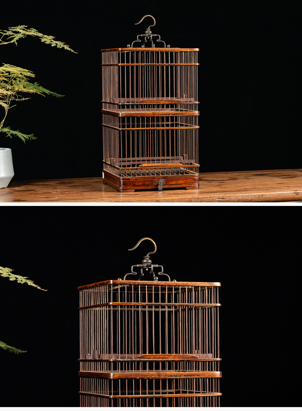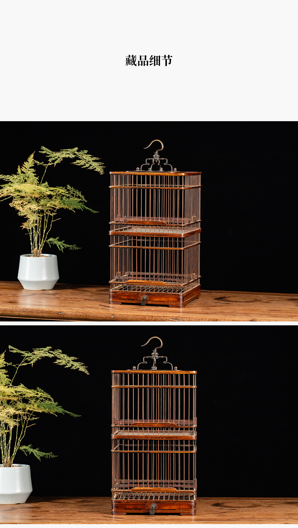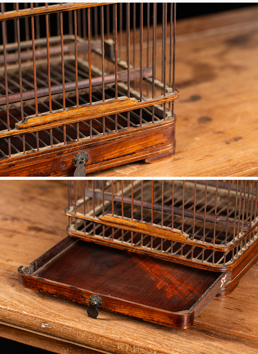 清 黄花梨镶竹丝编四抹门亮格柜摆件