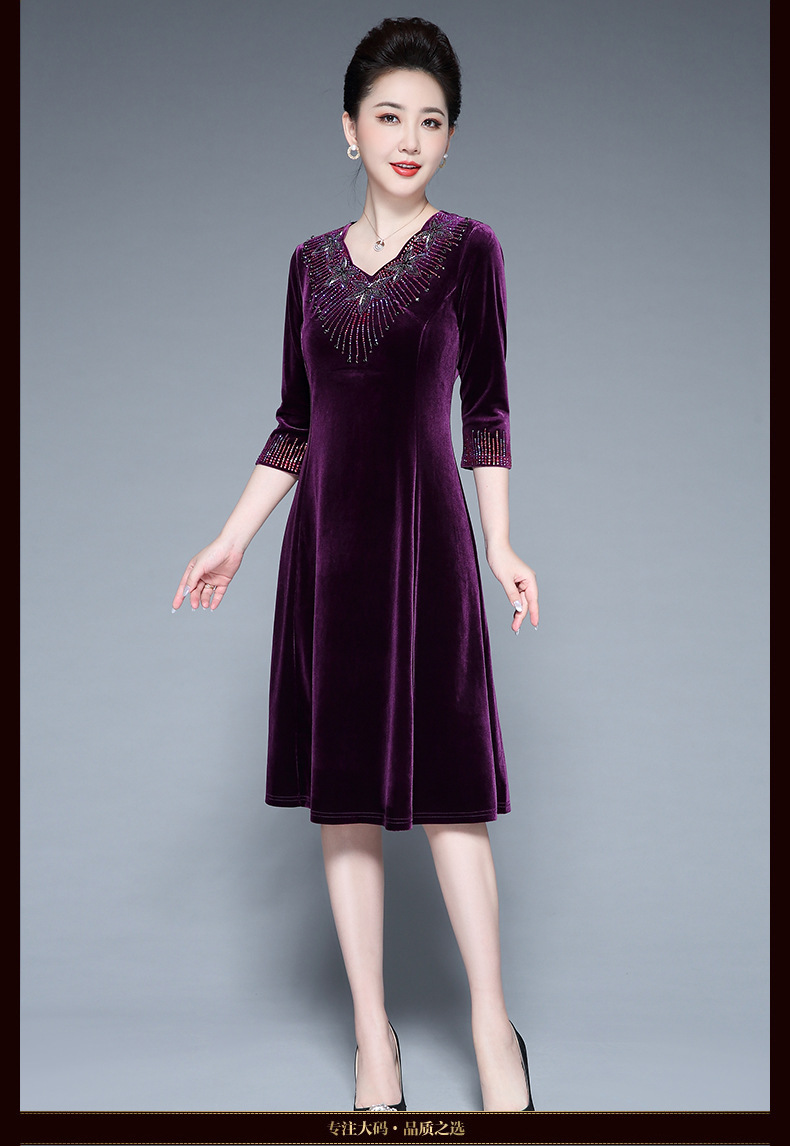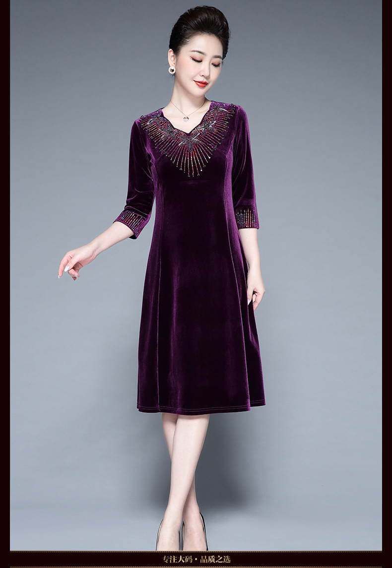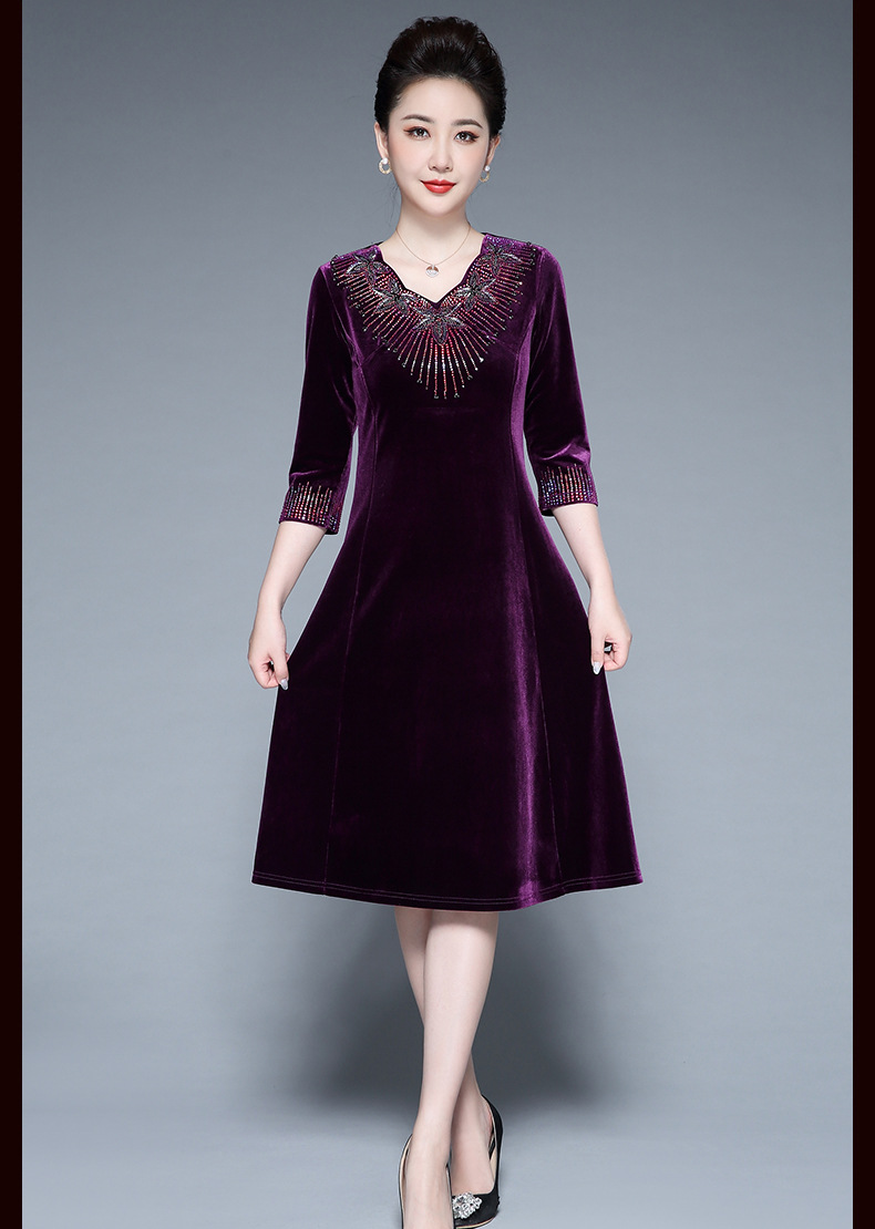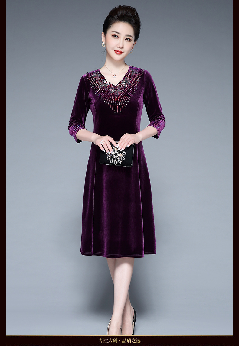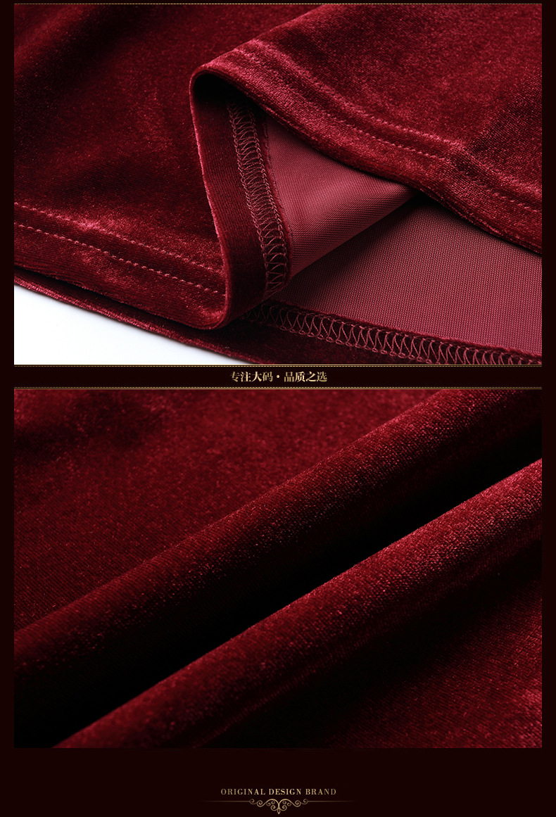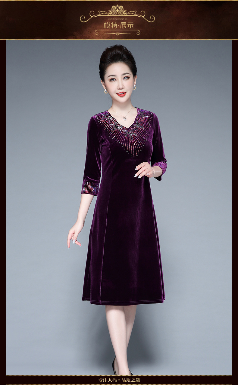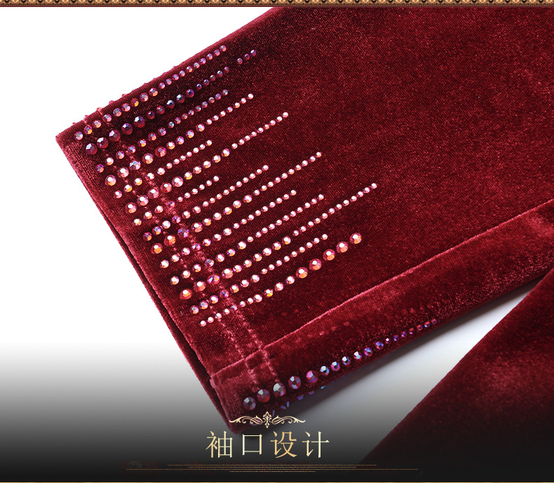 JC-2099新款重工钉珠V领红色金丝绒连衣裙中年高贵婚宴旗袍裙