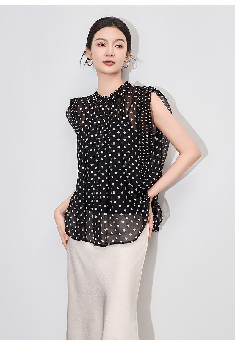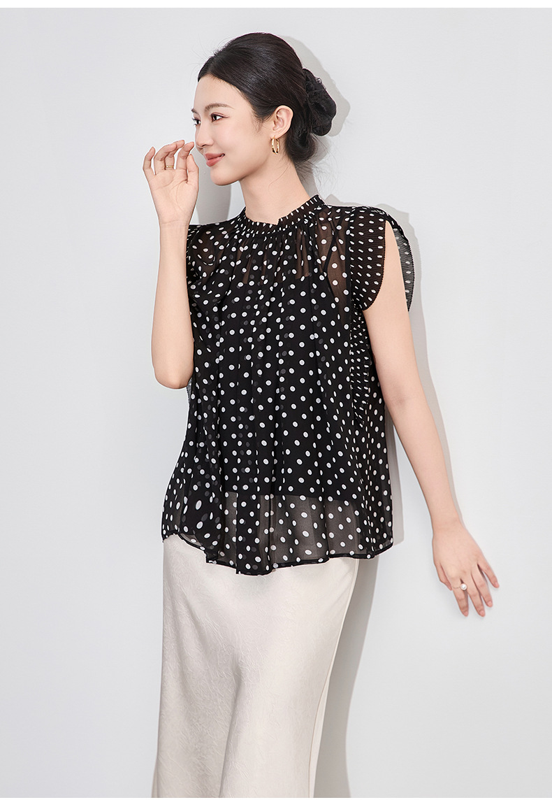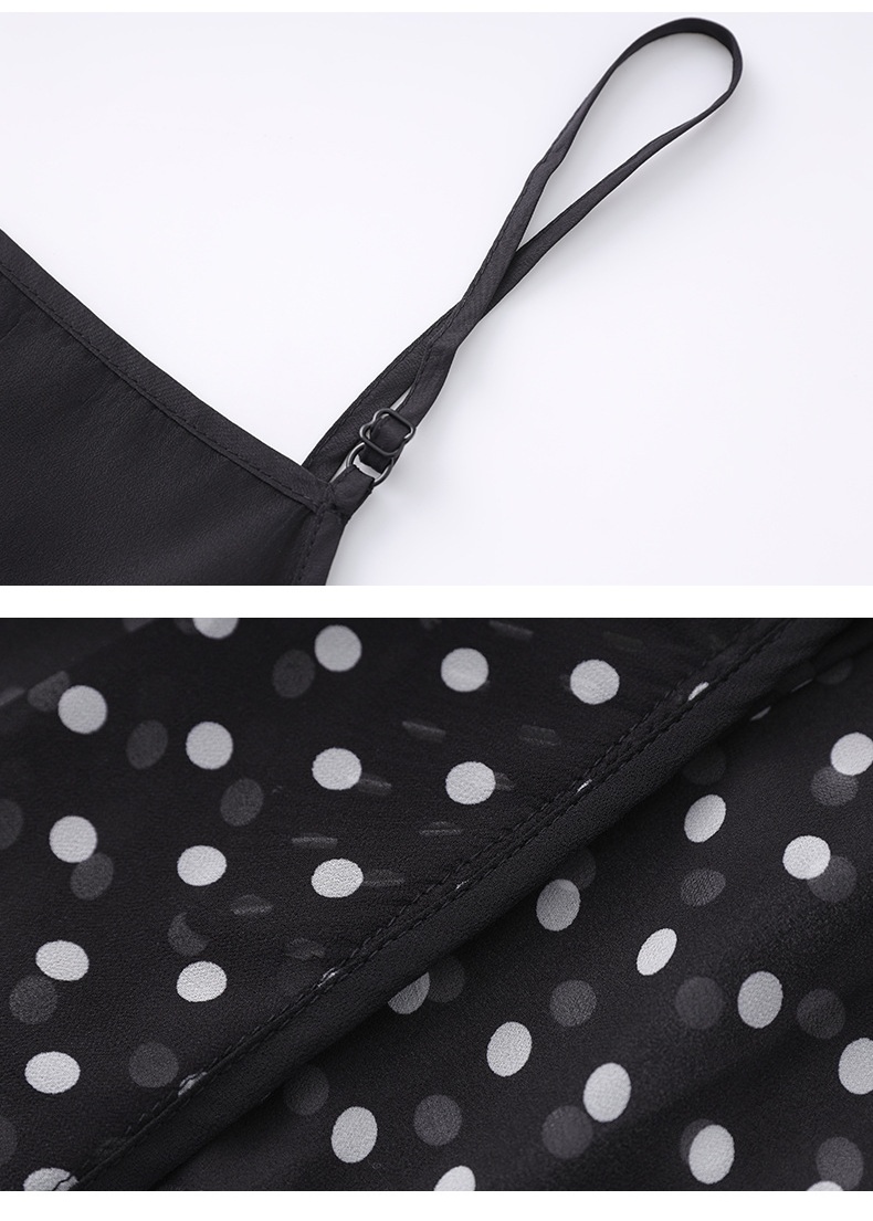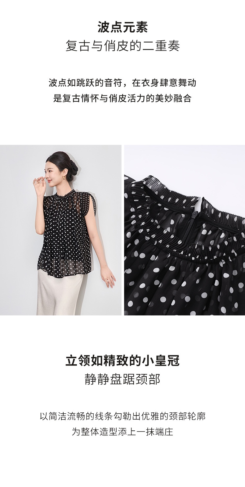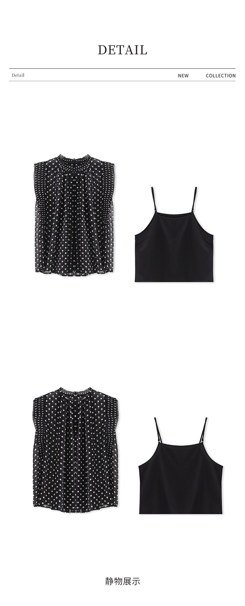 「高货wl」全新升级【铂金会员238/天猫319/差价81】(10956)洛诗琳优雅法式波点印花宽松无袖雪纺上衣吊带两件套女