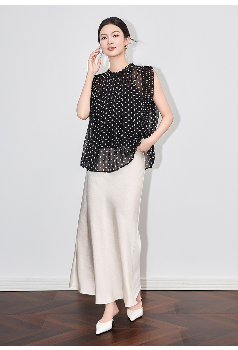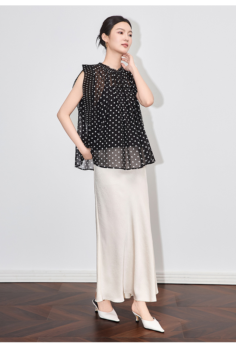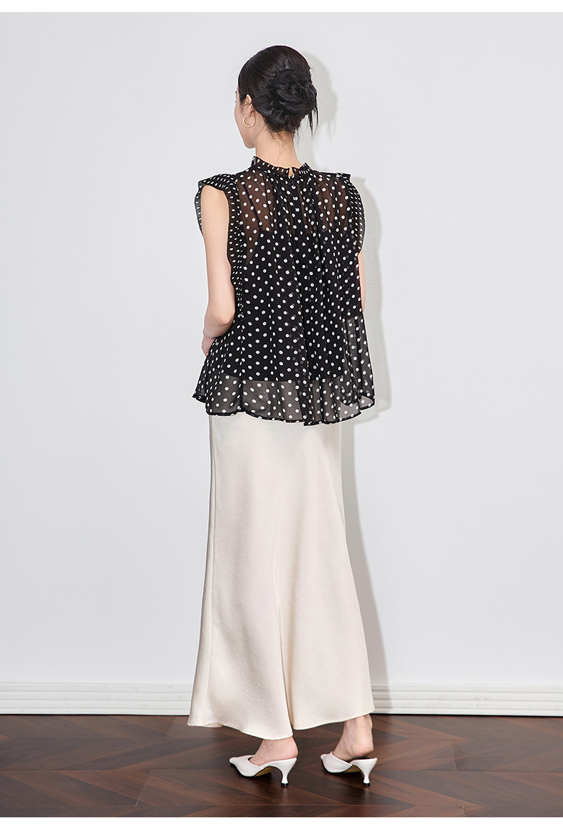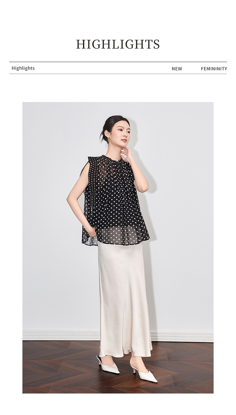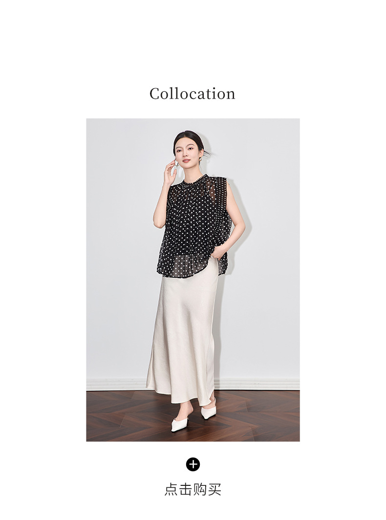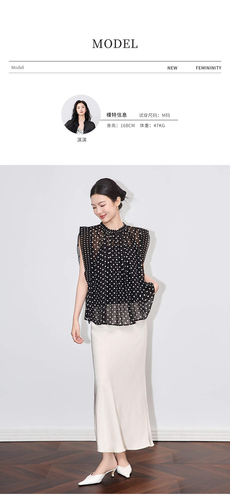 「高货wl」全新升级【铂金会员238/天猫319/差价81】(10956)洛诗琳优雅法式波点印花宽松无袖雪纺上衣吊带两件套女