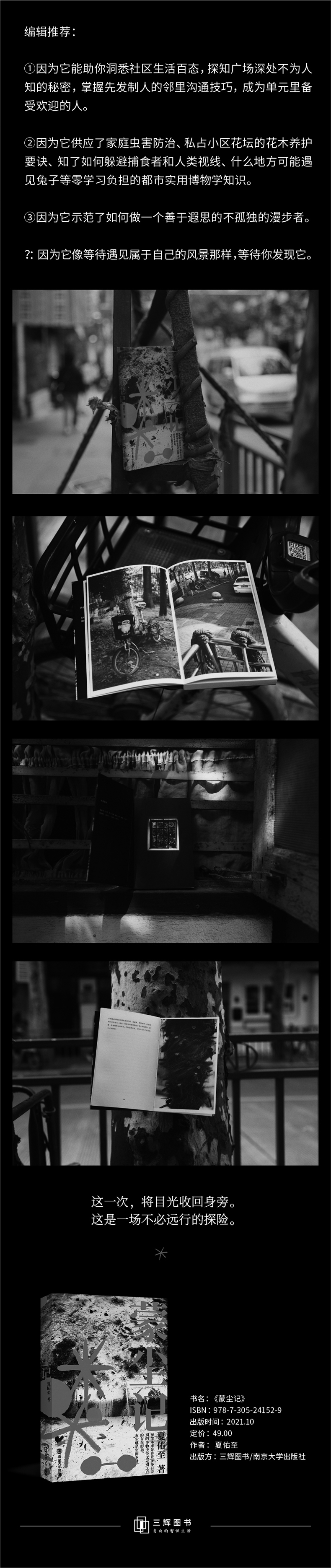 观看和相遇看似漫无目的,实则捡拾、连缀起生活中存在的碎片。它记录了人与虫鱼草木相互遭逢的瞬间,也记录了人与人之间微妙的社交尺度,青春时期的精神叛离,凡常日子里的温情与倔强。目光和思考消弭着城市有形与无形的边界——一些是由水杉、月桂和珊瑚树所构筑的边界,还有一些则是由禁忌和沉默所构筑的。城市不只是空间的集合,也是时间本身。四季更替,苍老和成长,成为书中勾绘的隐秘脉络。