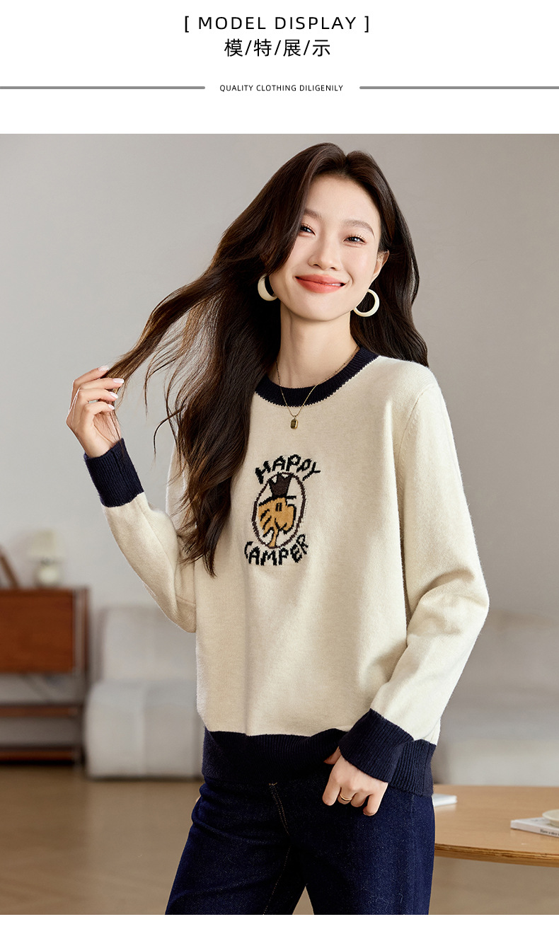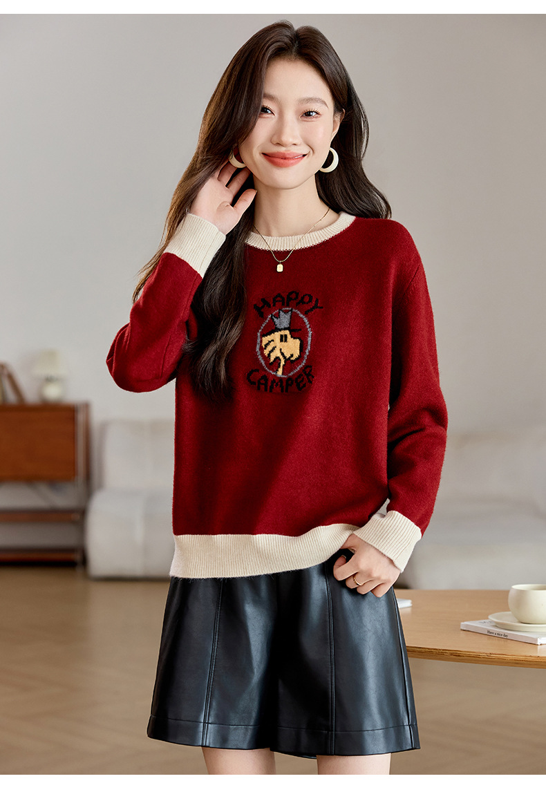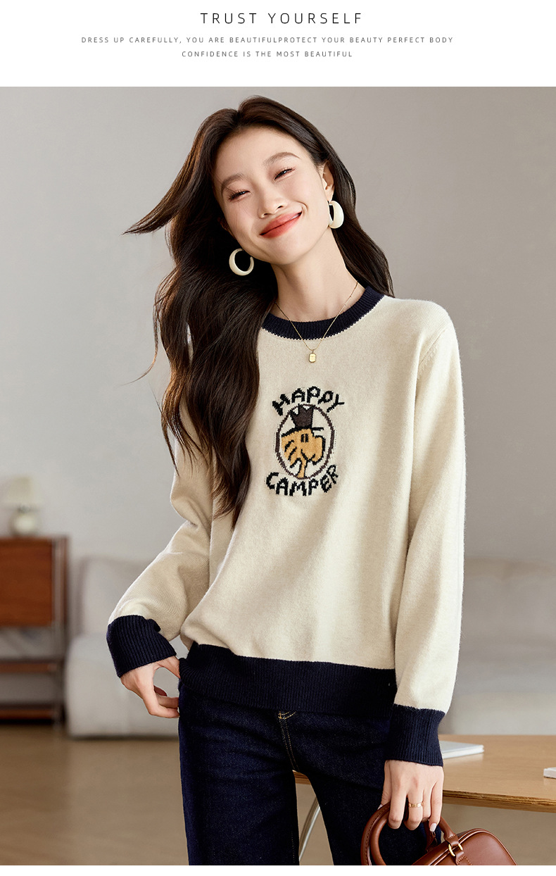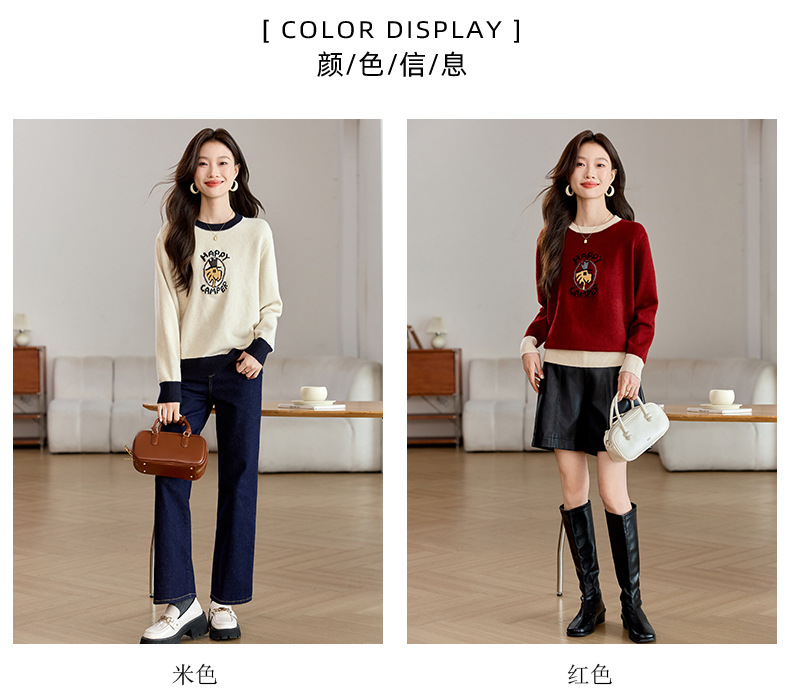 CC-QL-W8520圆领卡通毛衣女秋冬2024慵懒风宽松加厚针织衫内搭气质打底上衣女