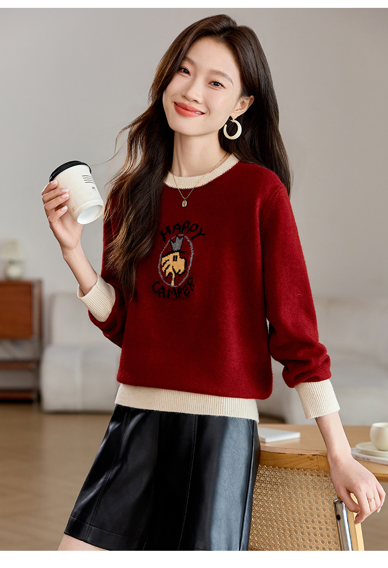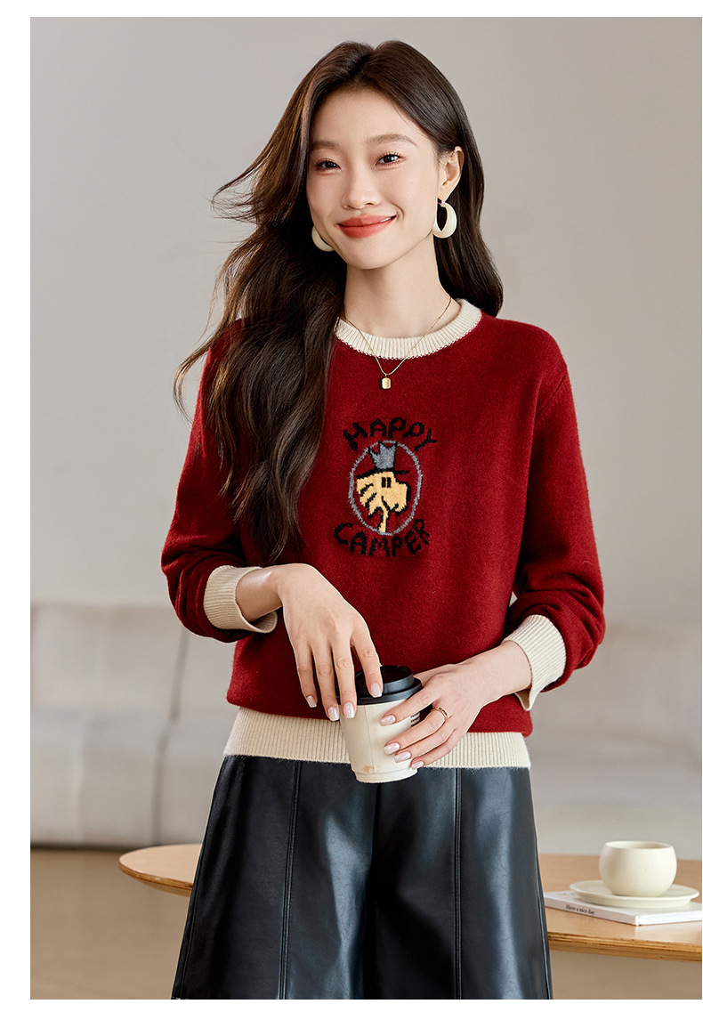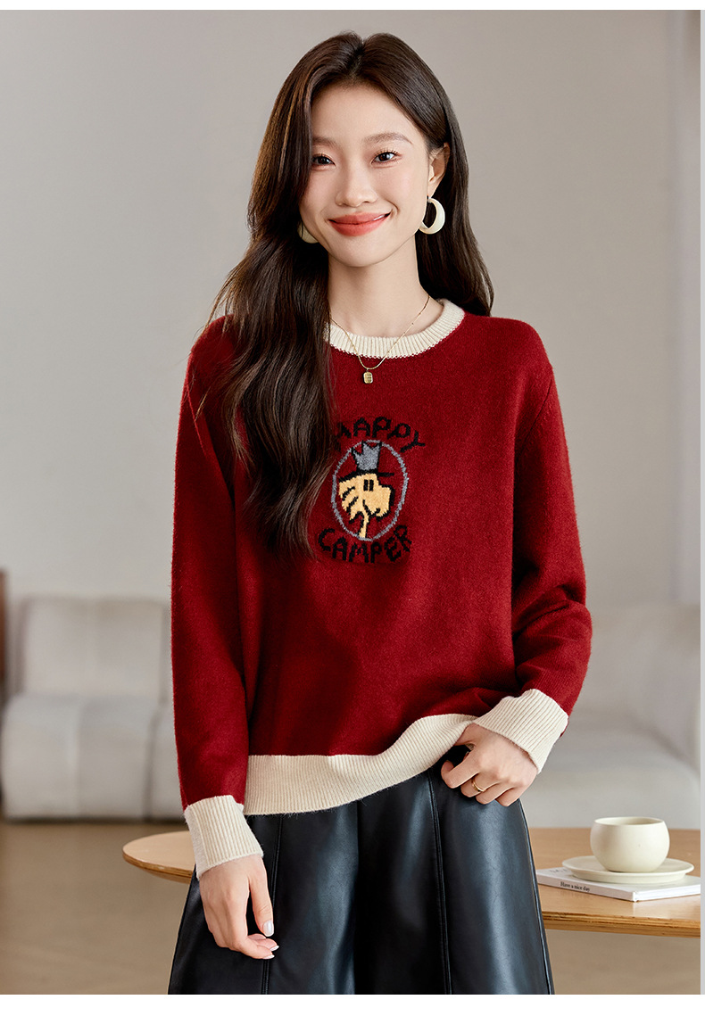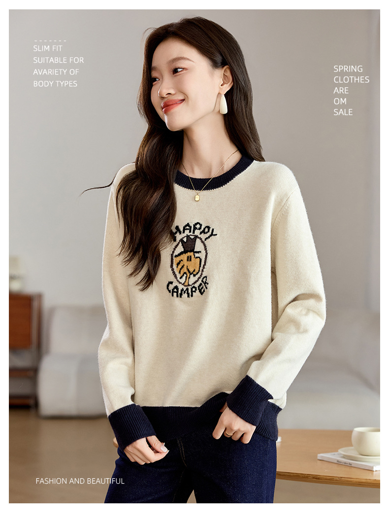 CC-QL-W8520圆领卡通毛衣女秋冬2024慵懒风宽松加厚针织衫内搭气质打底上衣女