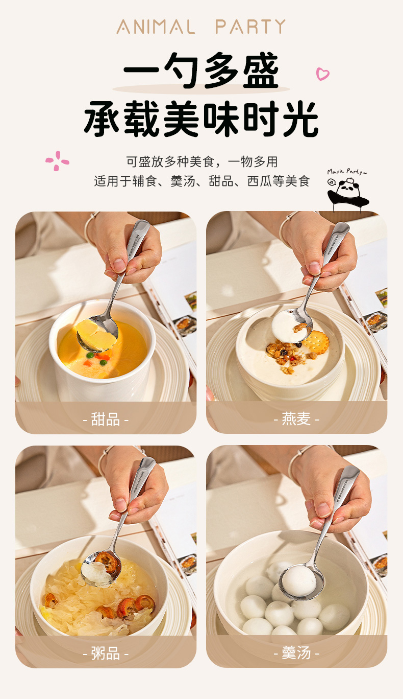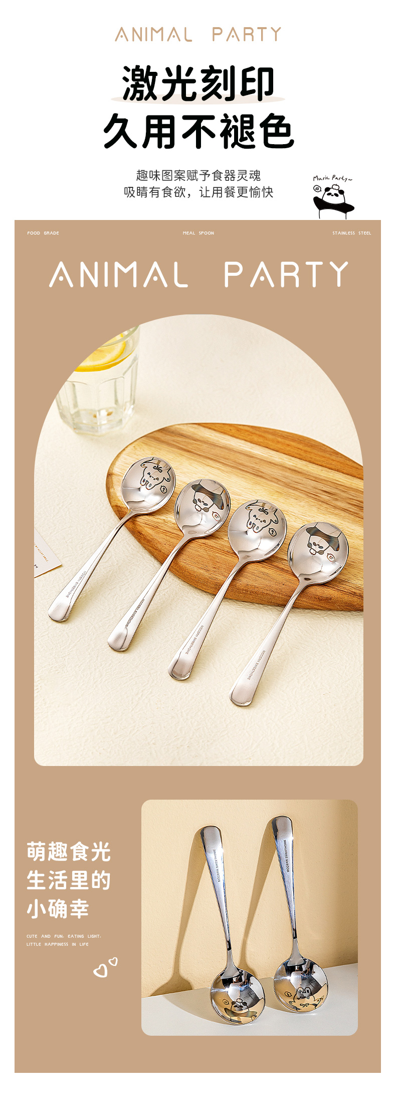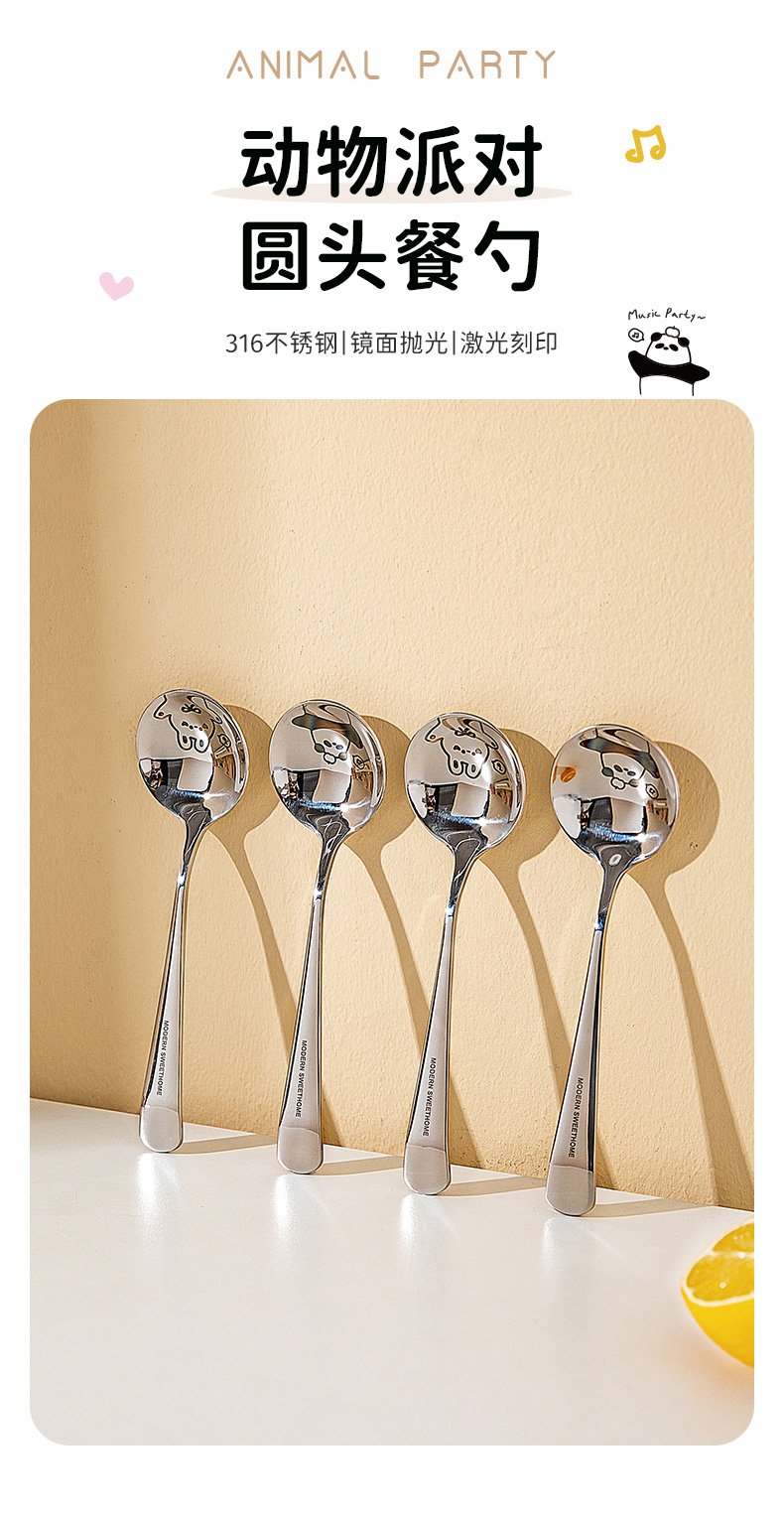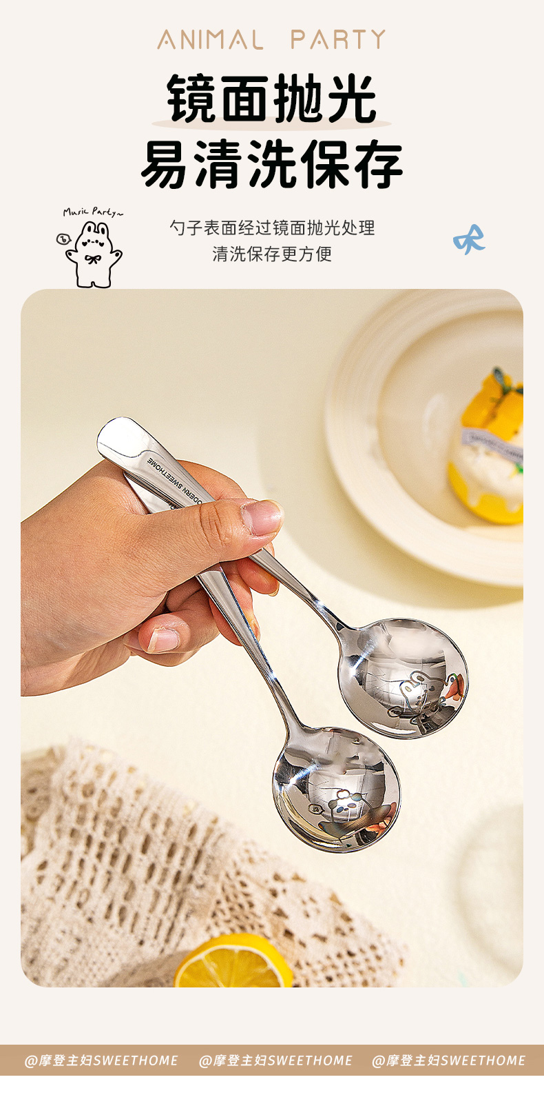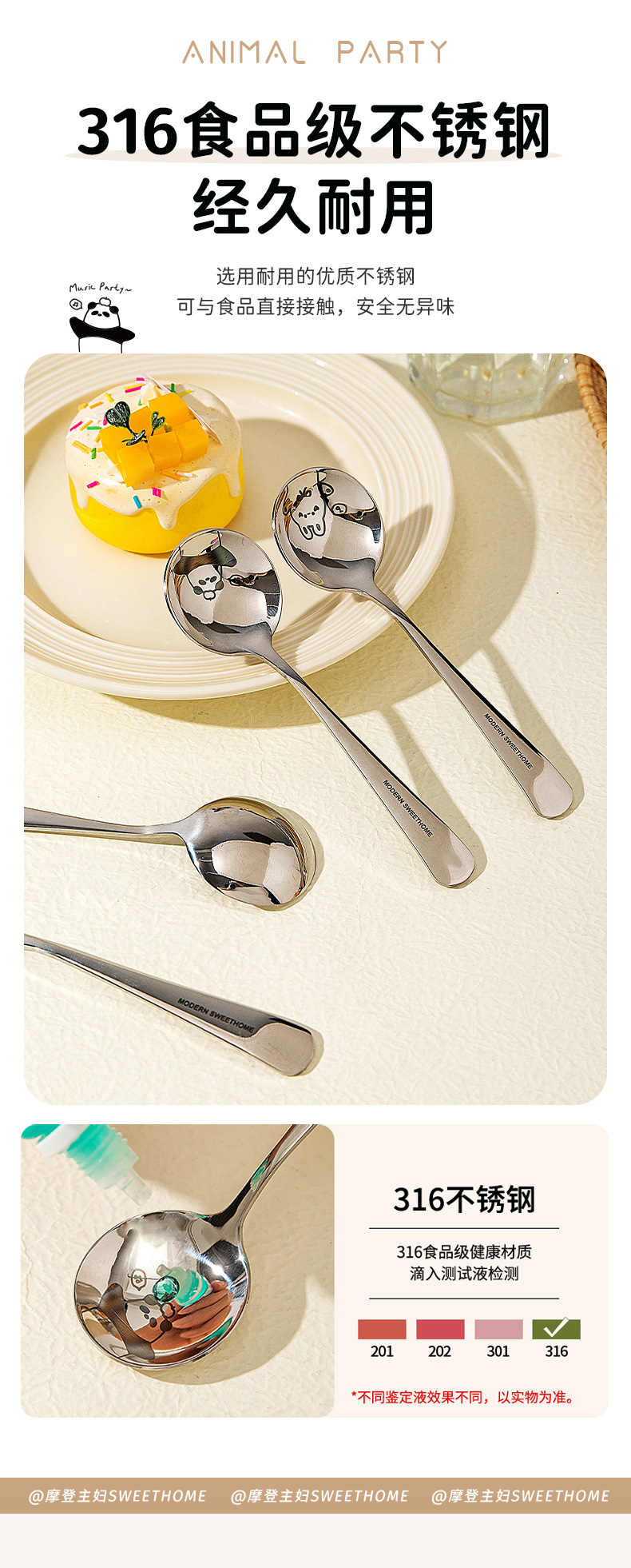 摩登主妇动物派对不锈钢勺子家用食品级个人专用西瓜勺儿童小勺子