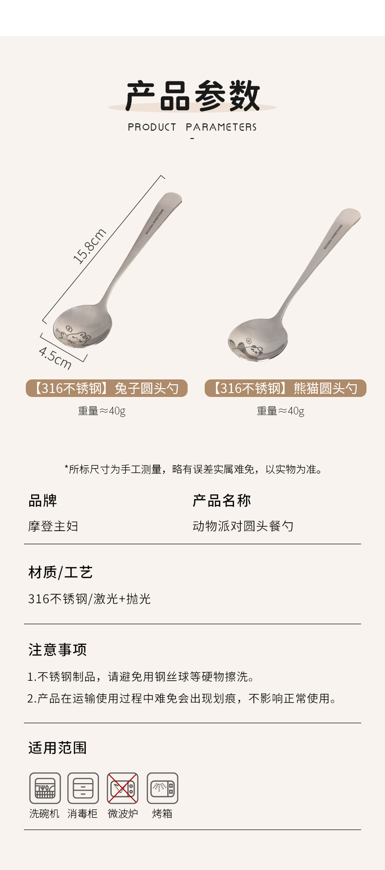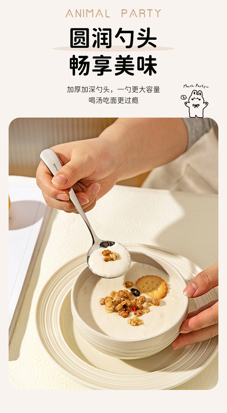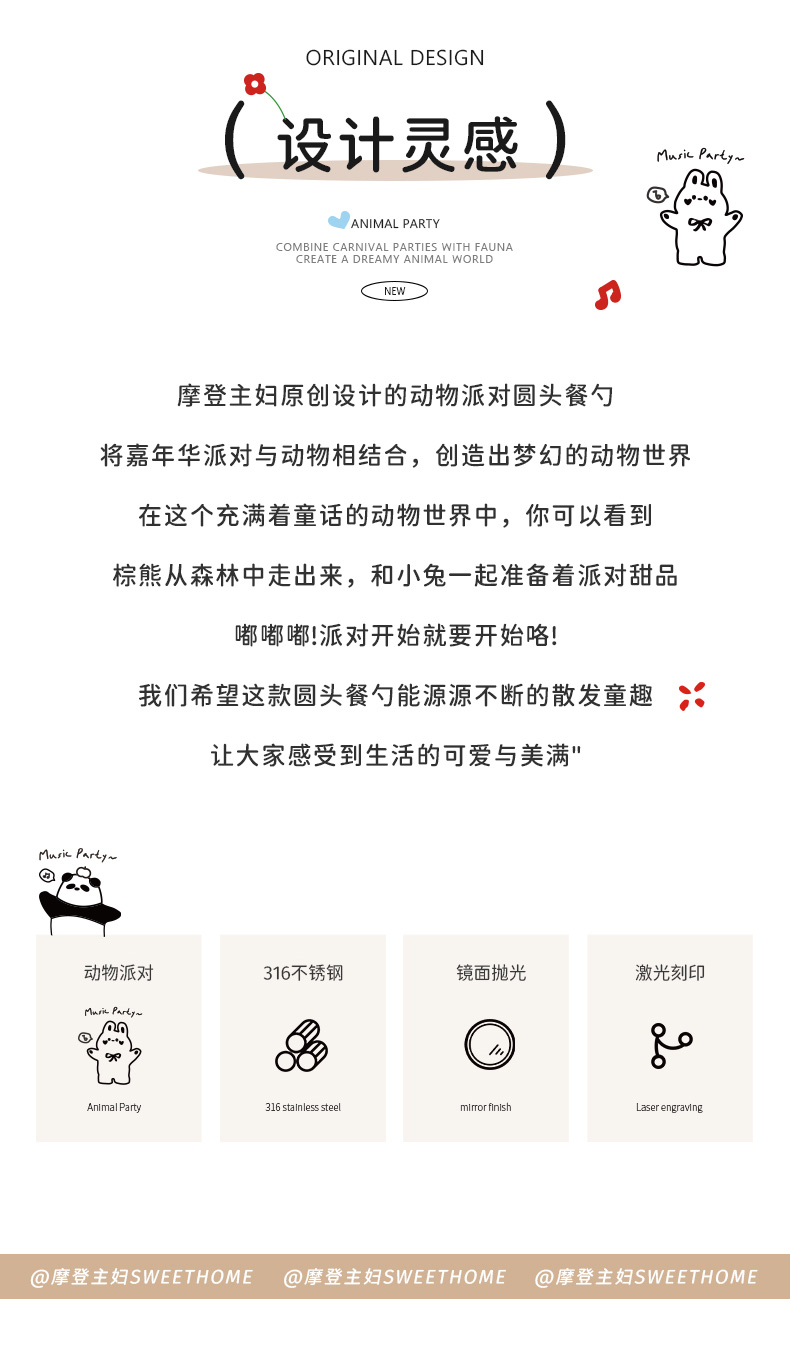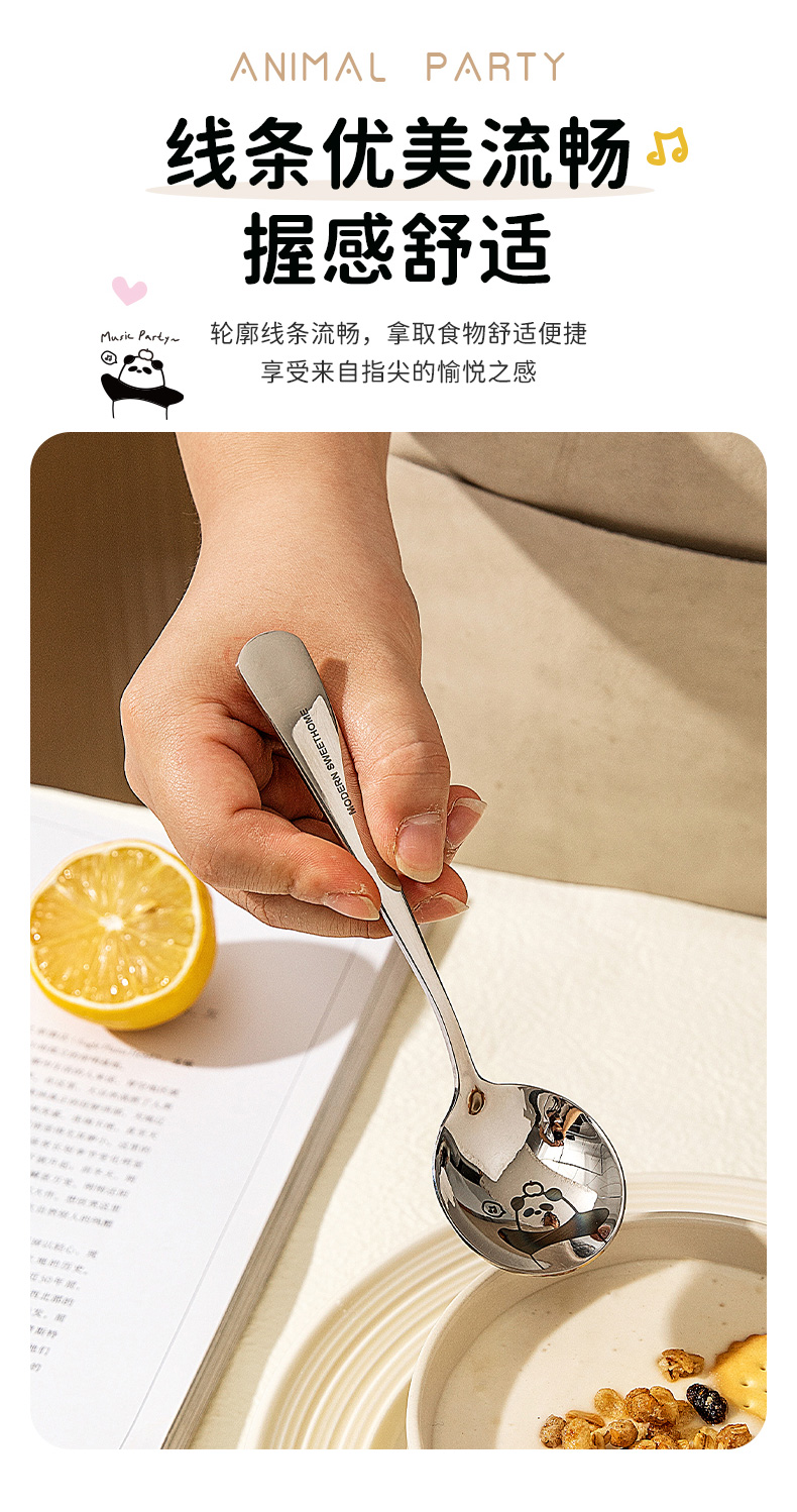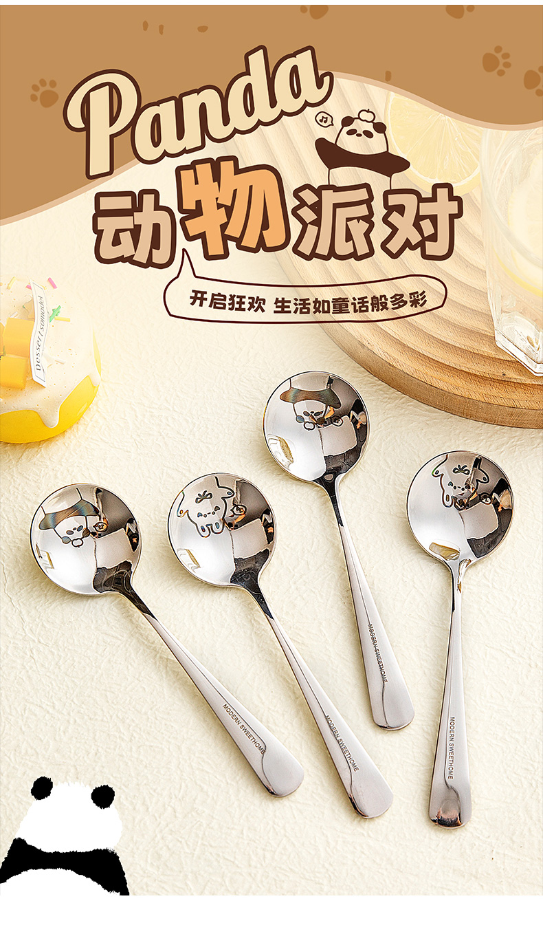 摩登主妇动物派对不锈钢勺子家用食品级个人专用西瓜勺儿童小勺子