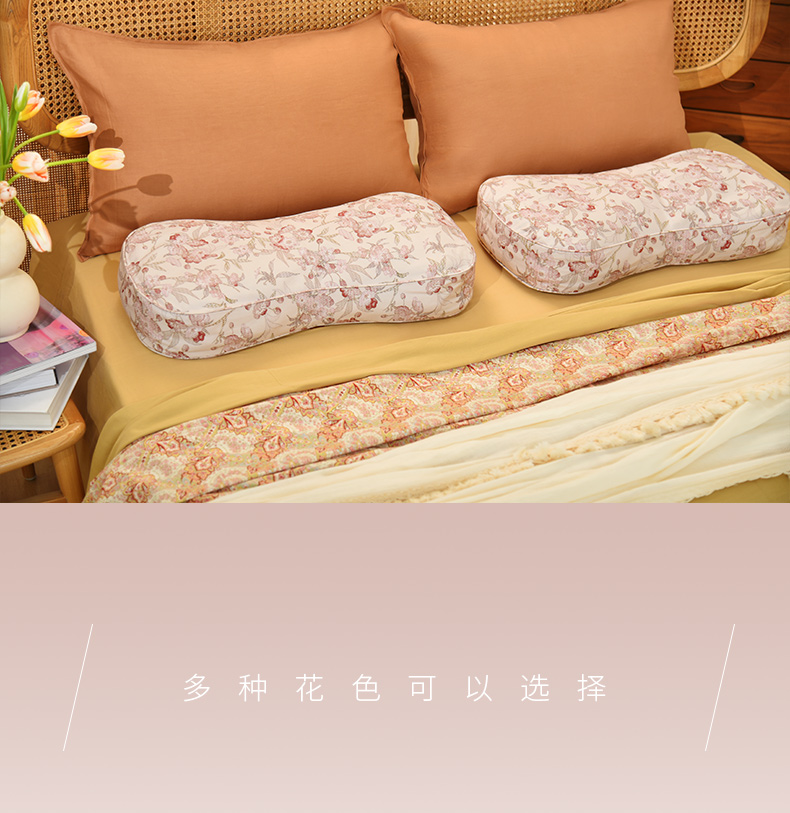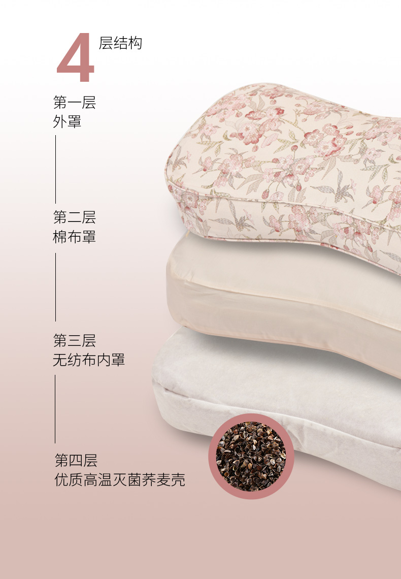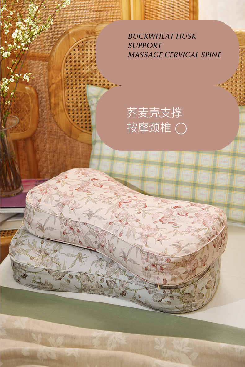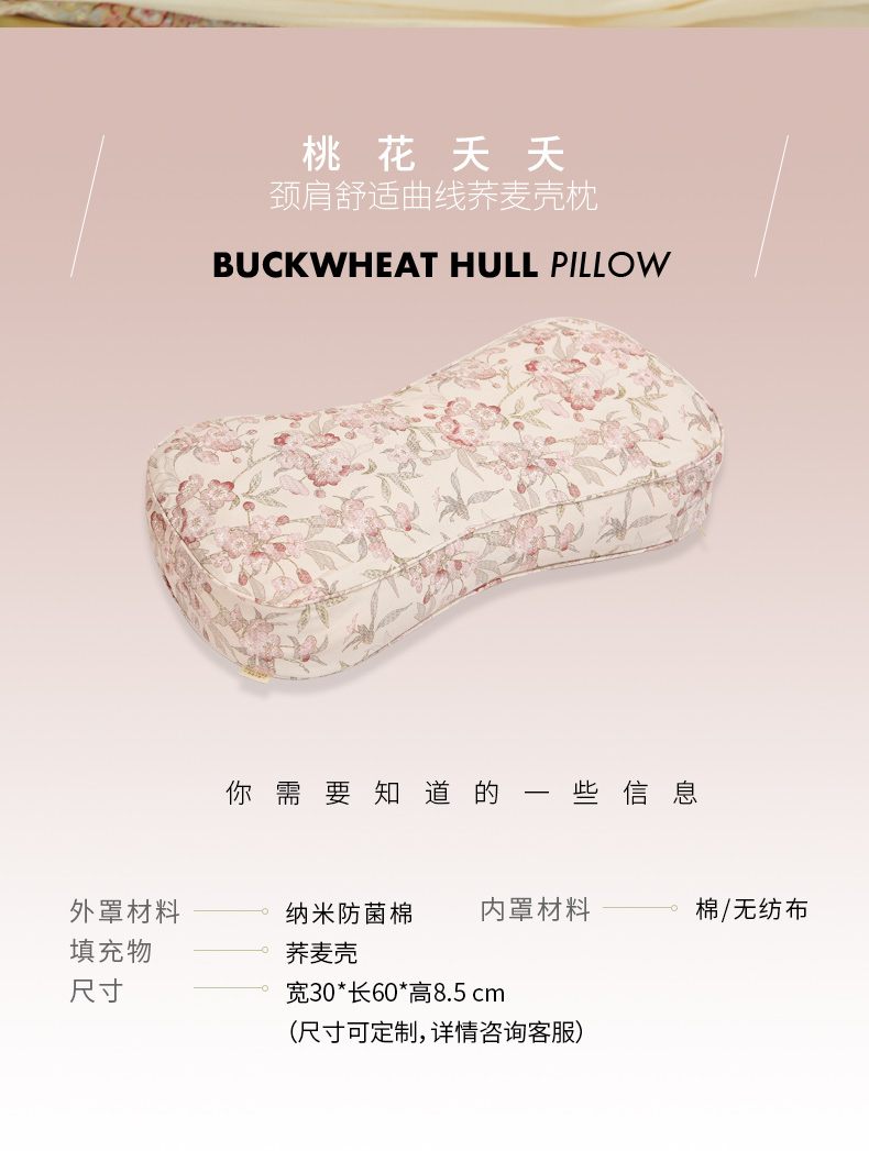 桃花夭夭系列曲线枕荞麦壳枕头护颈椎病荞麦皮睡眠四季