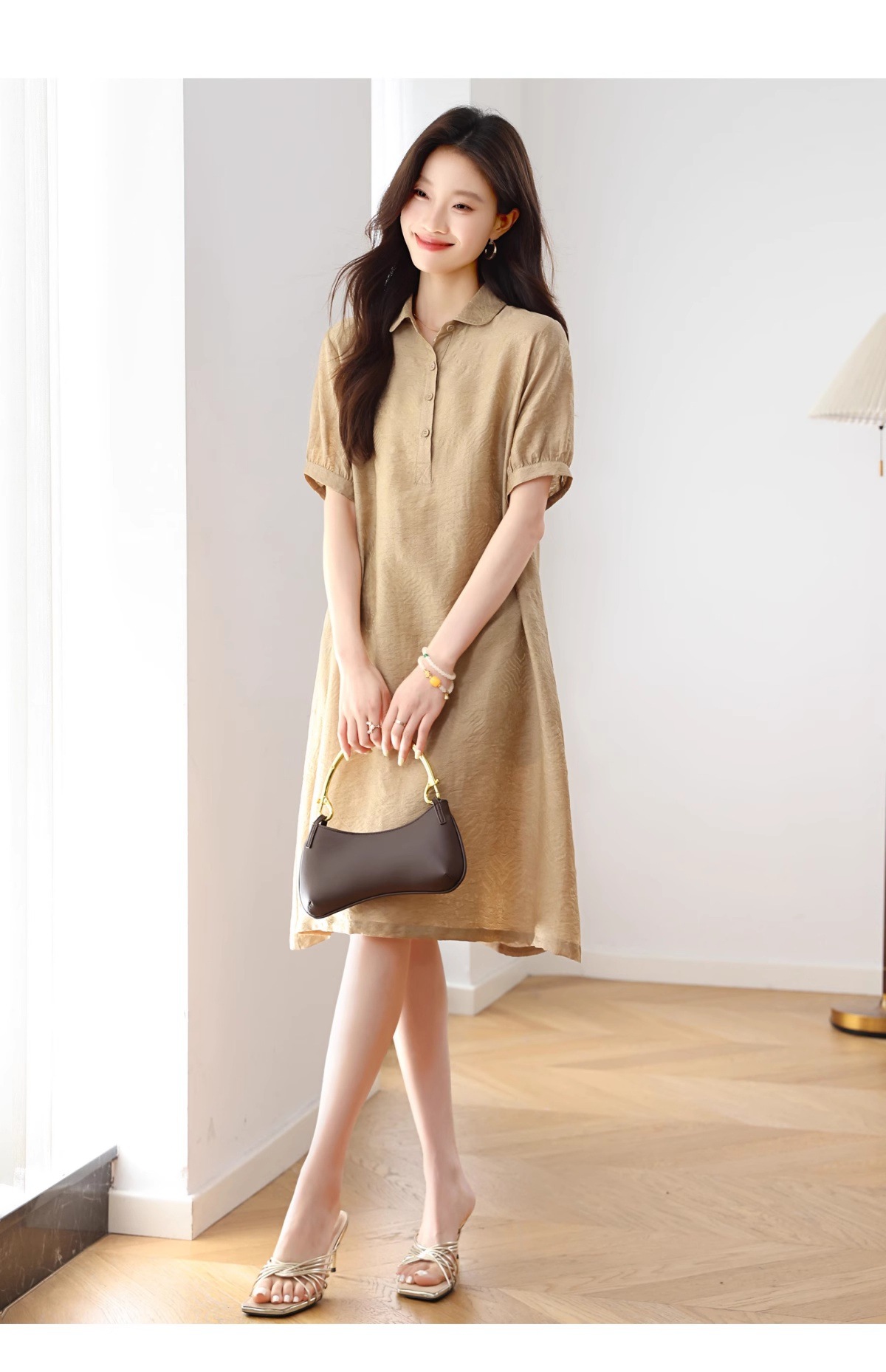 莱赛尔天丝亚麻连衣裙,polo裙宽松直筒漂亮裙子HR-YLDS9925