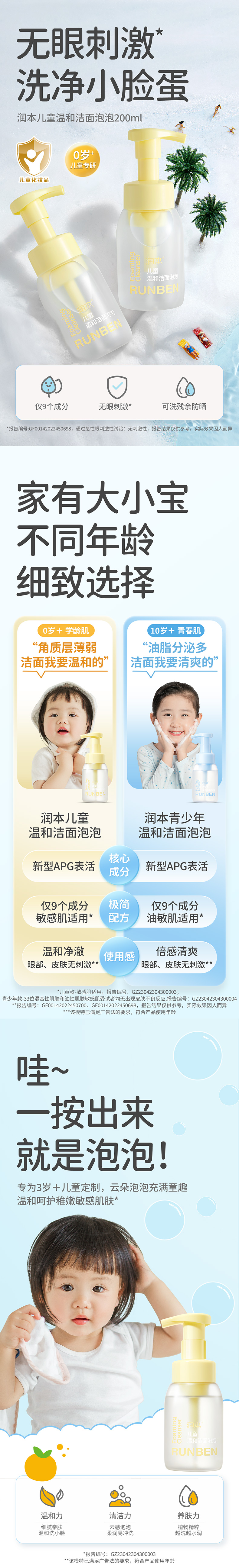 【热卖】润本RUNBEN儿童温和洁面泡泡200ml