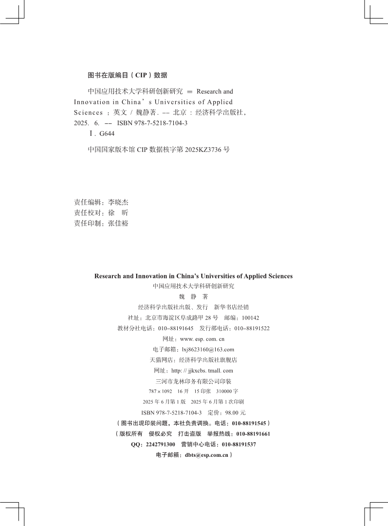 中国应用技术大学科研创新研究(Research and Innovation in China’s Universities of Applied Sciences)