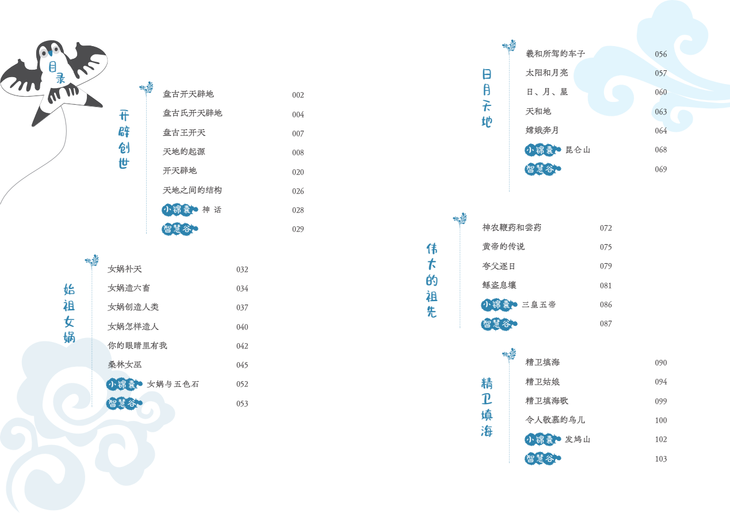 《神话故事》收录了很多人们耳熟能详的神话,包含开天辟地、女娲造人、万物起源、神仙故事、英雄故事等,从古代典籍的文言原典,到袁珂、褚斌杰等专家学者的整理编译,再到吕伯攸、韦伶等现代作家的重新演绎,得见同一神话在前世今生的演变。然而无论怎样变化,追求美好生活,探索更广阔的世界,这些积极向上的神话精神是不变的。