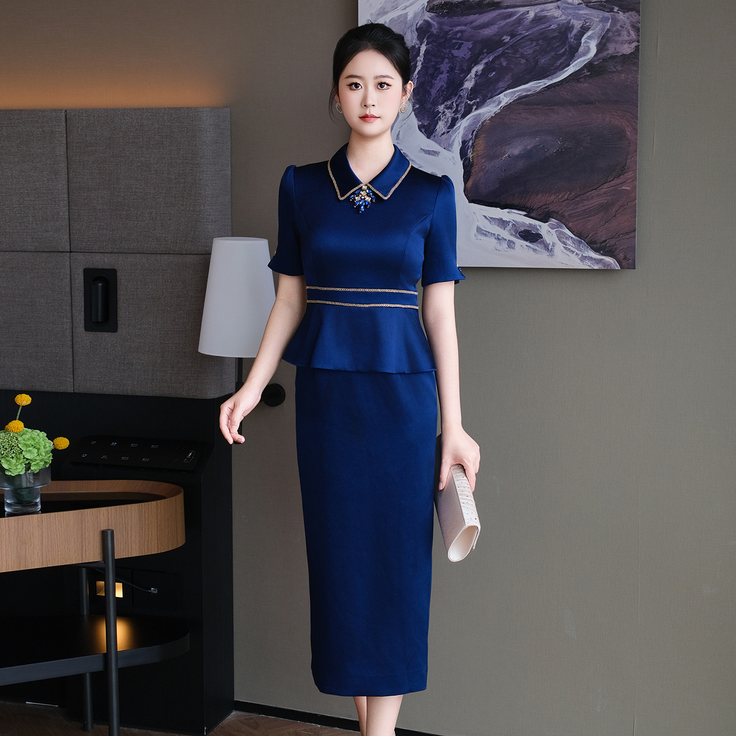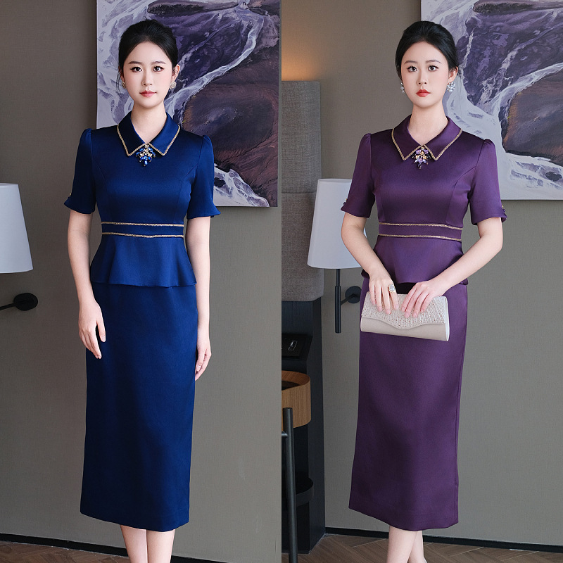 DNO-5CF24311新款2025春夏季都市风气质优雅女装钉钻法国缎连衣裙