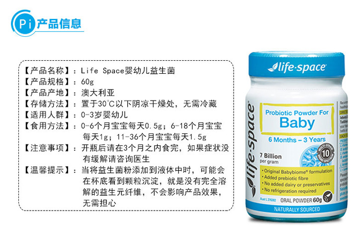 澳洲Life Space婴幼儿儿童益生菌粉6月-3岁