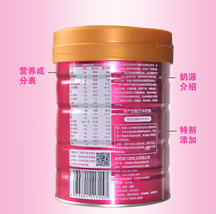 美力源孕妇奶粉成人羊奶粉孕产妇营养国产陕西羊奶粉375克罐装