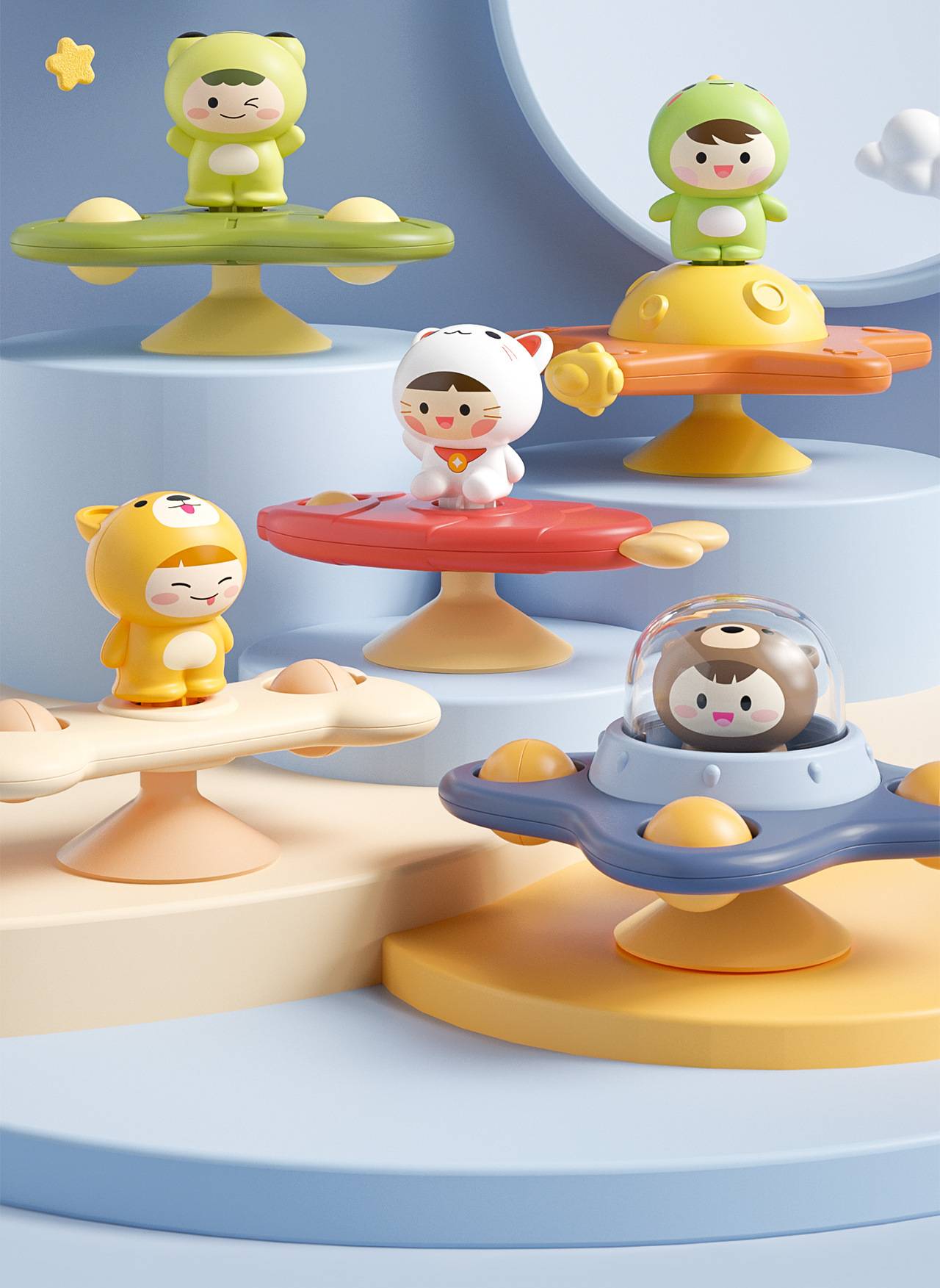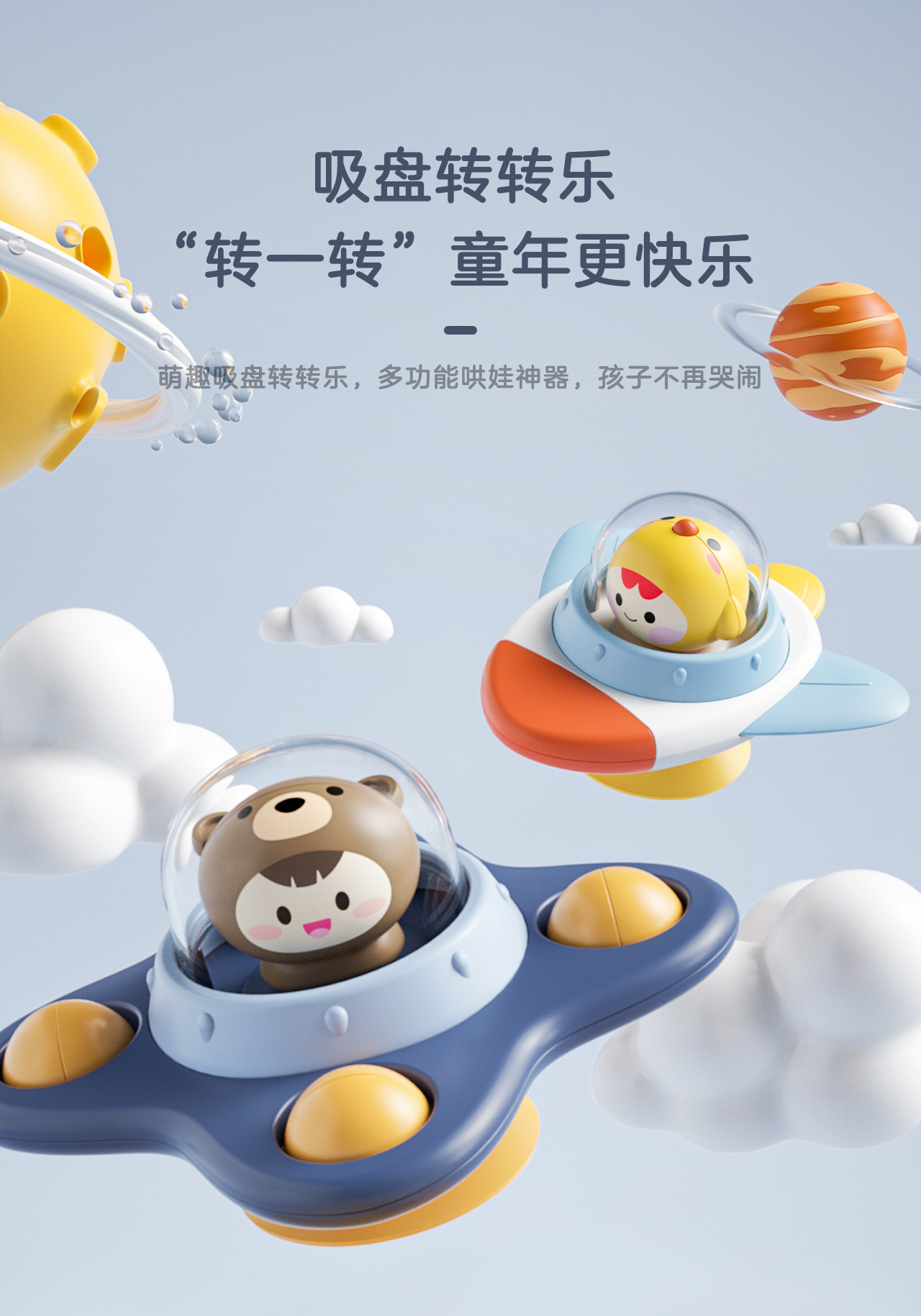 【趣味吸盘转转乐】儿童会转动的昆虫,花朵吸盘转转乐,陀螺卡通吸盘转转乐,旋转婴儿玩具-QQ