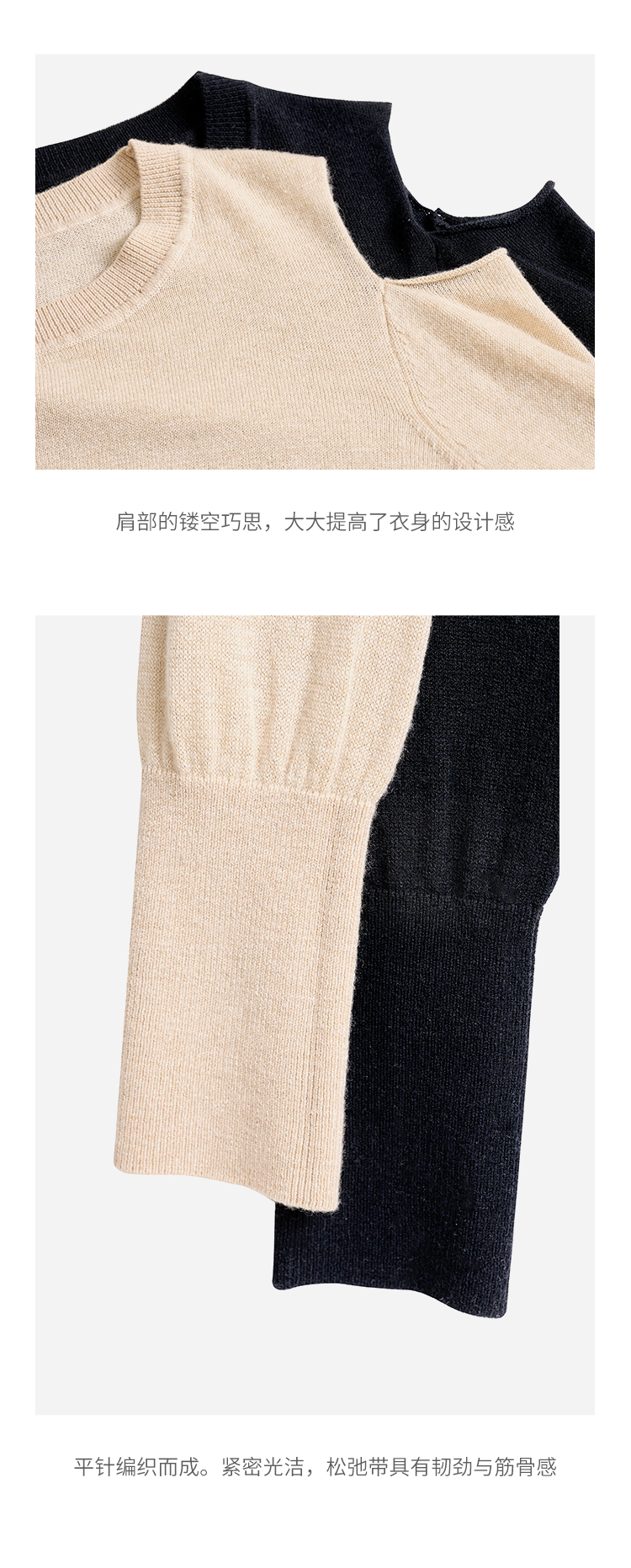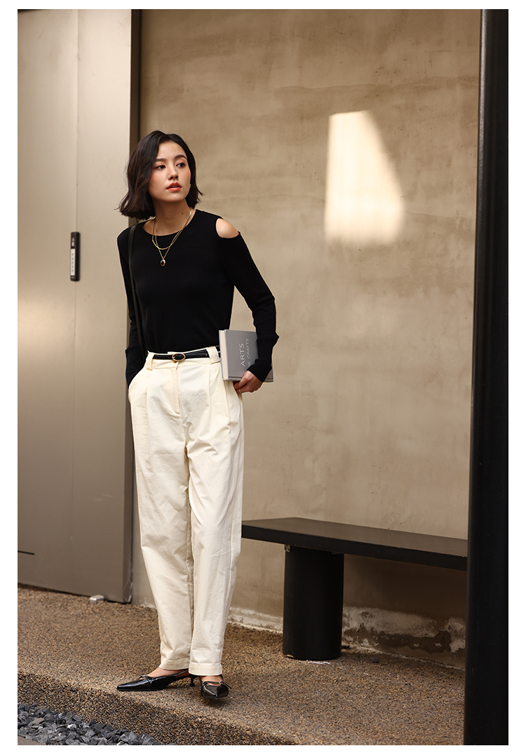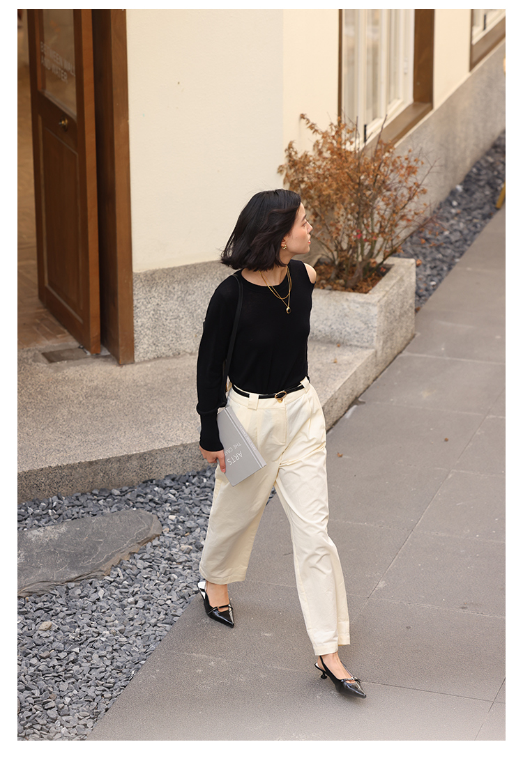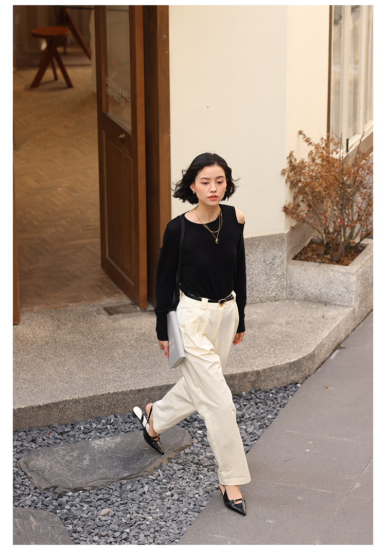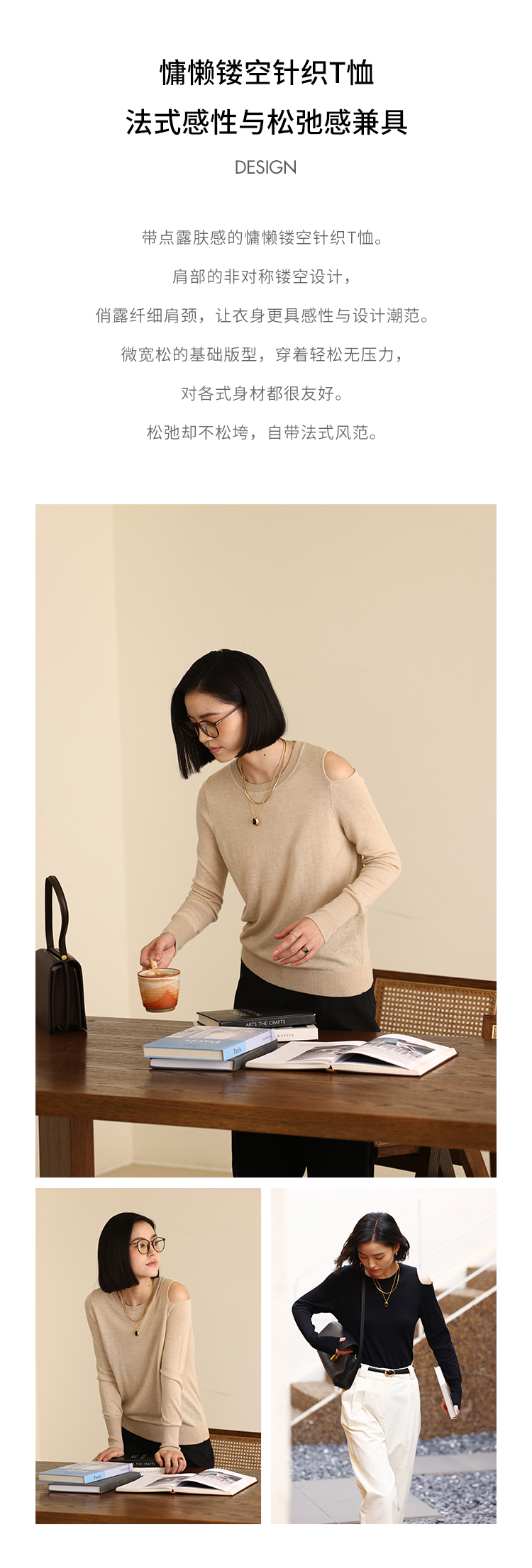 HeyDress法式针织衫女春季圆领露肩设计感宽松T恤小众打底衫上衣