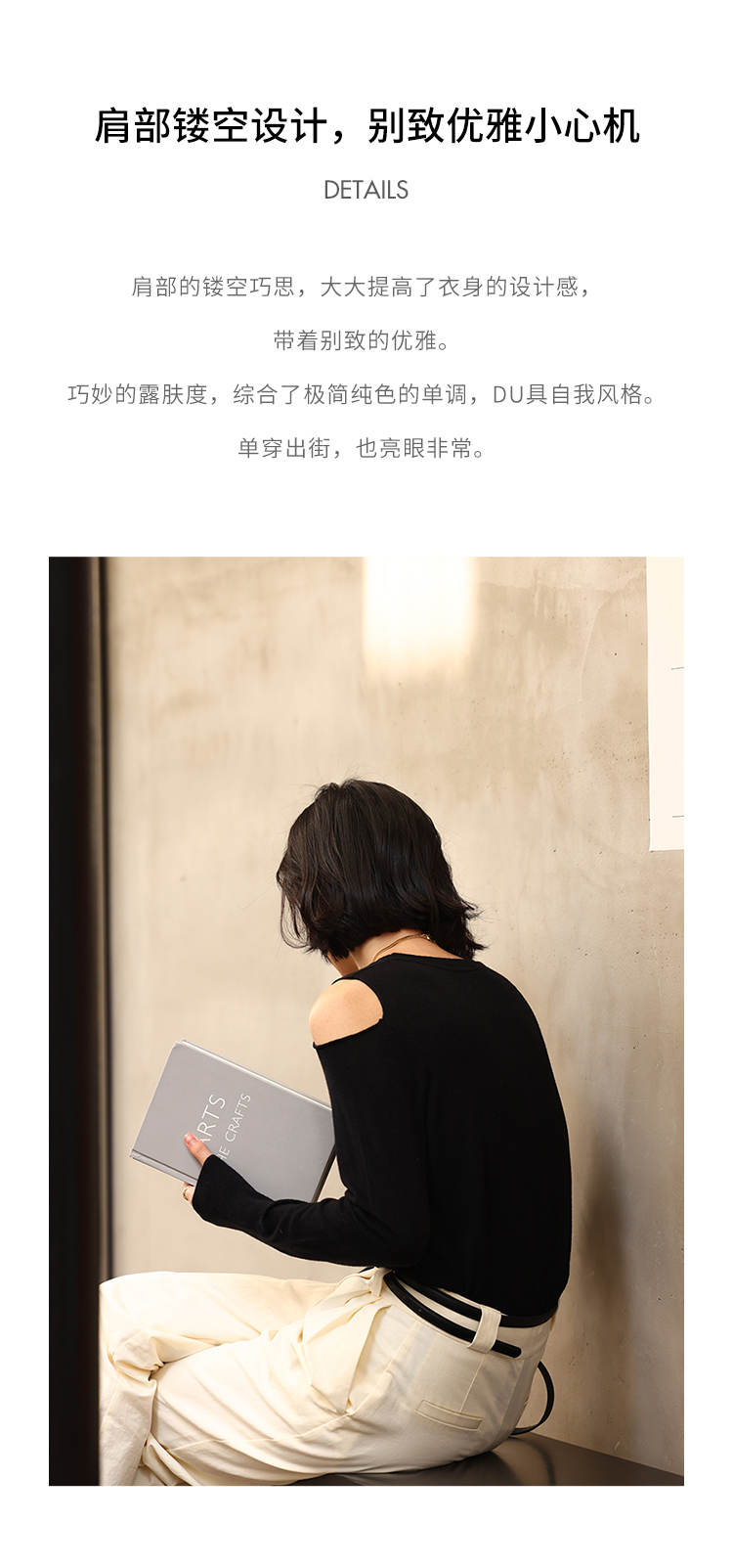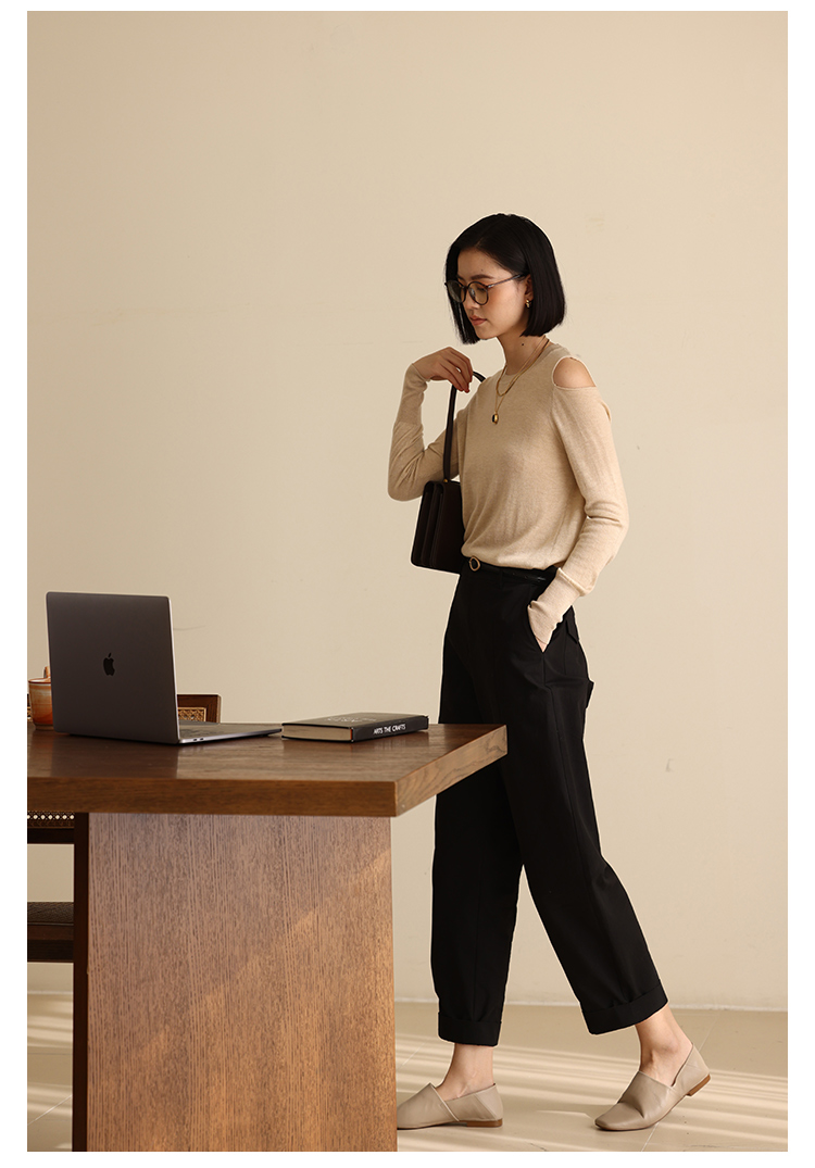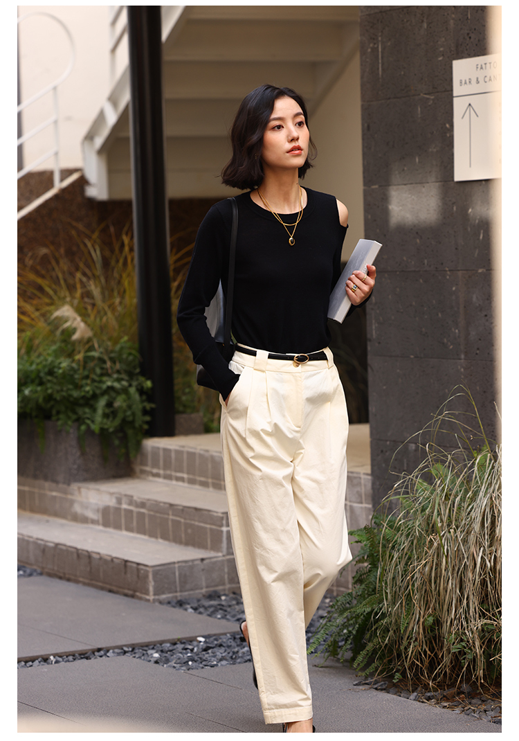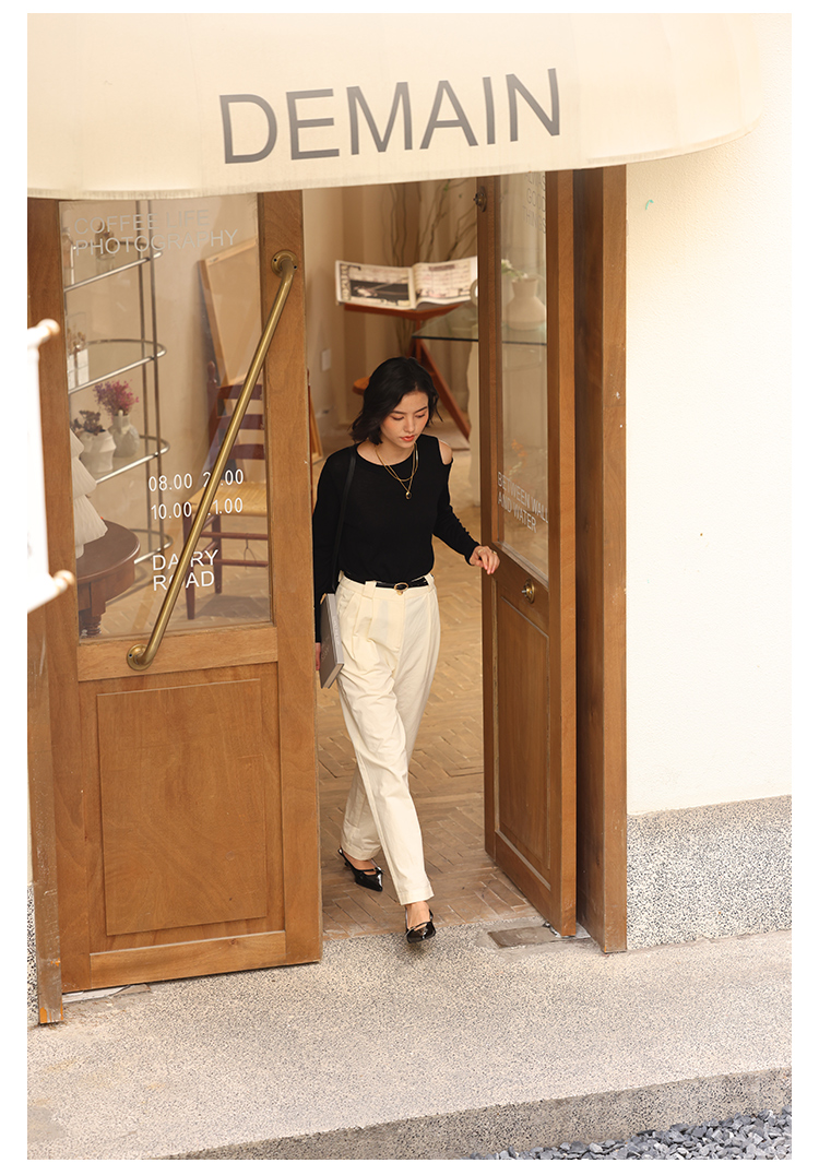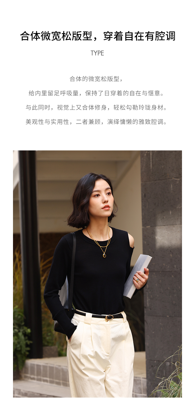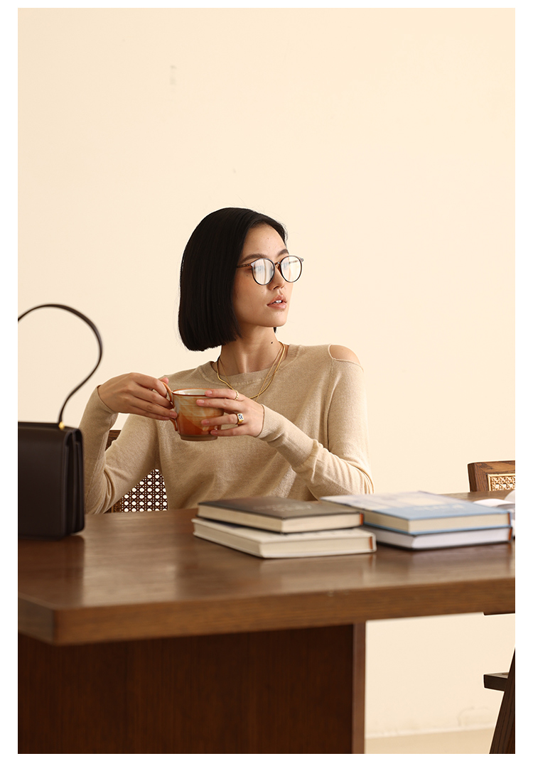 HeyDress法式针织衫女春季圆领露肩设计感宽松T恤小众打底衫上衣