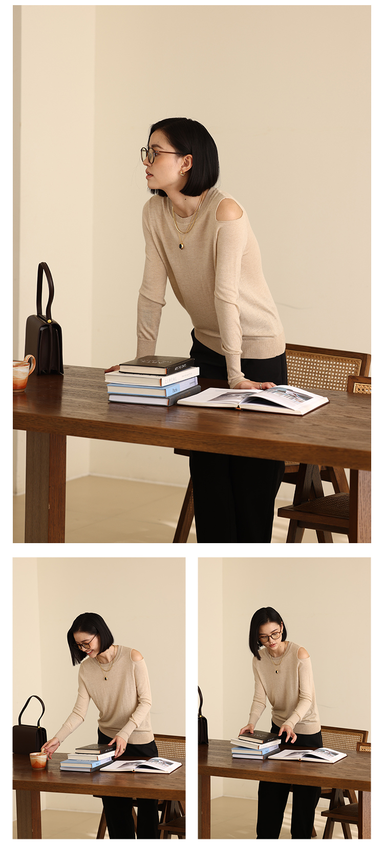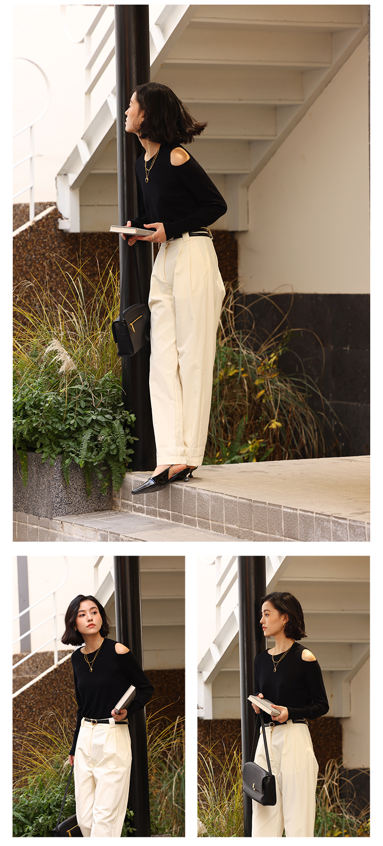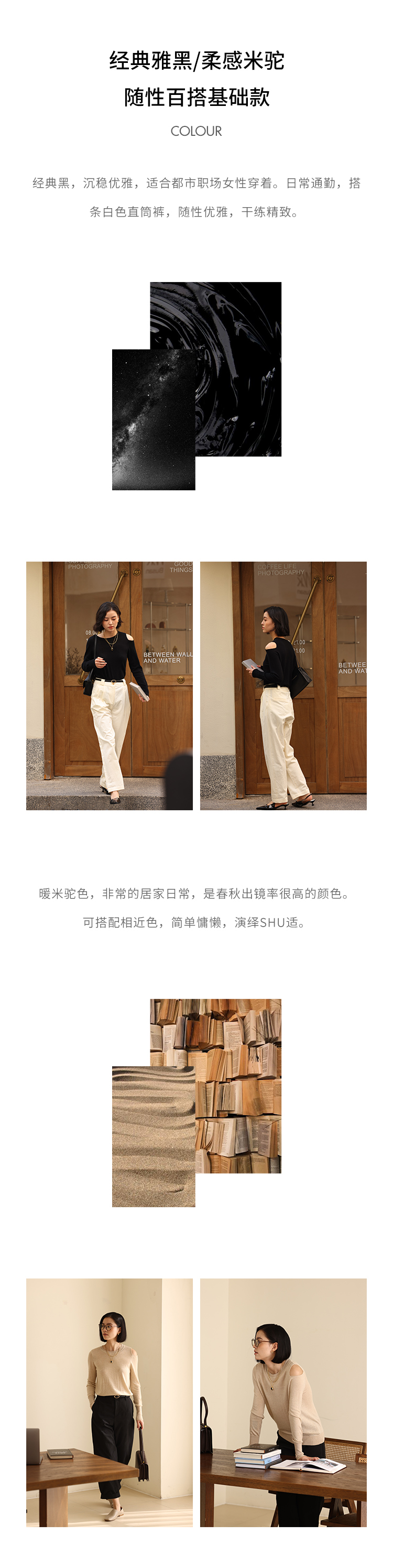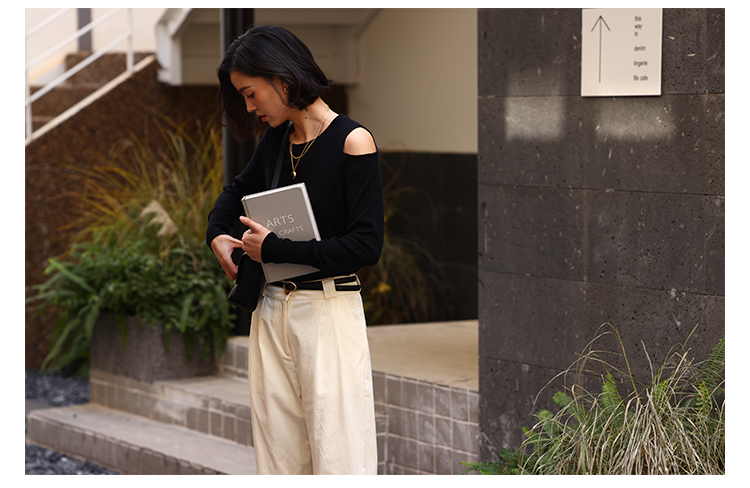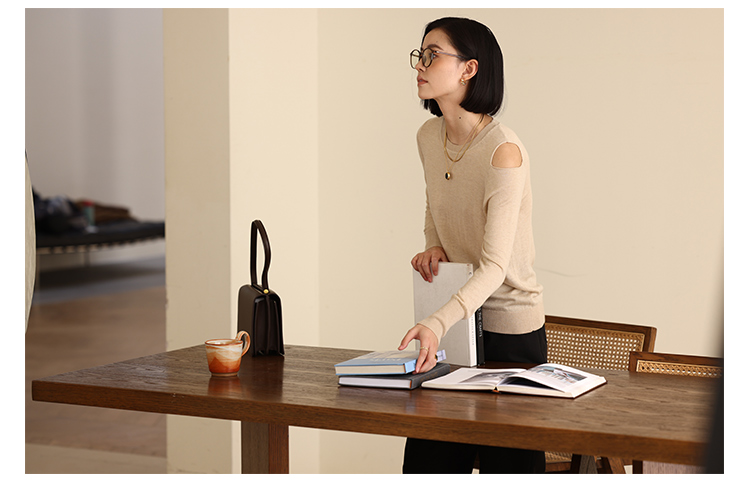 HeyDress法式针织衫女春季圆领露肩设计感宽松T恤小众打底衫上衣