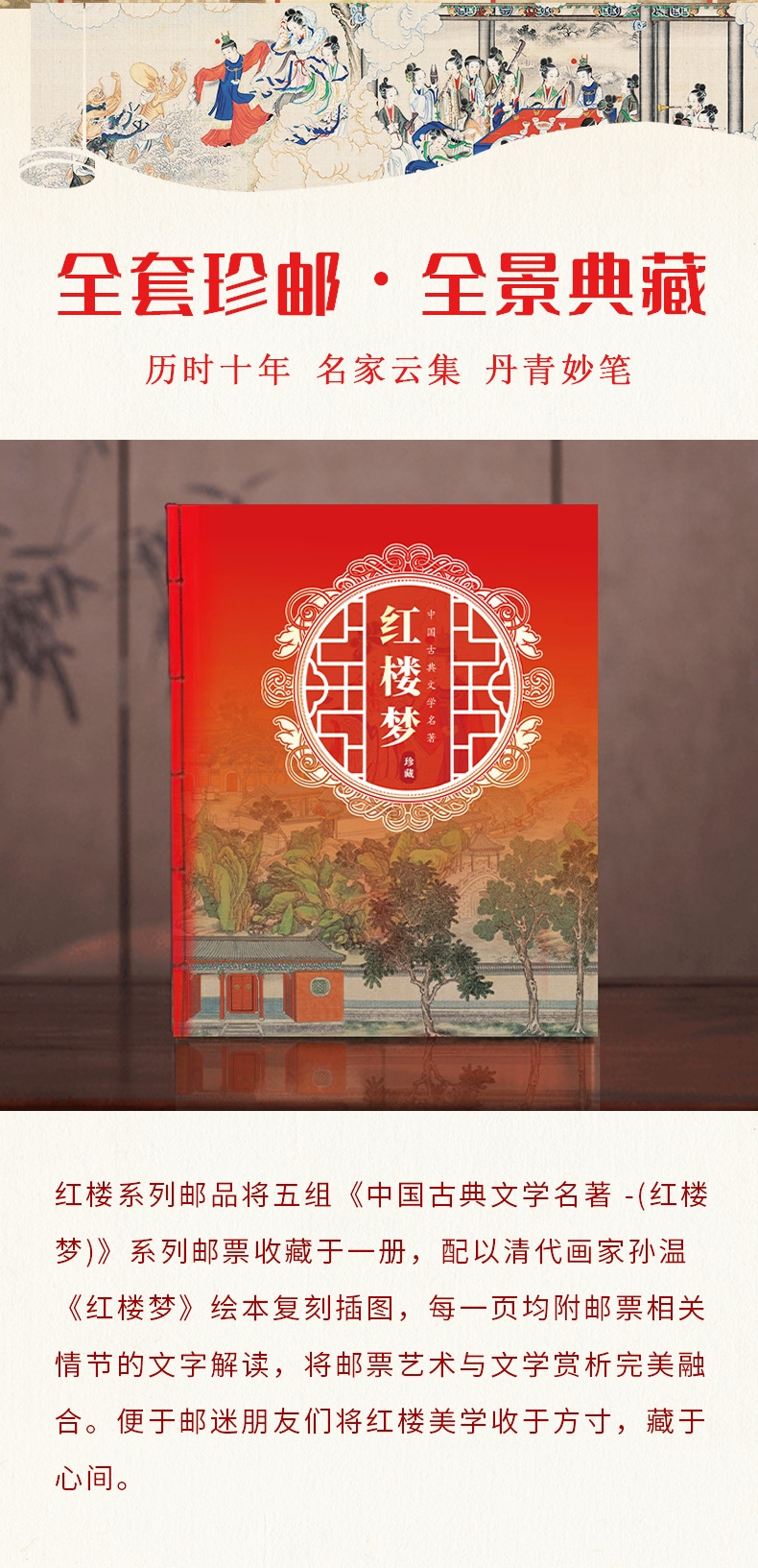 线装版红楼梦 珍邮 (超值赠品:帆布袋/卡片明信片),涵盖(一)~(五)组所有邮票,历时8年,5组25枚,应收尽收,全系收录