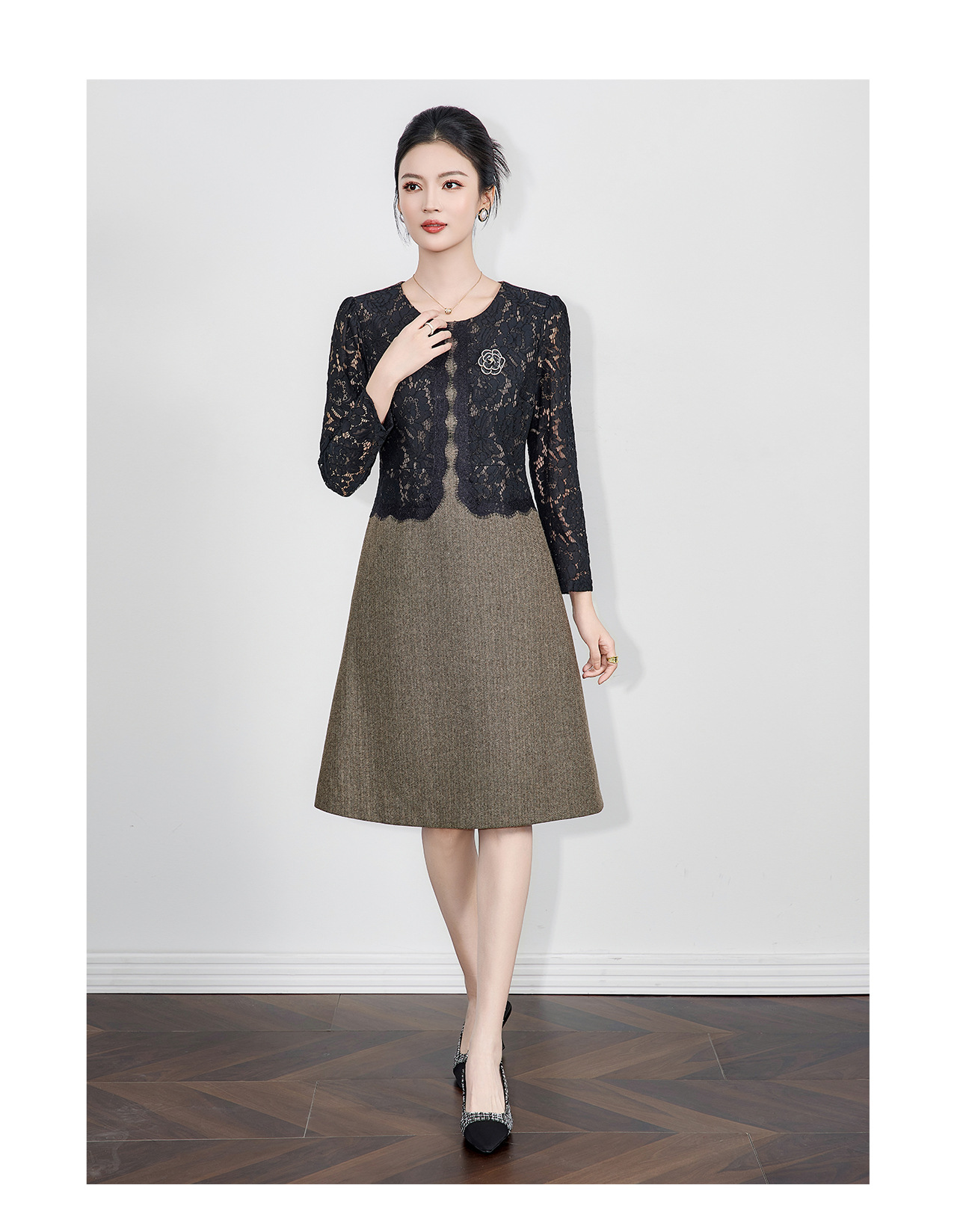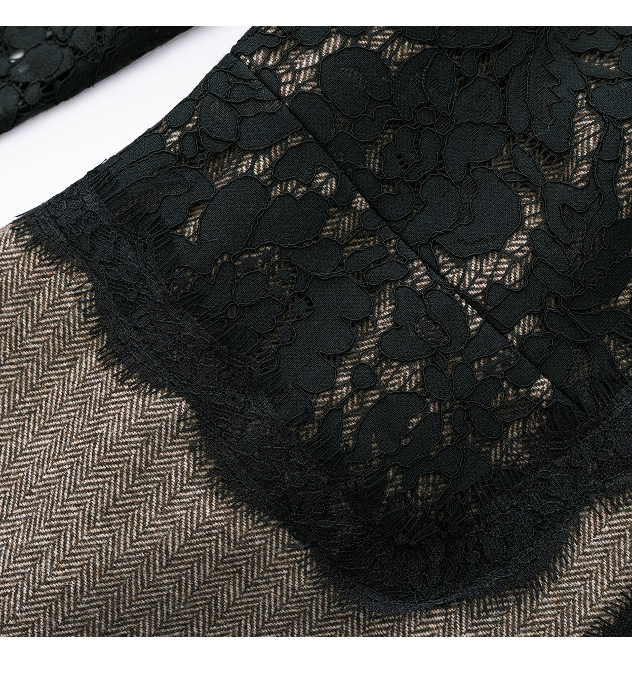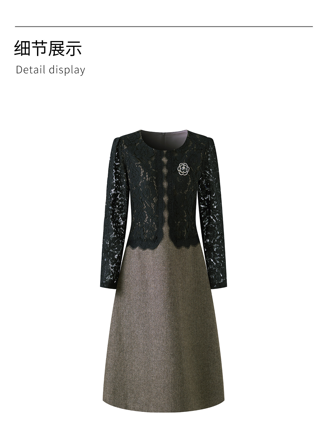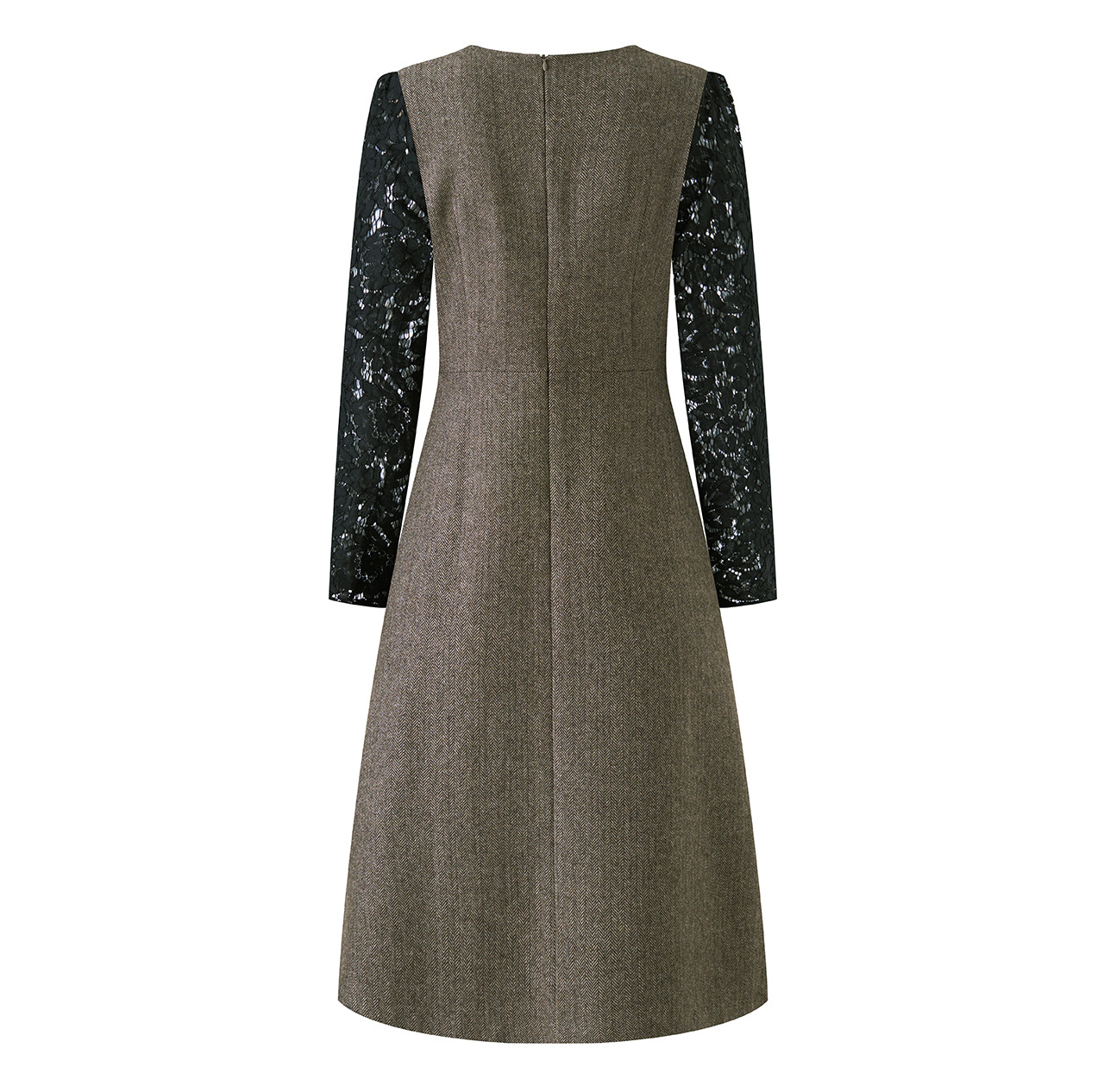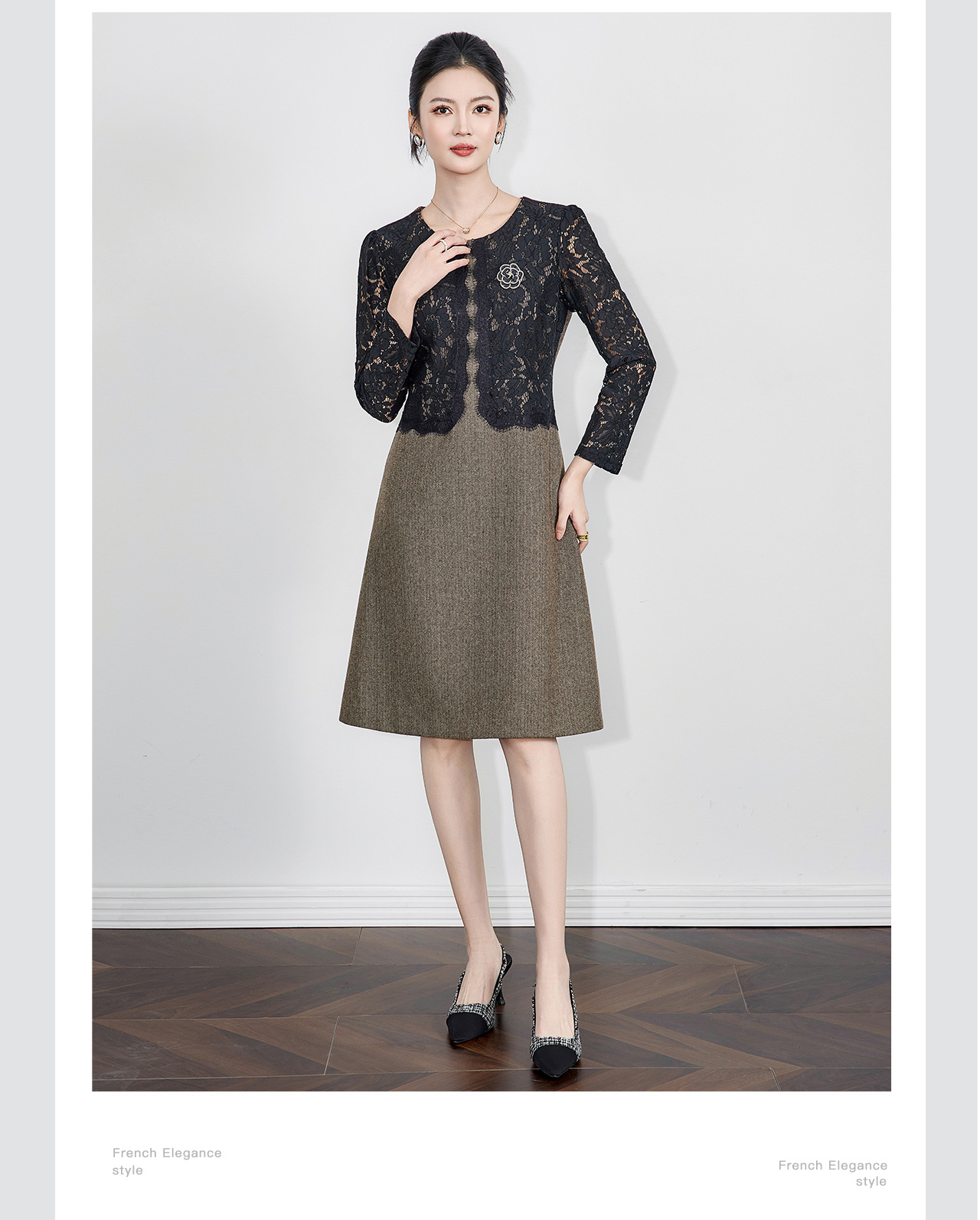 「高货wl」全新升级【铂金会员312/天猫419/差价107】(00718)洛诗琳2025秋冬气质轻奢小香风蕾丝拼接人字纹毛呢连衣裙