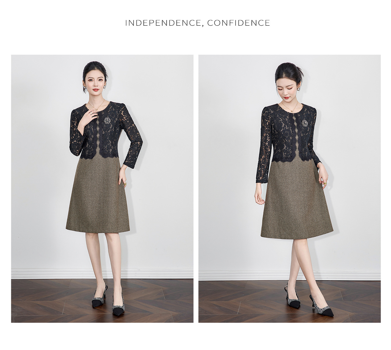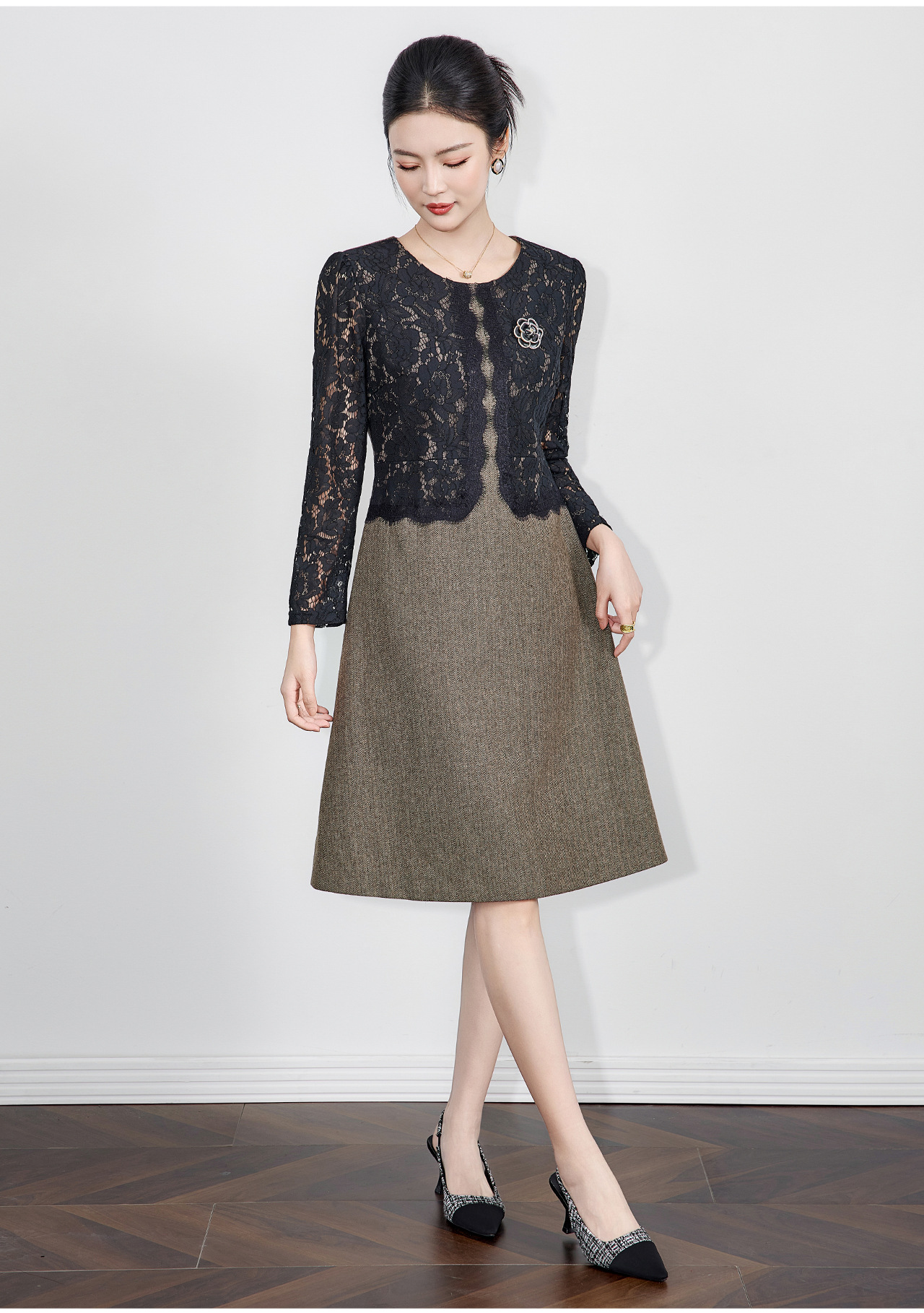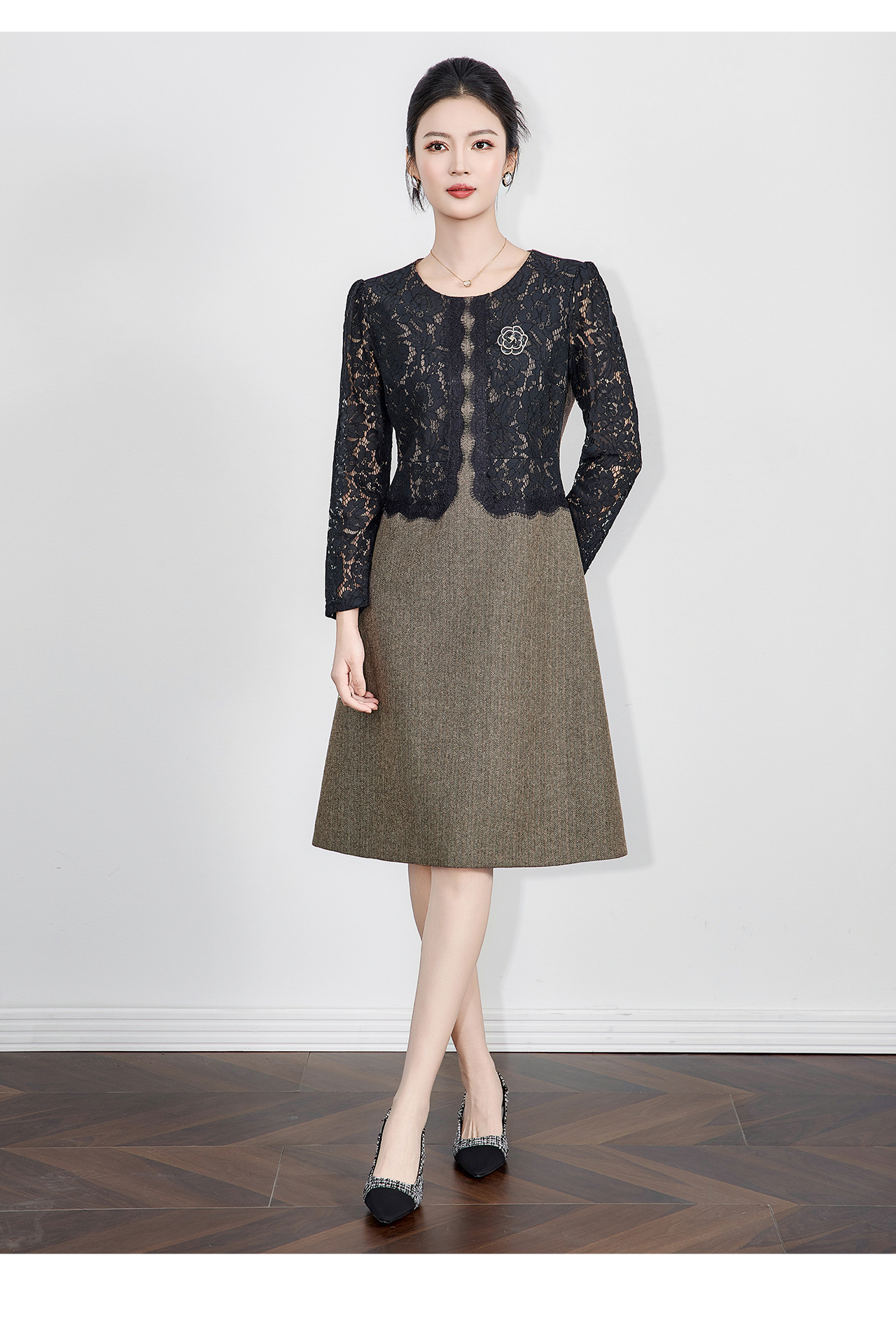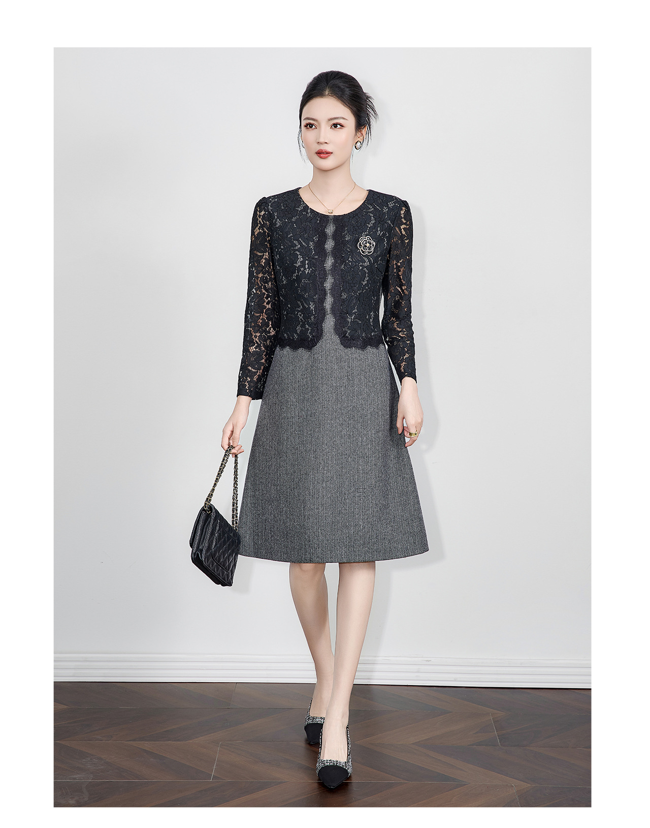 「高货wl」全新升级【铂金会员312/天猫419/差价107】(00718)洛诗琳2025秋冬气质轻奢小香风蕾丝拼接人字纹毛呢连衣裙
