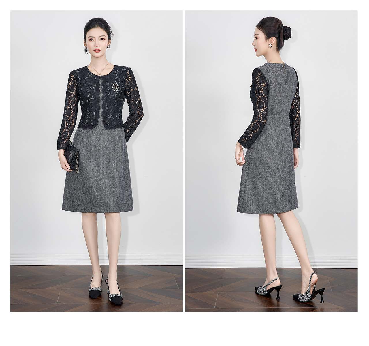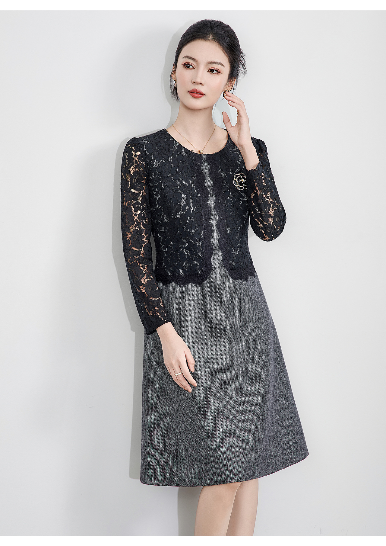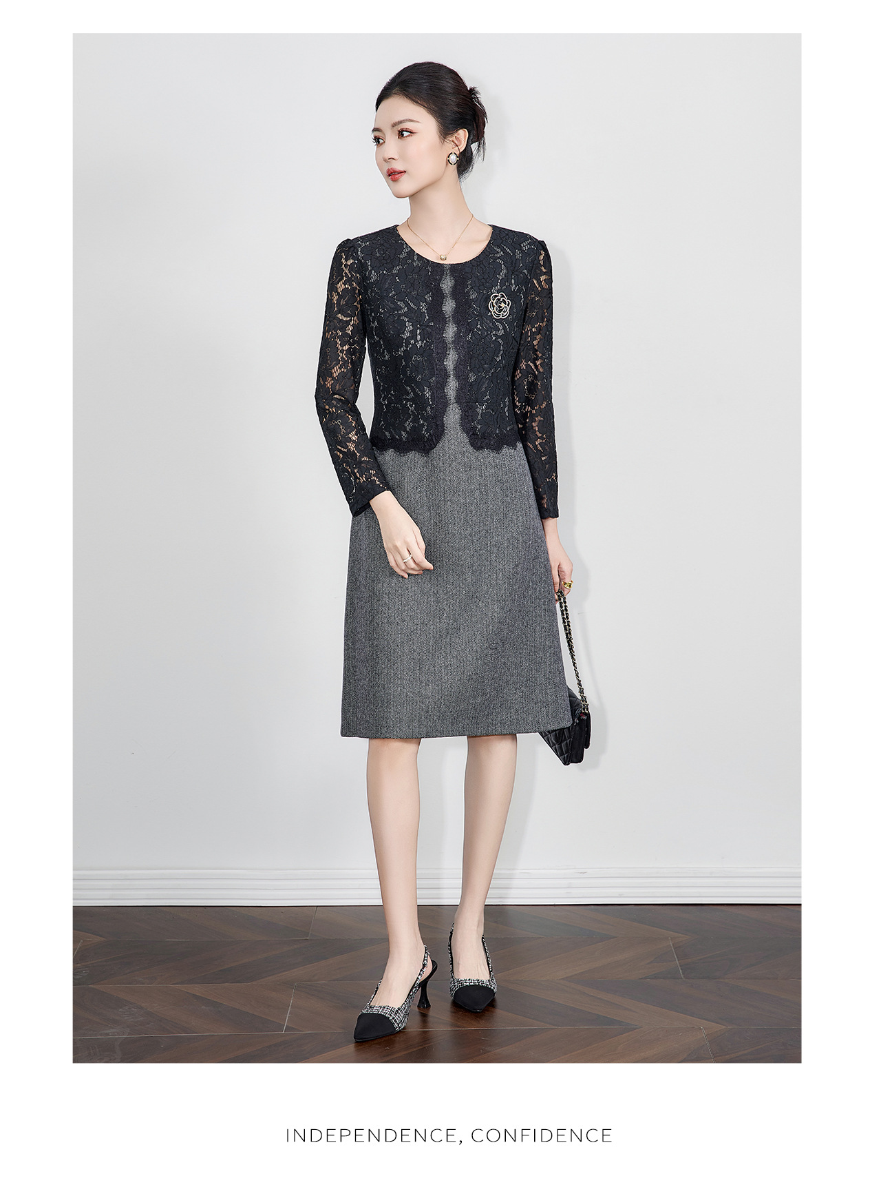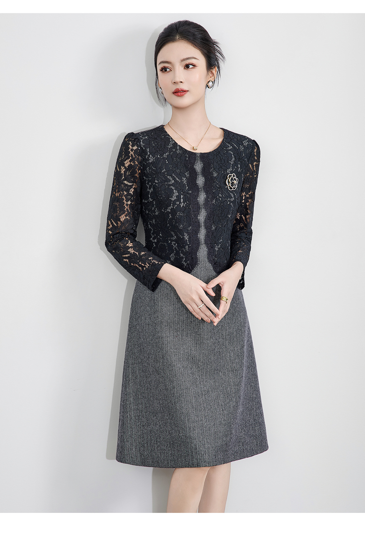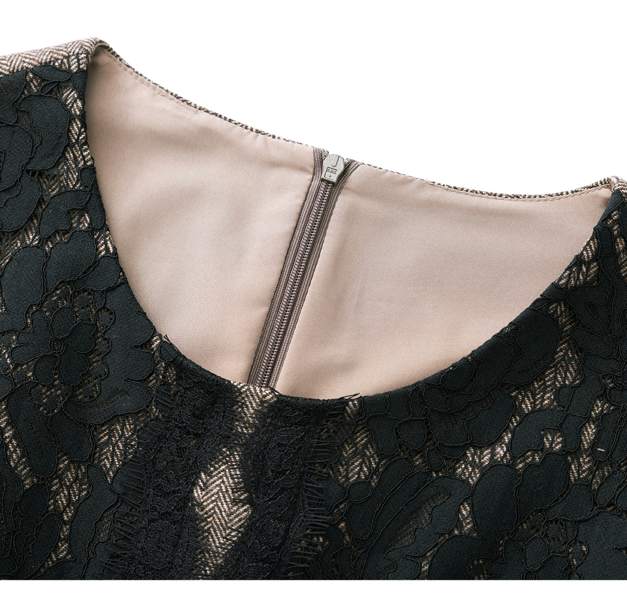 「高货wl」全新升级【铂金会员312/天猫419/差价107】(00718)洛诗琳2025秋冬气质轻奢小香风蕾丝拼接人字纹毛呢连衣裙