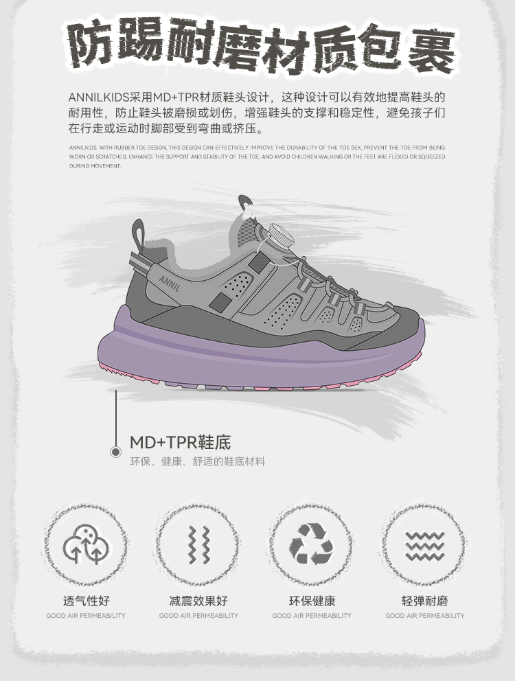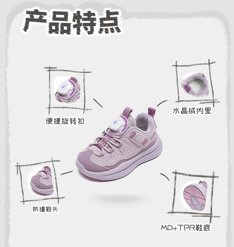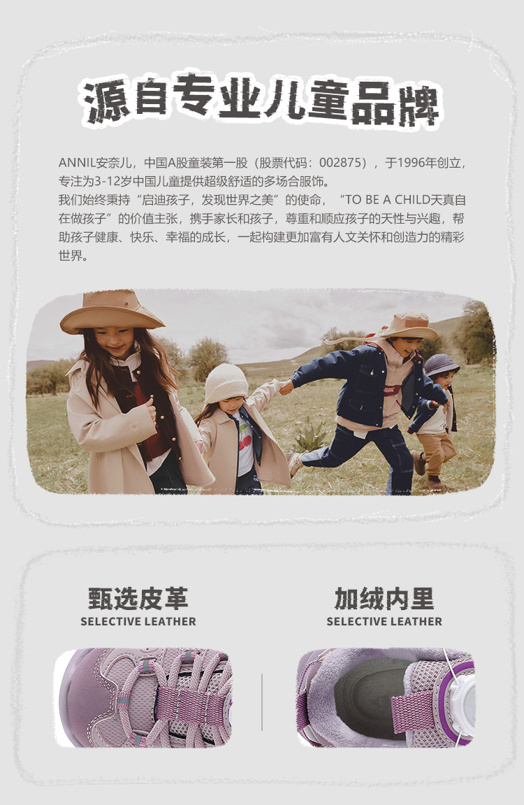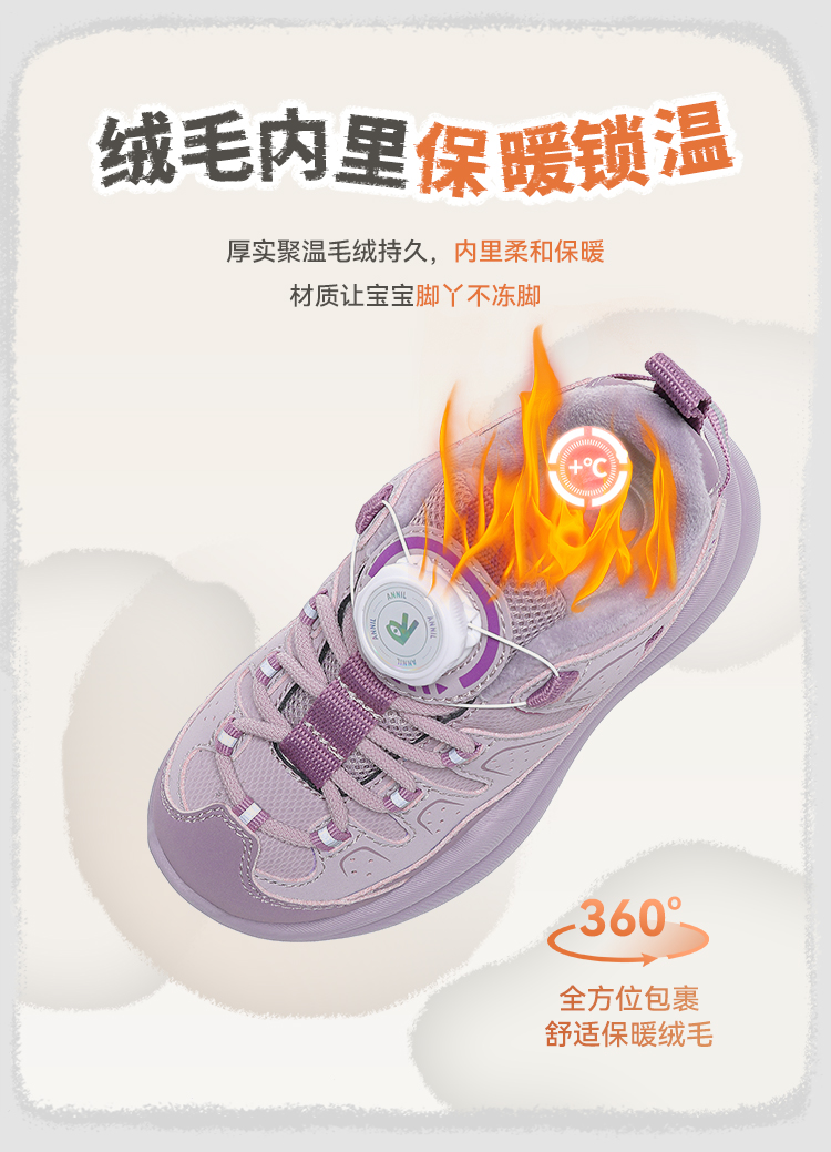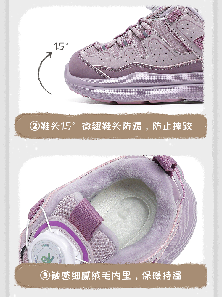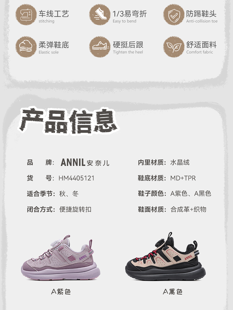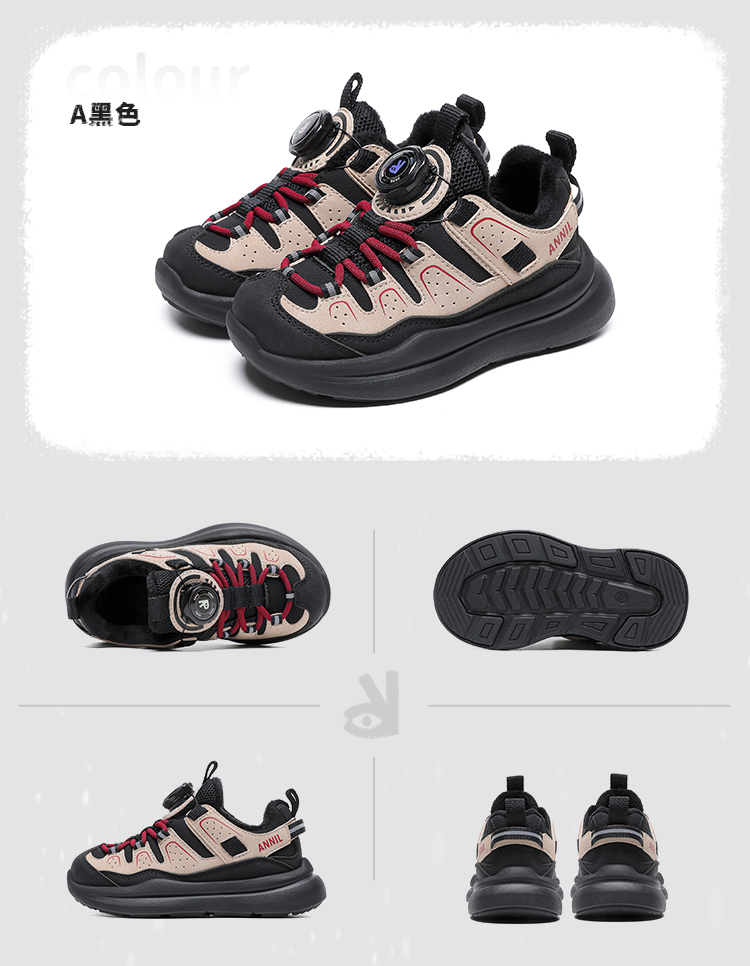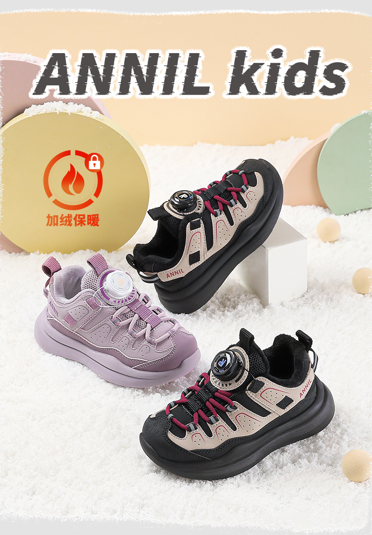 【加绒】ANNIL/安奈儿女童二棉鞋冬季新款加绒皮面防水儿童纽扣运动鞋秋冬HM4405121